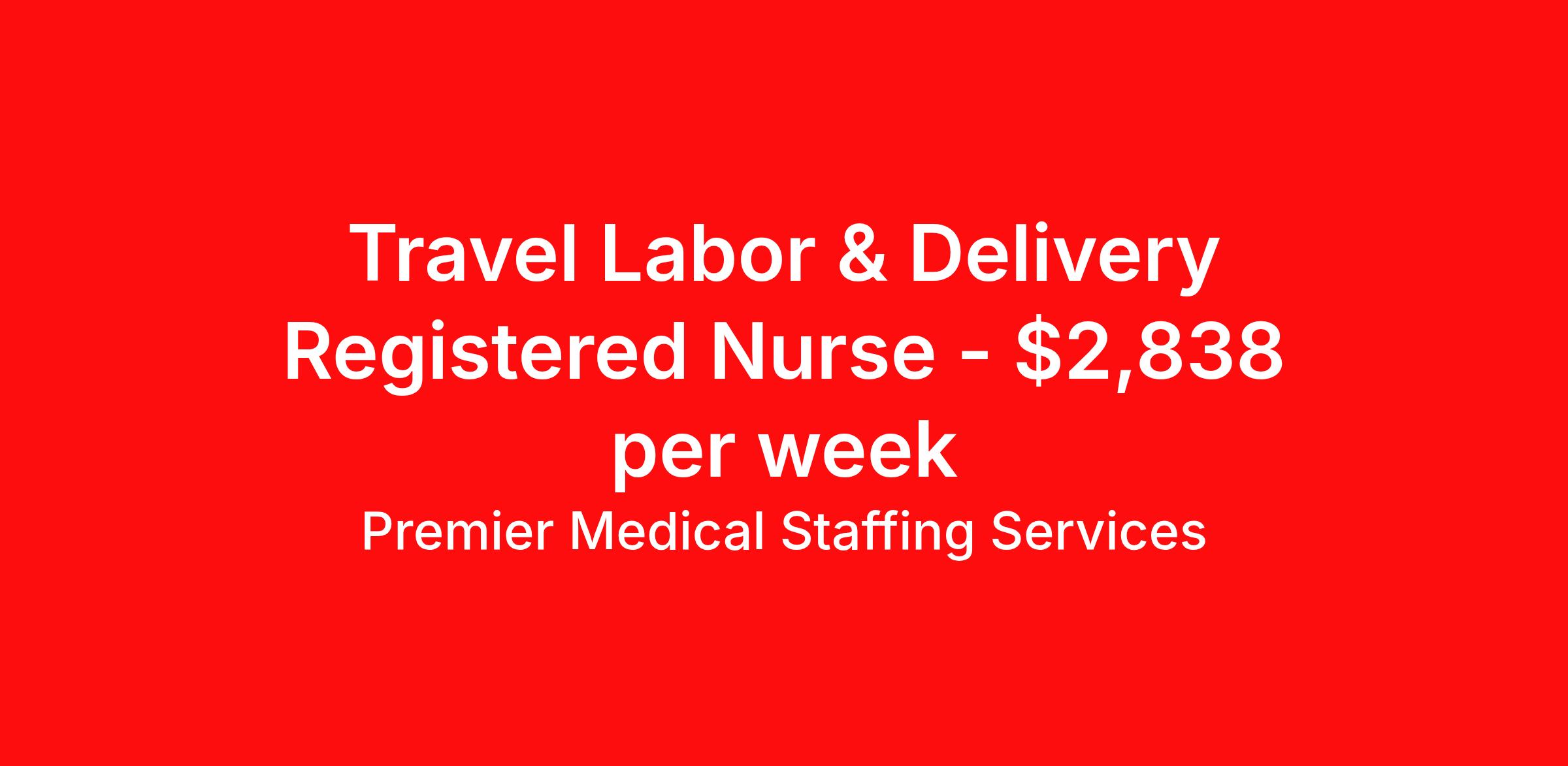Premier Medical Staffing Services is seeking a travel nurse RN Labor and Delivery for a travel nursing job in Plymouth, Massachusetts. Job Description & Requirements Specialty: Labor and Delivery Discipline: RN Start Date: 06/01/2026 Duration: 12 weeks 36 hours per week Shift: 12 hours Employment Type: Travel Premier Medical Staffing Job ID 626226. Pay package is based on 12 hour shifts and 36 hours per week (subject to confirmation) with tax-free stipend amount to be determined. Posted job title: RN L&D About Premier Medical Staffing Services Premier Medical Staffing Services, LLC is a nationally expanding healthcare staffing firm for healthcare professionals and companies. We understand our clients’ need for highly qualified, expertly trained medical professionals and are passionate about helping clinicians find employment opportunities that fit their personality and needs. Able to accommodate the ever-changing needs of the healthcare landscape, we offer per-diem, contract and direct hire placements to support the unique needs of each industry sector. Premier Medical Staffing Services is Joint Commission Certified, a Military Spouse Employment Partner and is certified as a Women’s Business Enterprise. We are proudly nurse owned.