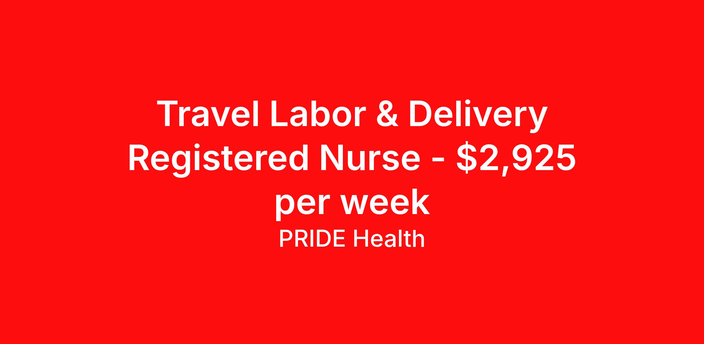 Travel Labor & Delivery Registered Nurse - $2,925 per week