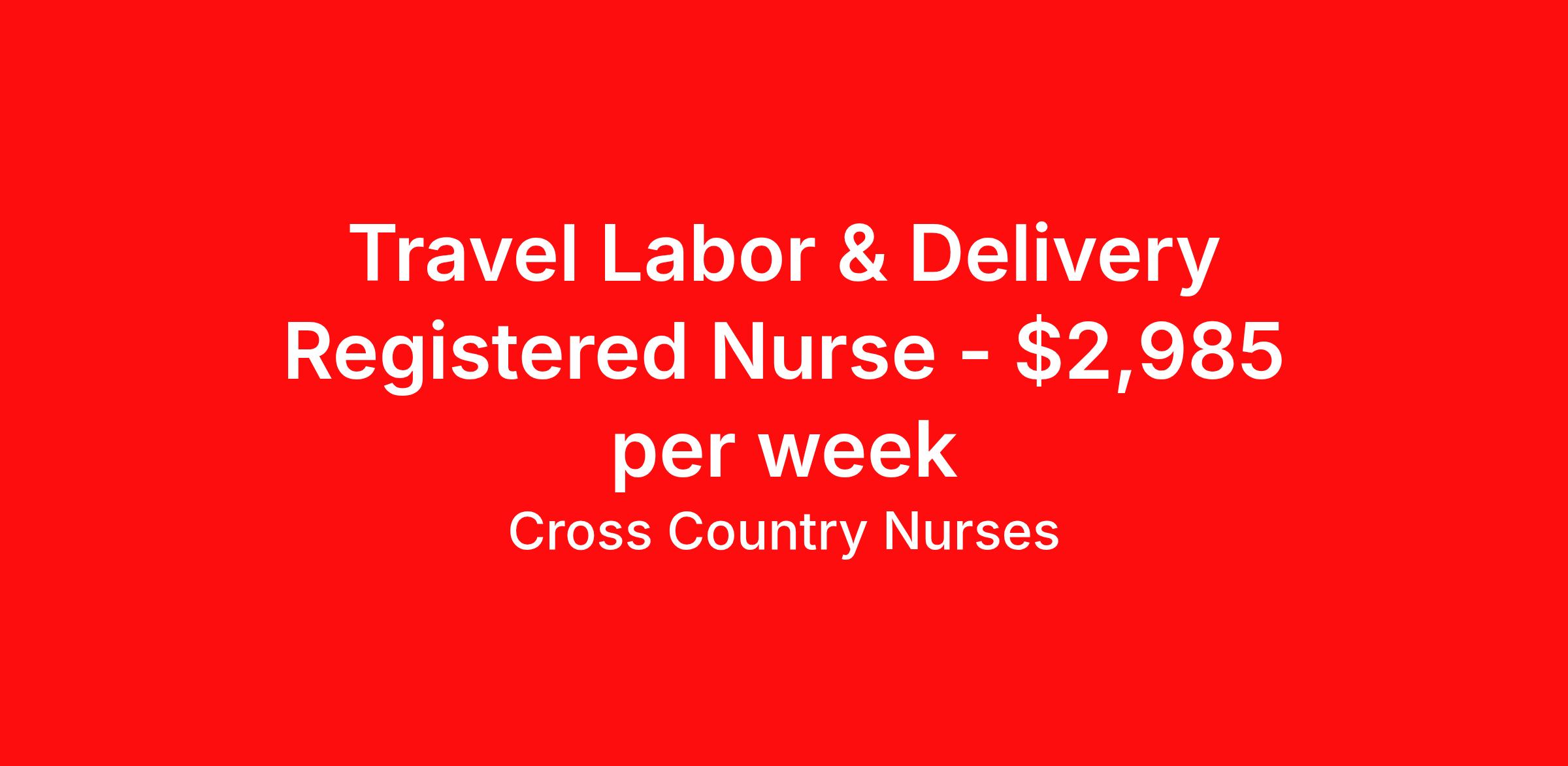 Cross Country Nurses is seeking a travel nurse RN Labor and Delivery for a travel nursing job in Lebanon, New Hampshire. Job Description & Requirements Specialty: Labor and Delivery Discipline: RN Start Date: 04/13/2026 Duration: 13 weeks 36 hours per week Shift: 12 hours Employment Type: Travel Job Description As a labor and delivery nurse (RN L&D), you will care for women and newborns during the antepartum, intrapartum, postpartum, and neonatal stages of childbirth. This includes coaching women throughout the birthing process, monitoring the mother's and baby's vitals, administering medication and managing potential complications that may arise. You may also be called upon to assist in caesarian sections. You will provide education and guidance to new mothers in regard to recovery and caring for their infants. Minimum Requirements At least 1 year of recent acute care experience in specialty Active RN license Benefits The benefits of taking a travel nursing job with Cross Country include: Private housing or generous housing allowance Comprehensive health insurance with prescription coverage Dependent health insurance with prescription coverage Competitive salaries Referral bonuses Travel reimbursement 401(k) retirement plan Direct deposit/free checking Unlimited free CE credits Posted Date: 2026-03-14 Cross Country Job ID 1224094. Pay package is based on 12 hour shifts and 36 hours per week (subject to confirmation) with tax-free stipend amount to be determined. Posted job title: Registered Nurse / Labor And Delivery Department About Cross Country Nurses You care for others — we’re here to care for you. At Cross Country, we know travel nursing is about more than just the job. It’s about building a career that supports your lifestyle, your values, and your impact. We offer competitive pay, full benefits, and 24/7 support from a team that truly understands what it means to be on the front lines. Wherever your journey takes you, we’re with you every step of the way. Let’s build your best life — one assignment at a time. Benefits 401k retirement plan Referral bonus