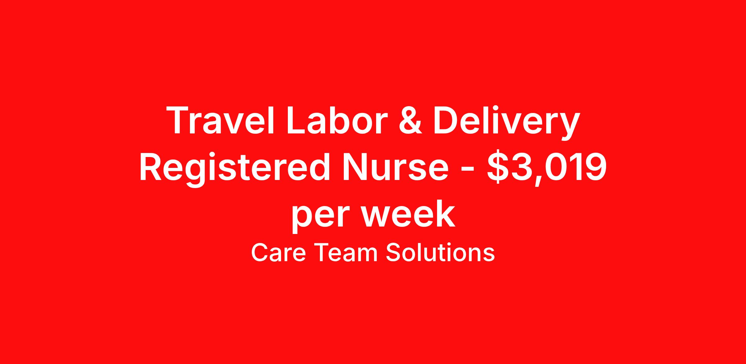 Travel Labor & Delivery Registered Nurse - $3,019 per week