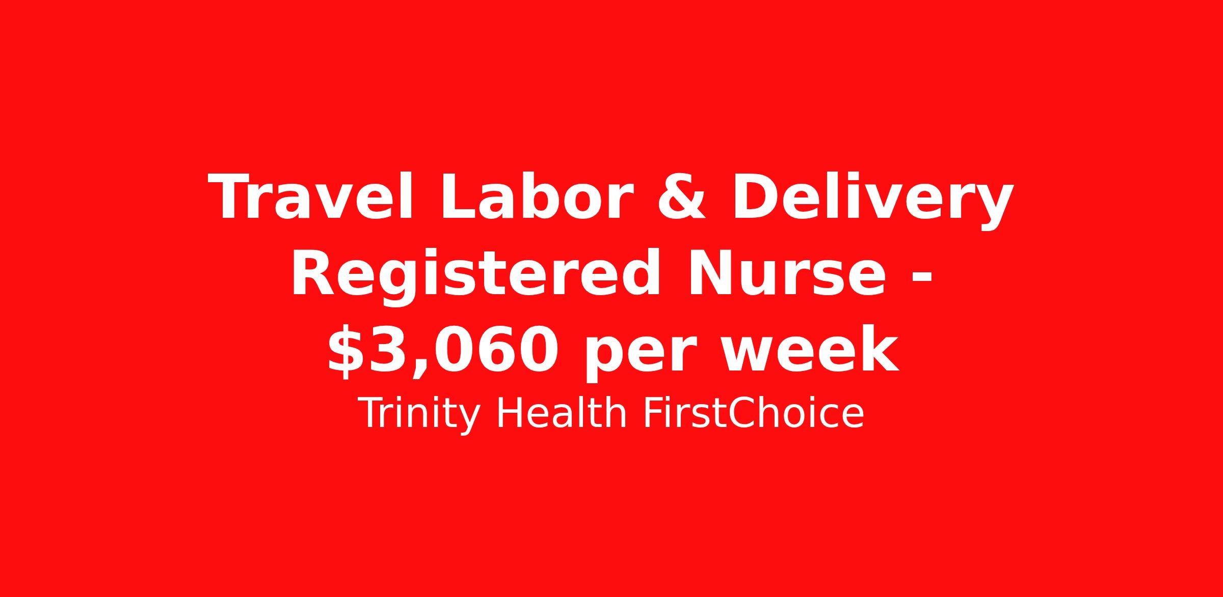 Trinity Health FirstChoice is seeking a travel nurse RN Labor and Delivery for a travel nursing job in Ontario, Oregon. Job Description & Requirements Specialty: Labor and Delivery Discipline: RN Start Date: ASAP Duration: 13 weeks 36 hours per week Shift: 12 hours, days Employment Type: Travel Employment Type: Part time Shift: Description: Travel Registered Nurse, RN, L&D Position Purpose: Are you an experienced Registered Nurse looking for premium compensation and maximum flexibility? Explore FirstChoice – Trinity Health's mobile staffing solution! FirstChoice RNs are utilized to fill short and long-term assignments throughout the health system, and we need you to be a part of this innovative program! Nationwide and Regional opportunities available! Enter Hours of shift here What you will do: Qualified and willing to float throughout the hospital and/or throughout multiple hospital locations and/or regions Knows, understands, incorporates & demonstrates standard elements of professional practice: Assess, Outcomes Identification / Solutions, Plan, Implement, Evaluate Acts independently & appropriately within license, scope of knowledge & experience in practice area Retains accountability for delegation, choices, decisions & outcomes Collaborates with key stakeholders & contributes to quality & improvement practices & outcomes Exhibits agility & willingness to take on new & additional responsibilities Embraces new ideas & cultural differences while managing competing priorities Minimum Qualifications: Graduation from an accredited school of nursing. Valid RN licensure authorized in the applicable state(s) of practice/employment. Minimum of eighteen (18) months of recent clinical experience for Med Surg, Tele and PCU. Minimum two (2) years of recent clinical experience for all remaining specialties including Critical Care, Surgical Services, Maternal Services, Emergency Department and Behavioral Health. Required to have and maintain the credentials required per their specialty area (ex: ACLS, TNCC, etc). BLS, ACLS and PALS must be obtained through American Heart Association Position Highlights and Benefits: Premium Pay Flexible Scheduling Travel and Per Diem opportunities available Variety of Practice Settings Learning Opportunities DailyPay available Reimbursement of License and Certifications available per assignment Opportunity to participate in 403B program Ministry Information: FirstChoice offers rewarding Nursing, Respiratory Therapist, Surgical Technologist, and Health Care Professional travel positions with a flexible schedule to fit your life. FirstChoice travel Health Care Professionals fill critical positions when unforeseen or unplanned circumstances occur; or, when there is a position open due to an extended leave-of-absence. You’ll get to experience a variety of practice settings while traveling within your local region or traveling nationally – your choice! If applicable-enter in state specific pay transparency information. Job Details: Location: St. Alphonsus Health System Start Date: ASAP Weeks: 13 Hours: 3x12 Shift: Day Gross Weekly Rate: $3060.00 Our Commitment Rooted in our Mission and Core Values, we honor the dignity of every person and recognize the unique perspectives, experiences, and talents each colleague brings. By finding common ground and embracing our differences, we grow stronger together and deliver more compassionate, person-centered care. We are an Equal Opportunity Employer. All qualified applicants will receive consideration for employment without regard to race, color, religion, sex, sexual orientation, gender identity, national origin, disability, veteran status, or any other status protected by federal, state, or local law. Trinity Health FirstChoice Job ID 00653056. Pay package is based on 12 hour shifts and 36 hours per week (subject to confirmation) with tax-free stipend amount to be determined. Posted job title: Travel Registered Nurse, RN, L&D About Trinity Health FirstChoice Premium pay FirstChoice offers a rewarding career with significant p remium pay and flexible scheduling to fit your life. FirstChoice h ealthcare travel professionals fill critical positions when unforeseen or unplanned circumstances occur; or, when there is a position open due to an extended leave-of-absence. You’ll get to experience a variety of practice settings while traveling within your local region or traveling nationally – your choice! Healthcare travel professionals, join us in caring for our community, we can't do it without you. FirstChoice exclusively supports facilities within the Trinity Health system meaning you will have a consistent experience between job sites. Your training at one site will apply to other sites within the region and will minimize the time you are spending outside of patient care. We understand that there has been a fundamental shift in the nursing position in recent years and like any other employee, nurses want more options and flexibility in their careers. FirstChoice provides you with both along with the comfort and security of one employer. Benefits of Being a FirstChoice healthcare travel professional: Premium pay Choose your own travel adventure—work in a variety of practice settings Wide range of assignments available Housing and meal stipend Minimum Qualifications/Requirements of a FirstChoice Nurse: Registered nurse with a license in the state(s) you will work Minimum of 2 years, depending on specialty area Cannot hold a concurrent position at a Trinity Health facility Trinity Health is a leading not-for-profit Catholic health system with 92 hospitals and hundreds of primary, specialty and continuing care centers across the United States. Benefits Employee assistance programs 403b retirement plan Discount program