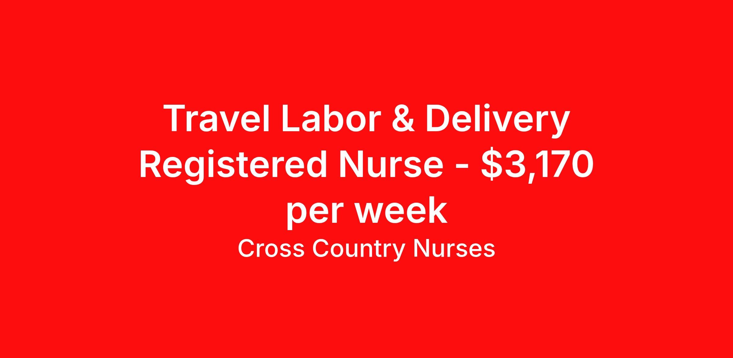 Cross Country Nurses is seeking a travel nurse RN Labor and Delivery for a travel nursing job in San Leandro, California. Job Description & Requirements Specialty: Labor and Delivery Discipline: RN Start Date: 05/05/2026 Duration: 13 weeks 36 hours per week Shift: 12 hours, nights Employment Type: Travel Job Description As a labor and delivery nurse (RN L&D), you will care for women and newborns during the antepartum, intrapartum, postpartum, and neonatal stages of childbirth. This includes coaching women throughout the birthing process, monitoring the mother's and baby's vitals, administering medication and managing potential complications that may arise. You may also be called upon to assist in caesarian sections. You will provide education and guidance to new mothers in regard to recovery and caring for their infants. Minimum Requirements At least 1 year of recent acute care experience in specialty Active RN license Benefits The benefits of taking a travel nursing job with Cross Country include: Private housing or generous housing allowance Comprehensive health insurance with prescription coverage Dependent health insurance with prescription coverage Competitive salaries Referral bonuses Travel reimbursement 401(k) retirement plan Direct deposit/free checking Unlimited free CE credits Cross Country Job ID 1231993. Pay package is based on 12 hour shifts and 36 hours per week (subject to confirmation) with tax-free stipend amount to be determined. Posted job title: Registered Nurse / Labor And Delivery Department About Cross Country Nurses You care for others — we’re here to care for you. At Cross Country, we know travel nursing is about more than just the job. It’s about building a career that supports your lifestyle, your values, and your impact. We offer competitive pay, full benefits, and 24/7 support from a team that truly understands what it means to be on the front lines. Wherever your journey takes you, we’re with you every step of the way. Let’s build your best life — one assignment at a time. Benefits 401k retirement plan Referral bonus
