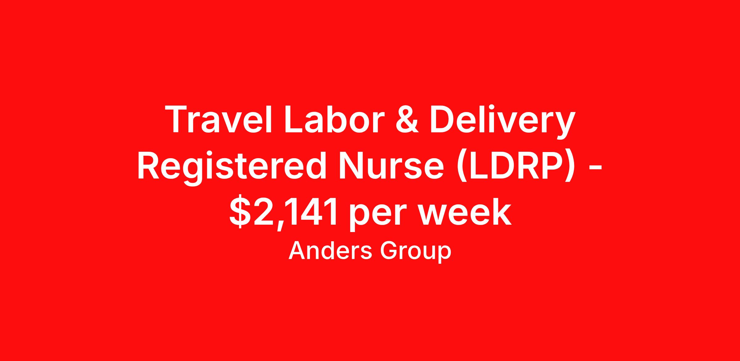 Travel Labor & Delivery Registered Nurse (LDRP) - $2,141 per week