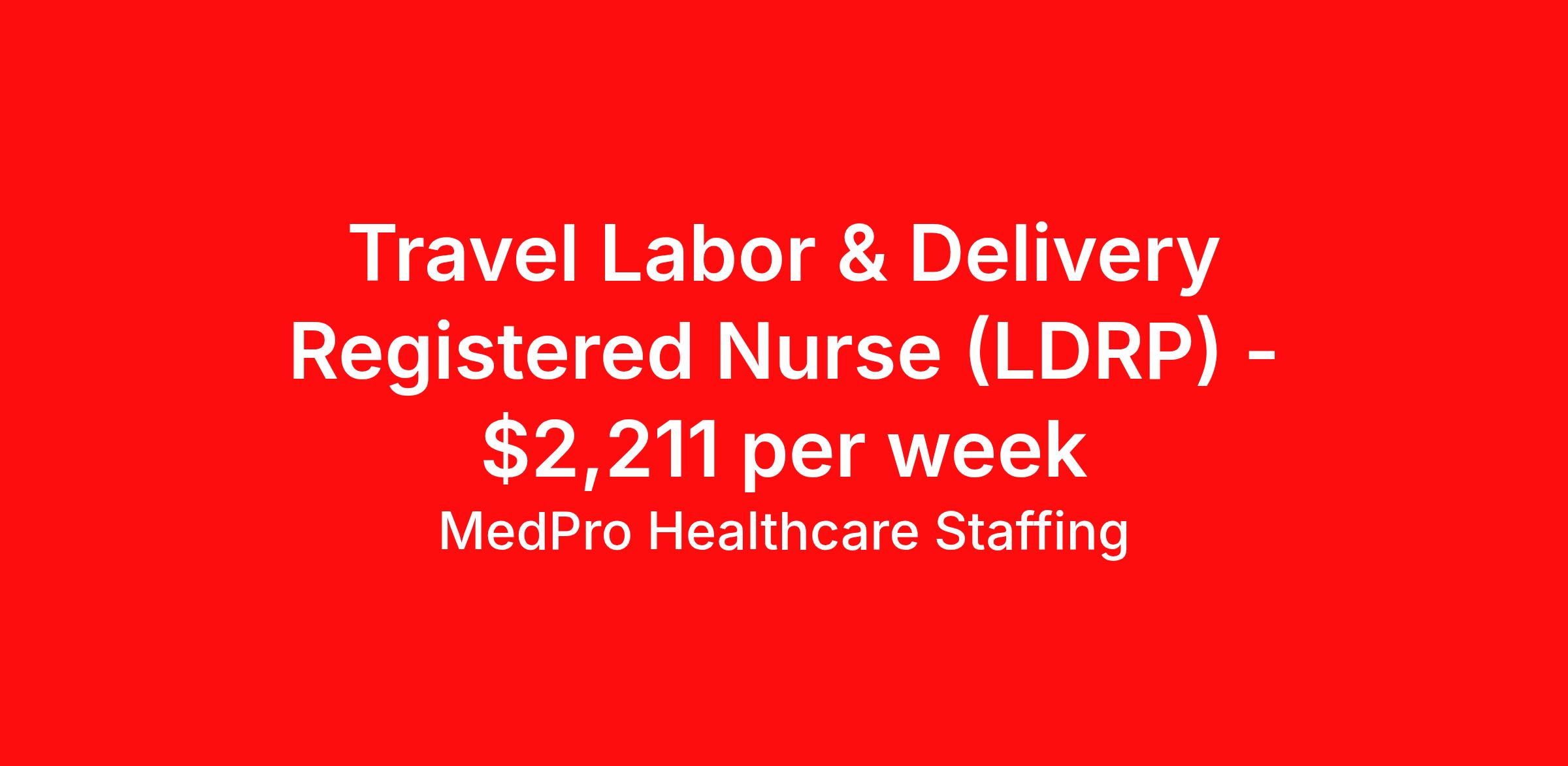 MedPro Healthcare Staffing is seeking a travel nurse RN Labor and Delivery for a travel nursing job in Monroe, Wisconsin. Job Description & Requirements Specialty: Labor and Delivery Discipline: RN Start Date: 04/06/2026 Duration: 13 weeks 36 hours per week Shift: 12 hours, days Employment Type: Travel MedPro Healthcare Staffing , a Joint Commission-certified staffing agency, is seeking a quality Labor & Delivery Registered Nurse for a travel assignment with one of our top healthcare clients. Requirements Active RN License Degree from accredited nursing program BLS, ACLS, NRP, PALS AWHONN Certifications Eighteen months of recent experience in an Acute Care Labor and Delivery (L&D) setting Other requirements to be determined by our client facility Benefits Weekly pay and direct deposit Full coverage of all credentialing fees Private housing or housing allowance Group Health insurance for you and your family Company-paid life and disability insurance Travel reimbursement 401(k) matching Unlimited Referral Bonuses up to $1,000 Duties Responsibilities Labor and Delivery Nurses (RN), also called perinatal nurses, provide care and support for women before, during and after delivery of the baby. They are responsible for making sure that the medical as well as the emotional needs of the patient are adequately met throughout the entire birthing process. Labor and Delivery (LD) nurses provide care to women and their newborns during the antepartum, intrapartum, postpartum and neonatal stages. Monitor vital signs of the mother and baby during birth. Monitor patients for potential high risk problems. Educate and support mothers and their families after giving birth. About Agency MedPro Healthcare Staffing is a Joint Commission certified provider of contract staffing services. Since 1983, we have placed nursing and allied travelers in top healthcare facilities nationwide. Join us today for your very own MedPro Experience®. If qualified and interested, please call for immediate consideration. MedPro Staffing is an Equal Opportunity Employer. All applicants will be considered for employment without attention to race, color, religion, national origin, age, sex, disability, marital status or veteran status. Key Words: Registered Nurse, RN, Labor & Delivery, Contract Nurse, Travel Nurse, Agency RN, Travel RN, Nursing, Contract, L&D, Labor and Delivery, LD *Weekly payment estimates are intended for informational purposes only and include a gross estimate of hourly wages and reimbursements for meal, incidental, and housing expenses. Your recruiter will confirm your eligibility and provide additional details. MedPro Job ID a0Fcx00000H7HVNEA3. Pay package is based on 12 hour shifts and 36 hours per week (subject to confirmation) with tax-free stipend amount to be determined. Posted job title: Labor & Delivery Registered Nurse Nursing: Labor and Delivery. About MedPro Healthcare Staffing At MedPro Healthcare Staffing , we believe no one cares more for caregivers than we do. Our mission is simple: you focus on your patients, and we’ll take care of the rest. As a Joint Commission-certified leader in temporary and contract healthcare staffing since 1983, MedPro has proudly connected nursing and allied travelers with top healthcare facilities across the nation. With thousands of job opportunities available nationwide, we make it easy to find assignments that align with your goals and lifestyle. Our on-staff clinical support team—alongside a compassionate group of experienced recruiters—provides hands-on guidance every step of the way. From Day 1 medical benefits and a 401(k) plan to personalized career support, we’re committed to ensuring every professional we serve feels valued, cared for, and empowered to succeed. Guided by a CEO who is a Registered Nurse, MedPro is built on a foundation of clinical insight and genuine compassion for the caregiving community. Through The MedPro Experience® , we deliver travel assignments that are rewarding, memorable, and designed to help you DREAM big, EXPLORE often, and ACHIEVE greatness. Benefits Day 1 medical, dental, and vision benefits for you and your family Weekly pay and direct deposit Unlimited Referral Bonuses starting at $500 On Staff Clinical Support Team Access to nationwide travel assignments MPX Mobile app -24/7 real-time access to jobs, credentials, assignment details, and more Full coverage of all credentialing fees Private housing or housing allowance Tax Free Per Diems, Housing Stipends and Travel Reimbursements Company-paid life and disability insurance Travel reimbursement 401(k) matching Benefits Weekly pay Referral bonus Employee assistance programs