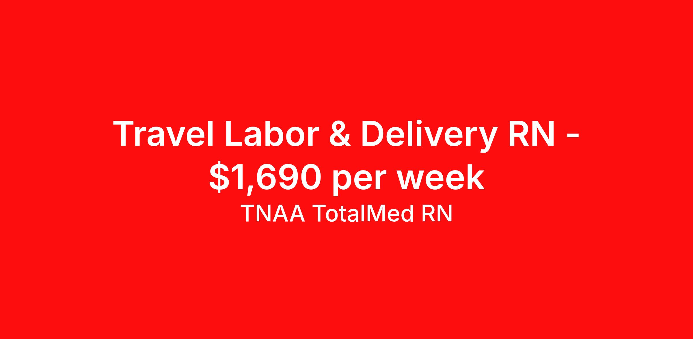 TNAA TotalMed RN is seeking a travel nurse RN Labor and Delivery for a travel nursing job in Richmond, Virginia. Job Description & Requirements Specialty: Labor and Delivery Discipline: RN Duration: 13 weeks 36 hours per week Shift: 12 hours, days Employment Type: Travel We're looking for Labor and Delivery RNs for an immediate travel nurse opening in Richmond, VA. The right RN should have 3 years' recent acute care experience. Read below for more requirements. L&D Travel Nurses provide care and support for women before, during and after delivery of a baby. L&D RNs must ensure that the medical as well as emotional needs of their patients are met at all times throughout the birthing process. As an L&D RN, you'll be responsible for assisting physicians when epidurals or pain medications are administered, episiotomies are performed, or when the patient requires preparation for a cesarean delivery. As an L&D Travel Nurse, you should be prepared to perform the following tasks: Stay with and monitor patient throughout labor. Monitor contractions and help patients with breathing techniques. Check cervix periodically to monitor progression/lack of dilation. Ensure beds are kept clean and dry; clean up bodily fluids expelled before and after birthing process. Aid physician with drapes, gloves, gowns, delivery instruments, etc. Immediate care of newborn. L&D Travel Nurses should be able to stand and walk for long periods of time, as well as bend, lean and stoop without difficulty. RNs should be able to easily lift 20 pounds. Moving or lifting of patients may require lifting of up to 50 pounds at times. Because of the fast-paced environment, L&D RNs must possess good skills for coping with stress and be able to relate to people of all ages and backgrounds. Requirements*: ACLS, BLS, AWHONN, NRP, 2 Years * Additional certifications may be required before beginning an assignment. TotalMed Travel Job ID 1391784. Pay package is based on 12 hour shifts and 36 hours per week (subject to confirmation) with tax-free stipend amount to be determined. Posted job title: Labor and Delivery - LD RN - Travel Nurse About TNAA TotalMed RN TotalMed is a Top Ten, travel nursing and healthcare staffing agency with the mission of igniting purpose in healthcare. The organization staffs nurses, therapists, pharmacists, and other clinicians of all specialties in all 50 states. They offer local and travel jobs and match caregivers with the right organization to assist both facilities and patients. As an organization, they focus on putting highly-skilled staff into facilities to ensure adequate staffing for a better patient experience. TotalMed specializes in recruiting and placing healthcare professionals in travel, PRN, and permanent positions across the country in Nursing and Allied Health. Throughout 2020, the organization filled roles at even the most short-staffed facilities during the most challenging time in healthcare. By matching the right travel healthcare professional with the right organization, TotalMed continues to offer a lifeline to facilities and their patients. Benefits Weekly pay Guaranteed Hours Continuing Education 401k retirement plan Sick pay Wellness and fitness programs Referral bonus Employee assistance programs Medical benefits Dental benefits Vision benefits Benefits start day 1