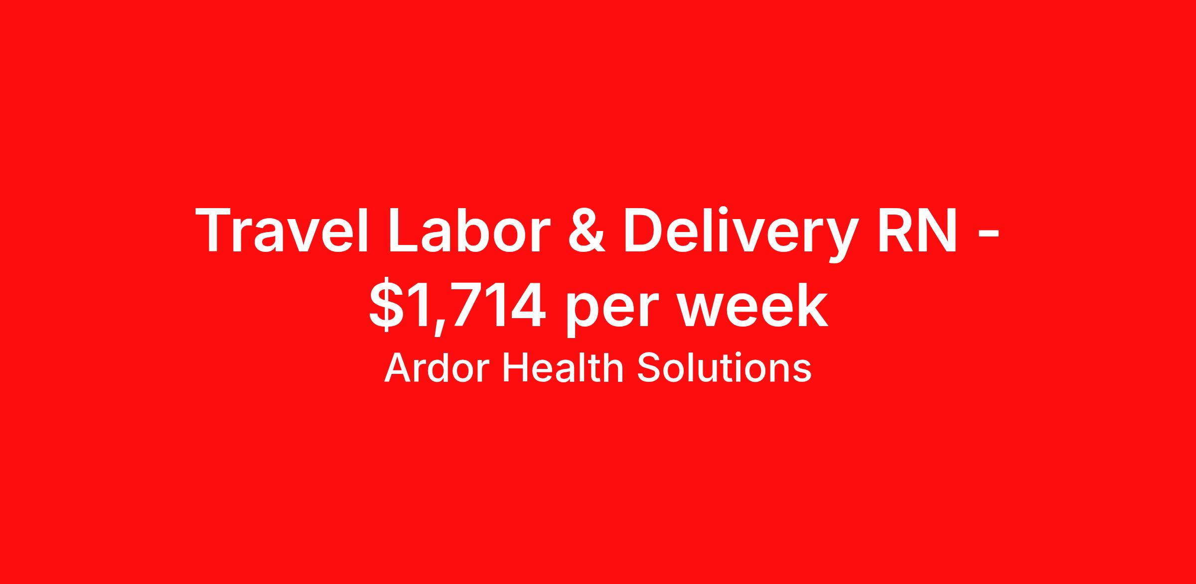 Ardor Health Solutions is seeking a travel nurse RN Labor and Delivery for a travel nursing job in Nashville, Tennessee. Job Description & Requirements Specialty: Labor and Delivery Discipline: RN Start Date: 03/27/2026 Duration: 13 weeks 36 hours per week Shift: 12 hours, nights Employment Type: Travel Location: Nashville, TN Setting: OUT PATIENT Employment Type: Traveler Ardor Health Solutions is looking for a Labor and Delivery - L&D to join our travel team in Nashville, TN! This is a full time travel contract position. Requirements include, but are not limited to: Active TN TRISTAR DIVISION (7) license 2 years of Labor and Delivery - L&D experience This position begins on 10/06/2025 and ends on 01/05/2026 Benefits include: Major Medical Dental/Vision Insurance Pet Insurance Life Insurance with extensive family health options License Reimbursements and processing assistance with our internal licensing department $500 referral bonus 24-hour emergency access to our offices About Ardor Health Solutions: Ardor Health Solutions is a fun, energetic, and passionate group of healthcare staffing professionals. We strive to bring you the highest quality positions that are perfect for your career. We are dedicated to finding you a travel position that not only provides superior compensation, but enriches your life. Ardor Health Solutions is a Fortune Ranked, award-winning, expanding company that has also recently been ranked the 20th Largest Allied Staffing Firm in the Nation by Staffing Industry Analysts (SIA) and by Fortune`s Great Places to Work Survey s several years in a row. For more information or to be considered, please apply now. COVID-19 vaccination and testing requirements vary by facility. Ardor Health adheres to the guidelines and requirements of each facility, as well as all applicable federal, state, and local laws. Ardor Health Job ID 796615. Pay package is based on 12 hour shifts and 36 hours per week (subject to confirmation) with tax-free stipend amount to be determined. Posted job title: Labor and Delivery About Ardor Health Solutions Ardor Health Solutions formed in 2001 and remains a privately held medical staffing business owned and operated by the same family. Over the years we have expanded our staffing and recruiting capabilities to include therapy services, nursing services, and all allied services. If you would like the personal service that comes with a staff of recruiters that have an average tenure with the company between 5 and 15 years, and the knowledge of our client services representatives with similar experience, there is no need to look any further. At Ardor Health Solutions you can expect better than average pay packages, extraordinary benefits, and the peace of mind that you will not be forgotten once you start your assignment. Perhaps that is why so many of our caregivers have completed more than a dozen different assignments with us over our long history. Ardor Health is pleased to offer a free medical insurance plan in addition to major medical plans. Please contact a recruiter for more details on the free medical plan and/or any other general inquiries. One final fact about Ardor Health Solutions. We have been paying our caregivers weekly since 2001, and we have never, ever, missed a payroll. If you are currently on an assignment with us, thank you. If you have traveled with us before, we would like to welcome you back. If you have never traveled with us, give us a try. You will not be disappointed. Benefits Weekly pay Holiday Pay Pet insurance Referral bonus Employee assistance programs Medical benefits Dental benefits Vision benefits Benefits start day 1 License and certification reimbursement Life insurance Discount program