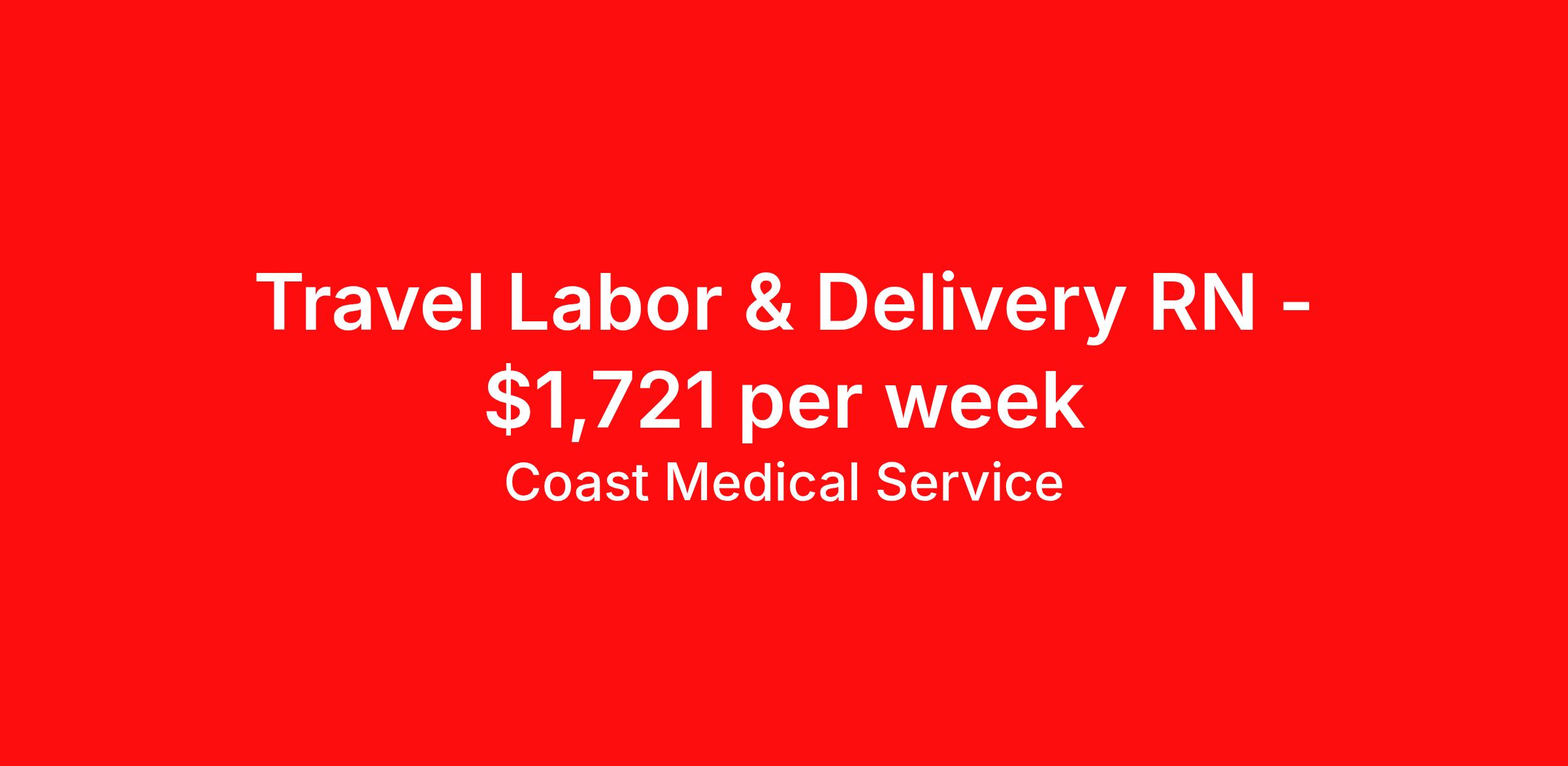 Coast Medical Service is seeking a travel nurse RN Labor and Delivery for a travel nursing job in Smyrna, Tennessee. Job Description & Requirements Specialty: Labor and Delivery Discipline: RN Start Date: ASAP Duration: 13 weeks 36 hours per week Shift: 12 hours, nights Employment Type: Travel Coast Medical Service is a nationwide travel nursing & allied healthcare staffing agency dedicated to providing an elite traveler experience for the experienced or first-time traveler. Coast is featured on Blue Pipes' 2023 Best Travel Agencies and named a 2022 Top Rated Healthcare Staffing Firm & 2023 First Half Top Rated Healthcare Staffing Firm by Great Recruiters. Please note that pay rate may differ for locally based candidates. Please apply here or contact a recruiter directly to learn more about this position & the facility, and/or explore others that may be of interest to you. We look forward to speaking with you! Coast Medical Services Job ID 36051274. Pay package is based on 12 hour shifts and 36.0 hours per week (subject to confirmation) with tax-free stipend amount to be determined. Posted job title: RN:Labor and Delivery,19:00:00-07:30:00