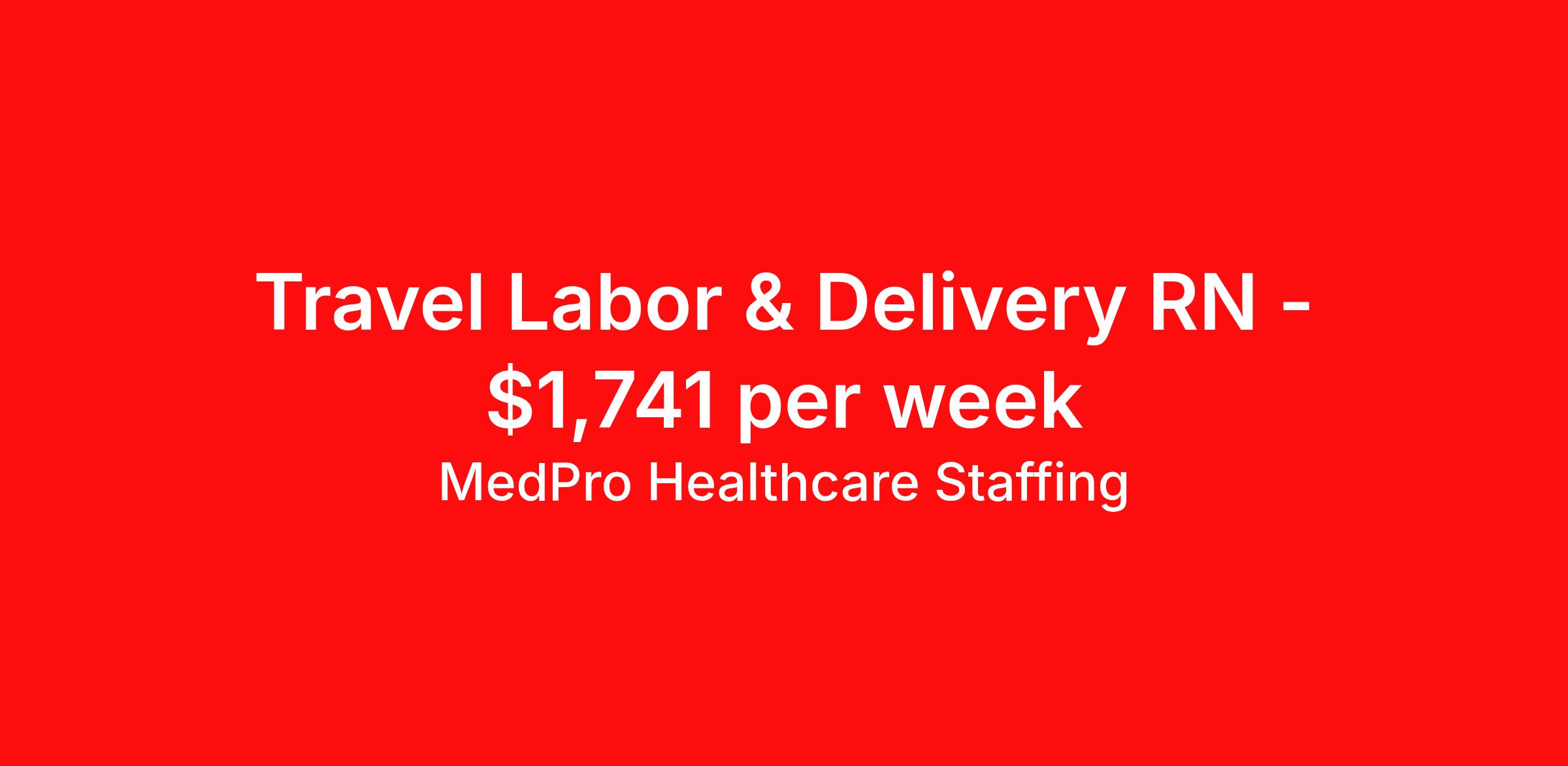 MedPro Healthcare Staffing is seeking a travel nurse RN Labor and Delivery for a travel nursing job in Smyrna, Tennessee. Job Description & Requirements Specialty: Labor and Delivery Discipline: RN Start Date: 04/06/2026 Duration: 13 weeks 36 hours per week Shift: 12 hours, nights Employment Type: Travel MedPro Healthcare Staffing , a Joint Commission-certified staffing agency, is seeking a quality Labor & Delivery Registered Nurse for a travel assignment with one of our top healthcare clients. Requirements Active RN License Degree from accredited nursing program BLS, ACLS, NRP, PALS AWHONN Certifications Eighteen months of recent experience in an Acute Care Labor and Delivery (L&D) setting Other requirements to be determined by our client facility Benefits Weekly pay and direct deposit Full coverage of all credentialing fees Private housing or housing allowance Group Health insurance for you and your family Company-paid life and disability insurance Travel reimbursement 401(k) matching Unlimited Referral Bonuses up to $1,000 Duties Responsibilities Labor and Delivery Nurses (RN), also called perinatal nurses, provide care and support for women before, during and after delivery of the baby. They are responsible for making sure that the medical as well as the emotional needs of the patient are adequately met throughout the entire birthing process. Labor and Delivery (LD) nurses provide care to women and their newborns during the antepartum, intrapartum, postpartum and neonatal stages. Monitor vital signs of the mother and baby during birth. Monitor patients for potential high risk problems. Educate and support mothers and their families after giving birth. About Agency MedPro Healthcare Staffing is a Joint Commission certified provider of contract staffing services. Since 1983, we have placed nursing and allied travelers in top healthcare facilities nationwide. Join us today for your very own MedPro Experience®. If qualified and interested, please call for immediate consideration. MedPro Staffing is an Equal Opportunity Employer. All applicants will be considered for employment without attention to race, color, religion, national origin, age, sex, disability, marital status or veteran status. Key Words: Registered Nurse, RN, Labor & Delivery, Contract Nurse, Travel Nurse, Agency RN, Travel RN, Nursing, Contract, L&D, Labor and Delivery, LD *Weekly payment estimates are intended for informational purposes only and include a gross estimate of hourly wages and reimbursements for meal, incidental, and housing expenses. Your recruiter will confirm your eligibility and provide additional details. MedPro Job ID a0Fcx00000GTBbZEAX. Pay package is based on 12 hour shifts and 36 hours per week (subject to confirmation) with tax-free stipend amount to be determined. Posted job title: Labor & Delivery Registered Nurse Nursing: Labor and Delivery. About MedPro Healthcare Staffing At MedPro Healthcare Staffing , we believe no one cares more for caregivers than we do. Our mission is simple: you focus on your patients, and we’ll take care of the rest. As a Joint Commission-certified leader in temporary and contract healthcare staffing since 1983, MedPro has proudly connected nursing and allied travelers with top healthcare facilities across the nation. With thousands of job opportunities available nationwide, we make it easy to find assignments that align with your goals and lifestyle. Our on-staff clinical support team—alongside a compassionate group of experienced recruiters—provides hands-on guidance every step of the way. From Day 1 medical benefits and a 401(k) plan to personalized career support, we’re committed to ensuring every professional we serve feels valued, cared for, and empowered to succeed. Guided by a CEO who is a Registered Nurse, MedPro is built on a foundation of clinical insight and genuine compassion for the caregiving community. Through The MedPro Experience® , we deliver travel assignments that are rewarding, memorable, and designed to help you DREAM big, EXPLORE often, and ACHIEVE greatness. Benefits Day 1 medical, dental, and vision benefits for you and your family Weekly pay and direct deposit Unlimited Referral Bonuses starting at $500 On Staff Clinical Support Team Access to nationwide travel assignments MPX Mobile app -24/7 real-time access to jobs, credentials, assignment details, and more Full coverage of all credentialing fees Private housing or housing allowance Tax Free Per Diems, Housing Stipends and Travel Reimbursements Company-paid life and disability insurance Travel reimbursement 401(k) matching Benefits Weekly pay Referral bonus Employee assistance programs