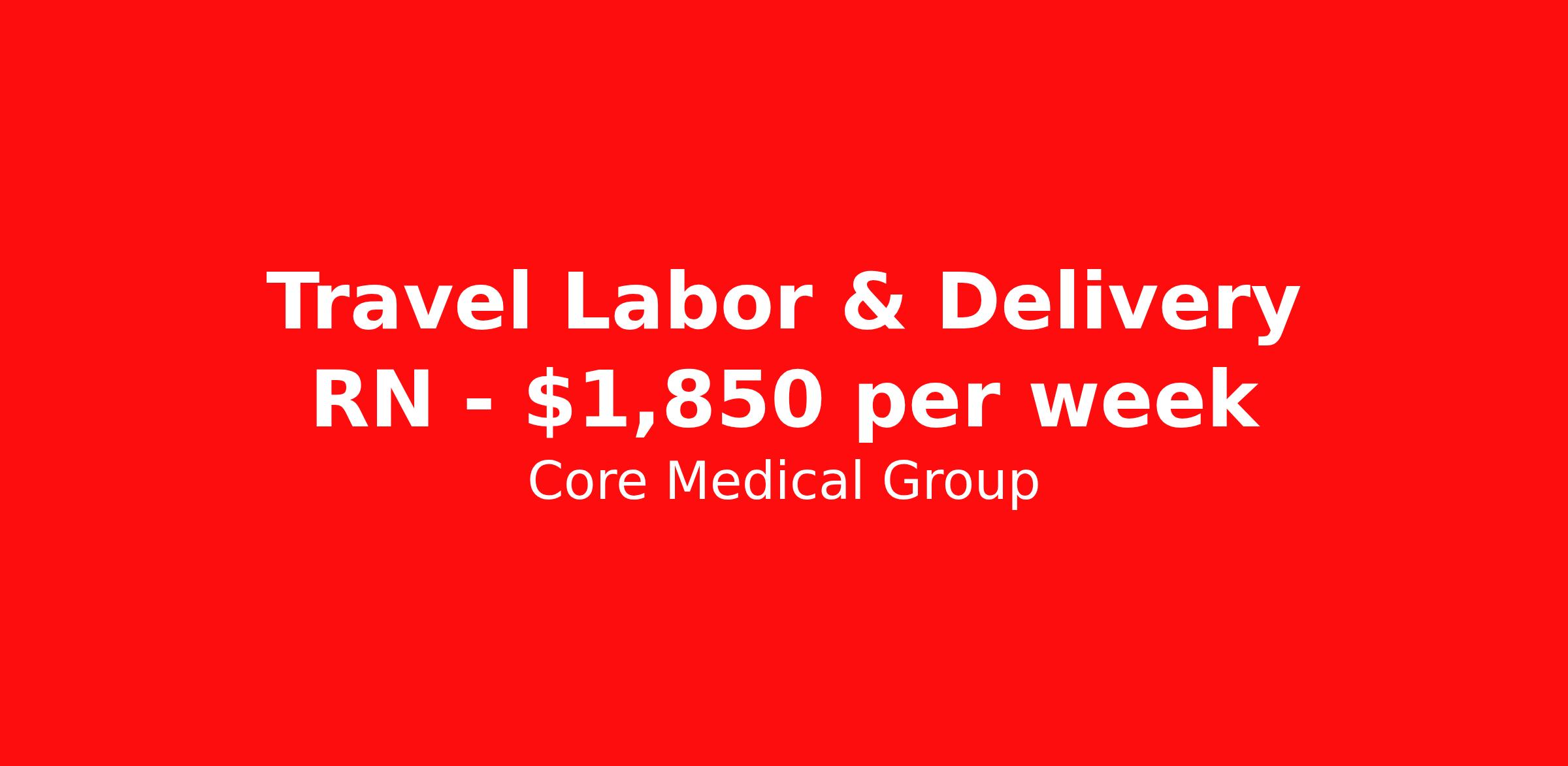 Core Medical Group is seeking a travel nurse RN Labor and Delivery for a travel nursing job in Bentonville, Arkansas. Job Description & Requirements Specialty: Labor and Delivery Discipline: RN Start Date: 03/24/2026 Duration: 13 weeks 36 hours per week Shift: 12 hours Employment Type: Travel Client in AR seeking Registered Nurse: Labor & Delivery for the following shift(s): Nights We are looking for a healthcare professional who is ready to provide exceptional patient care in this contract/travel role. Contract/travel assignments are typically 13 weeks, with potential to extend. Help us continue our mission to connect people, improve lives, and give back to the community by joining the CoreMedical Group team. When you work with CoreMedical Group, we put you first and treat you like family, supporting you every step of the way. CoreMedical Group is one of the largest healthcare staffing agencies in the country, with travel and contract positions located across the United States. Our recruiters will help you find the perfect job, whether it's across the country or across the street. In addition to dedicated, personalized support from your recruiter, when you work with CoreMedical Group you'll receive: Access to an extensive benefits package, including day 1 health, dental, and vision insurance, employer paid life insurance, a health reimbursement account, and more! Weekly paychecks with competitive pay packages Matching 401(k) benefits to help you save for retirement Licensure assistance and reimbursement to set you up for success on your contract Travel reimbursement and dedicated housing support while on assignment Referral cash bonuses when you connect us with other clinicians CoreMedical Group also offers you a free, all-inclusive vacation each year as our way of saying "thank you" for your hard work. Join other healthcare professionals on the annual Club CoreMed retreat and you'll see why our contract and travel professionals come back to us year after year! Your career is too valuable to tackle on your own. Let CoreMedical Group help you with your healthcare journey! *Estimate of weekly payments is intended for informational purposes and includes hourly wages, as well as reimbursements for meal & incidental expenses, and housing expenses incurred on behalf of the Company. Any benefits (medical/dental/vision) are in addition to the weekly pay. Please speak with your Recruiter for additional details. Estimated payments are subject to change until formal offer of assignment is made and accepted. Core Medical Group Job ID 1365099. Pay package is based on 12 hour shifts and 36 hours per week (subject to confirmation) with tax-free stipend amount to be determined. Posted job title: RN About Core Medical Group CoreMedical Group is one of the largest healthcare staffing agencies in the country. We have jobs nationwide in travel nursing, travel allied health, interim, locum tenens, and permanent placements! Join the staffing agency with Club CoreMed, the best perk in the industry - an all inclusive paid trip to a tropical resort! Benefits Weekly pay Holiday Pay Guaranteed Hours Continuing Education 401k retirement plan Pet insurance Company provided housing options Sick pay Wellness and fitness programs Mileage reimbursement Referral bonus Employee assistance programs Medical benefits Dental benefits Vision benefits Benefits start day 1 License and certification reimbursement Life insurance Discount program