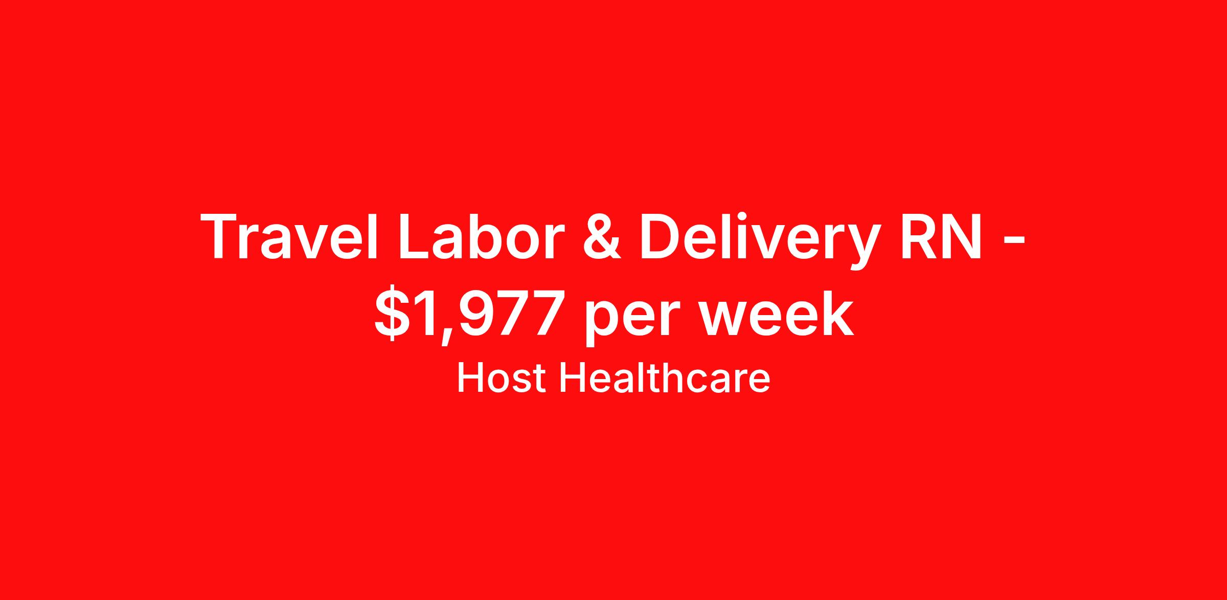Host Healthcare is seeking a travel nurse RN Labor and Delivery for a travel nursing job in Bentonville, Arkansas. Job Description & Requirements Specialty: Labor and Delivery Discipline: RN Start Date: ASAP Duration: 13 weeks 36 hours per week Shift: 12 hours, nights Employment Type: Travel Host Healthcare Job ID a1fVX000002slvGYAQ. Pay package is based on 12 hour shifts and 36 hours per week (subject to confirmation) with tax-free stipend amount to be determined. Posted job title: RN - Labor and Delivery About Host Healthcare At Host Healthcare, we provide a truly comfortable experience as you explore your travel nursing, therapy, or allied career. We make your travel healthcare journey easy by taking care of all the details, so you don’t have to. We are on a mission to help others live better and we do this by helping the healers of the world be as comfortable as possible. With access to tens of thousands of travel nursing, therapy, and allied jobs in all 50 states, our responsive and friendly recruiters find your dream position based on what’s important to you. During your assignment, get access to premium benefits, including Day 1 medical that continues up to 30 days between assignments, 401K matching, travel reimbursements, dedicated housing support, and more. We also offer 24/7 support from our team and access to our on-staff clinicians so you can feel comfortable and confident throughout your entire assignment. Travel comfortably with Host Healthcare. Benefits Referral bonus School loan reimbursement Vision benefits Wellness and fitness programs Company provided housing options License and certification reimbursement Life insurance Medical benefits Mileage reimbursement Pet insurance Discount program Employee assistance programs Guaranteed Hours Health savings account Holiday Pay 401k retirement plan Continuing Education Dental benefits
