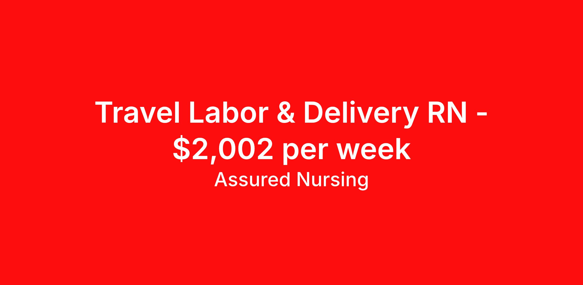 Assured Nursing is seeking a travel nurse RN Labor and Delivery for a travel nursing job in Bentonville, Arkansas. Job Description & Requirements Specialty: Labor and Delivery Discipline: RN Start Date: ASAP Duration: 13 weeks 36 hours per week Shift: 12 hours, nights Employment Type: Travel Assured Nursing is currently seeking a RN for a contract position in Bentonville Arkansas . This is a 7p-7:30a, 19:00:00-07:30:00, 12.00-3 position in the EXT-Other (911) . The ideal candidate will possess a current state license as a RN and have at least 2 years of recent experience as a L&D RN . Assured Nursing Job ID 36158257. Pay package is based on 12 hour shifts and 36.0 hours per week (subject to confirmation) with tax-free stipend amount to be determined. Posted job title: RN:L&D,19:00:00-07:30:00 Benefits Weekly pay Holiday Pay 401k retirement plan Referral bonus Medical benefits Dental benefits Vision benefits