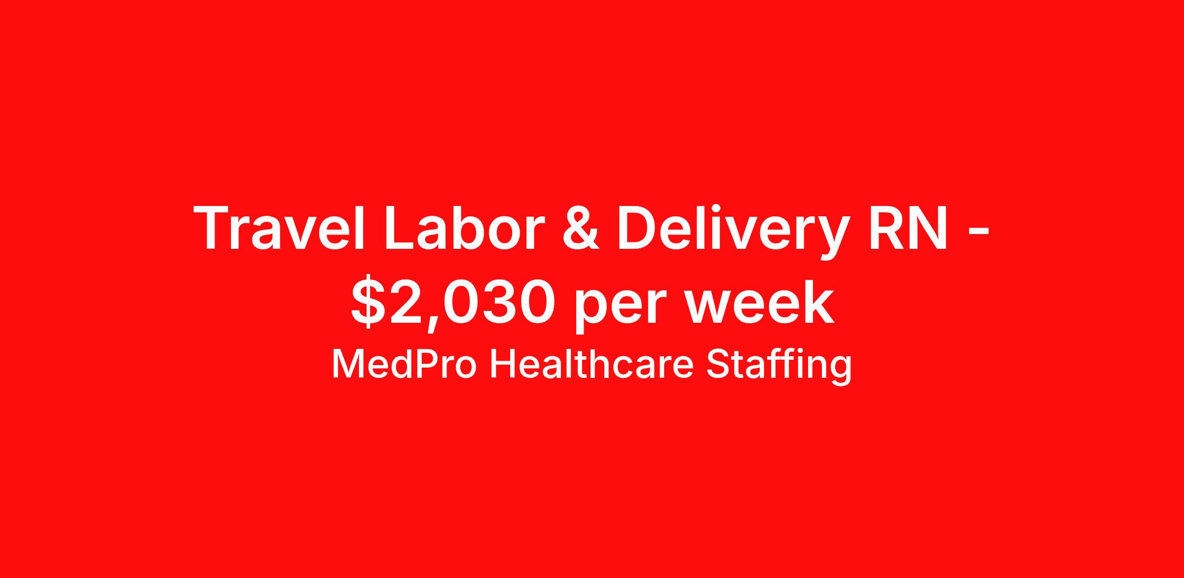 MedPro Healthcare Staffing is seeking a travel nurse RN Labor and Delivery for a travel nursing job in Bentonville, Arkansas. Job Description & Requirements Specialty: Labor and Delivery Discipline: RN Start Date: 04/06/2026 Duration: 13 weeks 36 hours per week Shift: 12 hours, nights Employment Type: Travel MedPro Healthcare Staffing , a Joint Commission-certified staffing agency, is seeking a quality Labor & Delivery Registered Nurse for a travel assignment with one of our top healthcare clients. Requirements Active RN License Degree from accredited nursing program BLS, ACLS, NRP, PALS AWHONN Certifications Eighteen months of recent experience in an Acute Care Labor and Delivery (L&D) setting Other requirements to be determined by our client facility Benefits Weekly pay and direct deposit Full coverage of all credentialing fees Private housing or housing allowance Group Health insurance for you and your family Company-paid life and disability insurance Travel reimbursement 401(k) matching Unlimited Referral Bonuses up to $1,000 Duties Responsibilities Labor and Delivery Nurses (RN), also called perinatal nurses, provide care and support for women before, during and after delivery of the baby. They are responsible for making sure that the medical as well as the emotional needs of the patient are adequately met throughout the entire birthing process. Labor and Delivery (LD) nurses provide care to women and their newborns during the antepartum, intrapartum, postpartum and neonatal stages. Monitor vital signs of the mother and baby during birth. Monitor patients for potential high risk problems. Educate and support mothers and their families after giving birth. About Agency MedPro Healthcare Staffing is a Joint Commission certified provider of contract staffing services. Since 1983, we have placed nursing and allied travelers in top healthcare facilities nationwide. Join us today for your very own MedPro Experience®. If qualified and interested, please call for immediate consideration. MedPro Staffing is an Equal Opportunity Employer. All applicants will be considered for employment without attention to race, color, religion, national origin, age, sex, disability, marital status or veteran status. Key Words: Registered Nurse, RN, Labor & Delivery, Contract Nurse, Travel Nurse, Agency RN, Travel RN, Nursing, Contract, L&D, Labor and Delivery, LD *Weekly payment estimates are intended for informational purposes only and include a gross estimate of hourly wages and reimbursements for meal, incidental, and housing expenses. Your recruiter will confirm your eligibility and provide additional details. MedPro Job ID a0Fcx00000H68ifEAB. Pay package is based on 12 hour shifts and 36 hours per week (subject to confirmation) with tax-free stipend amount to be determined. Posted job title: Labor & Delivery Registered Nurse Nursing: Labor and Delivery. About MedPro Healthcare Staffing At MedPro Healthcare Staffing , we believe no one cares more for caregivers than we do. Our mission is simple: you focus on your patients, and we’ll take care of the rest. As a Joint Commission-certified leader in temporary and contract healthcare staffing since 1983, MedPro has proudly connected nursing and allied travelers with top healthcare facilities across the nation. With thousands of job opportunities available nationwide, we make it easy to find assignments that align with your goals and lifestyle. Our on-staff clinical support team—alongside a compassionate group of experienced recruiters—provides hands-on guidance every step of the way. From Day 1 medical benefits and a 401(k) plan to personalized career support, we’re committed to ensuring every professional we serve feels valued, cared for, and empowered to succeed. Guided by a CEO who is a Registered Nurse, MedPro is built on a foundation of clinical insight and genuine compassion for the caregiving community. Through The MedPro Experience® , we deliver travel assignments that are rewarding, memorable, and designed to help you DREAM big, EXPLORE often, and ACHIEVE greatness. Benefits Day 1 medical, dental, and vision benefits for you and your family Weekly pay and direct deposit Unlimited Referral Bonuses starting at $500 On Staff Clinical Support Team Access to nationwide travel assignments MPX Mobile app -24/7 real-time access to jobs, credentials, assignment details, and more Full coverage of all credentialing fees Private housing or housing allowance Tax Free Per Diems, Housing Stipends and Travel Reimbursements Company-paid life and disability insurance Travel reimbursement 401(k) matching Benefits Weekly pay Referral bonus Employee assistance programs