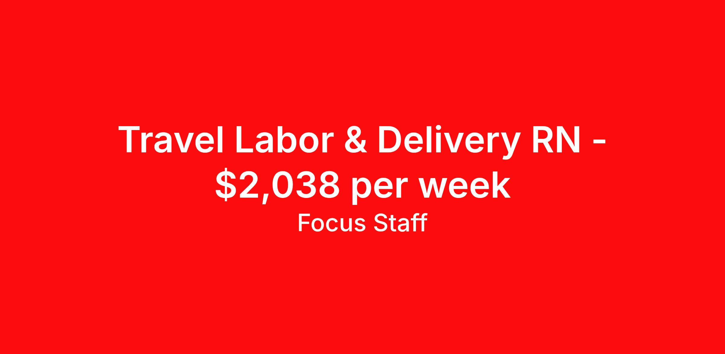 Focus Staff is seeking a travel nurse RN Labor and Delivery for a travel nursing job in Lewiston, Maine. Job Description & Requirements Specialty: Labor and Delivery Discipline: RN Start Date: 04/15/2026 Duration: 8 weeks 36 hours per week Shift: 12 hours, nights Employment Type: Travel Start your next rewarding travel Labor and Delivery (L&D) RN assignment with Focus Staff in Lewiston, ME. Bring your expertise and passion for maternal and newborn care to diverse environments, where you will provide exceptional support and care to expectant mothers and their families. Design your travel nurse career path, one delivery at a time. Contract Length: 8 Start Date: 04/15/2026 Shift: 3x12 Nights Why L&D Nurses choose Focus Staff: Rewarding Your Commitment : Weekly direct deposits, housing stipends, 401(k) with matching, and loyalty/referral bonuses. Your Wellbeing, Our Priority : Medical, dental, vision, and life insurance from day one, no waiting period. Journey Made Simple : Travel assistance, relocation support, licensure reimbursement, and exclusive hotel discounts. Flexibility Meets Support : Dedicated recruiters, 24/7 support, flexible scheduling, and pet-friendly accommodations. Labor & Delivery RN Requirements: Minimum of 1-2 years of experience in a cardiac catheterization lab setting. Valid Registered Nurse (RN) license in the state of practice Current Basic Life Support (BLS) and Advanced Cardiac Life Support (ACLS) certification. About Focus Staff: Focus Staff is a traveler-first healthcare staffing agency connecting talented travel nurses and allied health professionals with top assignments nationwide, prioritizing your unique needs and giving you complete control over your journey. Our mission is to help you create the life you love while exploring the country, advancing your healthcare career with competitive pay, and doing what you do best, providing exceptional patient care that makes a difference. Interested in becoming a traveler with Focus Staff? Discover why travelers choose us, apply today! Job Type: Contract/Temporary/Travel Location: Lewiston, ME Date Posted: 03/11/2026 01:40:32 PM Valid Through: 06/10/2026 Job City: Lewiston Job State: ME Job Country: USA Shift: 3x12 Nights Job ID: a0xVt00000JcWiIIAV Hiring Organization: Focus Staff Focus Staff is an EEO/AA (Equal Employment Opportunity and Affirmative Action) Employer. *Estimated pay package based on bill rate at time job was posted. Bill rates can change frequently and without notice. Exact pay package may vary based on several factors, including, but not limited to, guaranteed hours, travel distance, demand, experience, etc. Focus Staff Job ID a0xVt00000JcWiIIAV. Pay package is based on 12 hour shifts and 36 hours per week (subject to confirmation) with tax-free stipend amount to be determined. Posted job title: Travel L&D RN - Labor & Delivery Registered Nurse About Focus Staff Your Journey, Our Focus. Travel Confidently, Care Boldly with Focus Staff. At Focus Staff, we’re here to make your travel healthcare career rewarding, seamless, and stress-free. Whether you’re a travel nurse, therapist, or allied health professional, we take care of the details so you can focus on what you do best — caring for others. Our mission is simple: to help healthcare heroes like you thrive, no matter where your journey takes you. With thousands of job opportunities across all 50 states, our dedicated recruiters work closely with you to match you to the right assignment, based on what matters most to you — pay, location, benefits, or career growth. From day one, you’ll enjoy premium benefits like medical coverage that bridges between assignments, 401K matching, travel and licensing reimbursements, and personalized housing support. Plus, our team is here for you 24/7, with clinical support available whenever you need guidance or backup. At Focus Staff, we believe in making every assignment a smooth, comfortable, and empowering experience. Let’s make your next adventure your best one yet.