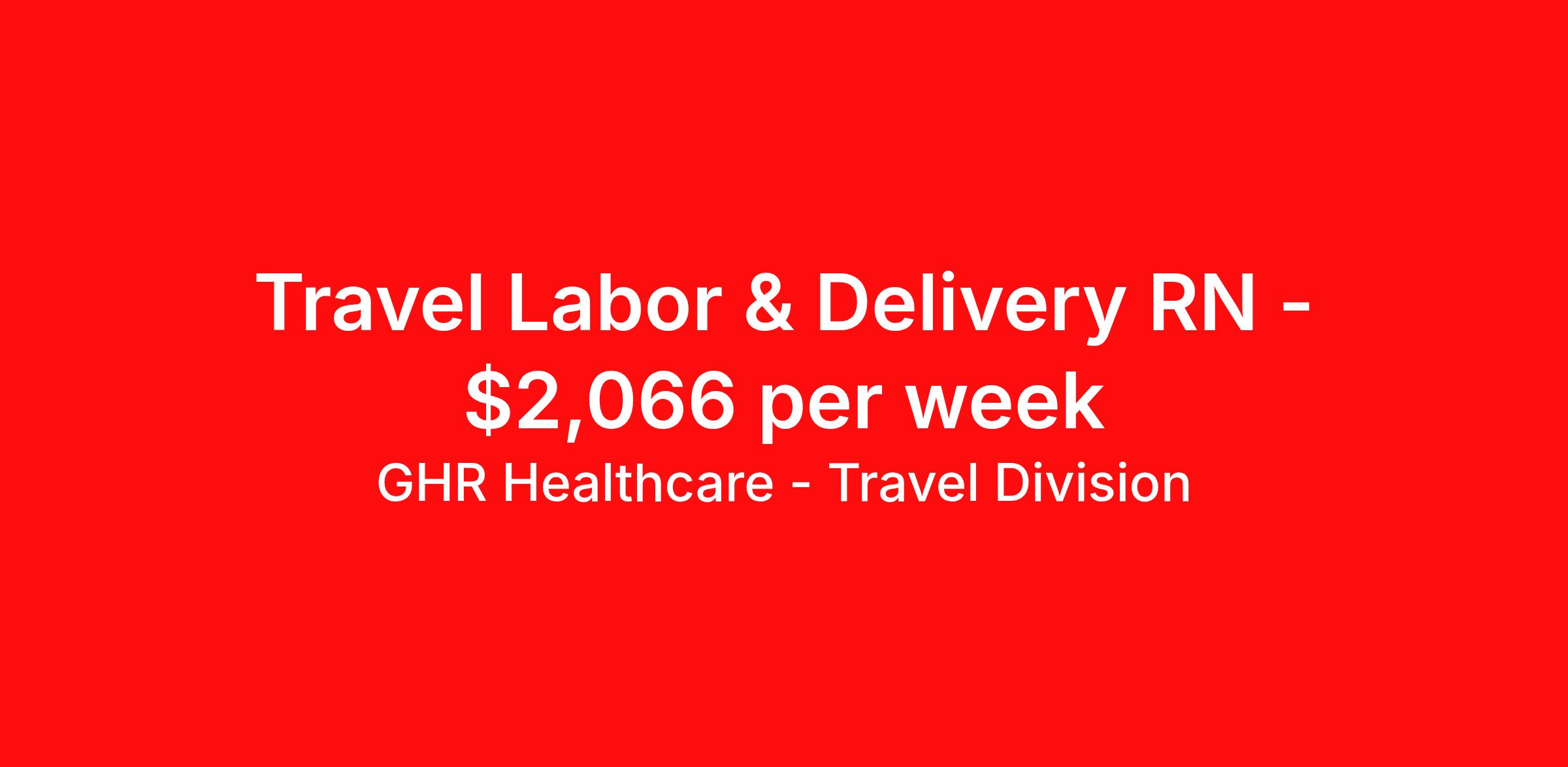 GHR Healthcare - Travel Division is seeking a travel nurse RN Labor and Delivery for a travel nursing job in Bentonville, Arkansas. Job Description & Requirements Specialty: Labor and Delivery Discipline: RN Start Date: ASAP Duration: 13 weeks 36 hours per week Shift: 12 hours Employment Type: Travel GHR Healthcare - Travel Division Job ID 76265174. Pay package is based on 12 hour shifts and 36 hours per week (subject to confirmation) with tax-free stipend amount to be determined. About GHR Healthcare - Travel Division For over 30 years, GHR Healthcare has been the bridge between healthcare professionals and the facilities that need them nationwide. We're committed to uncovering your ideal fit, supported by GHR's dedication to competitive compensation, transparent communication, and a devoted team that genuinely cares about your career journey. You can trust us to stand by your side as your advocate, confidante, and partner in advancing your career. At GHR, care and consideration are at the heart of everything we do. Visit ghrhealthcare.com to learn more.