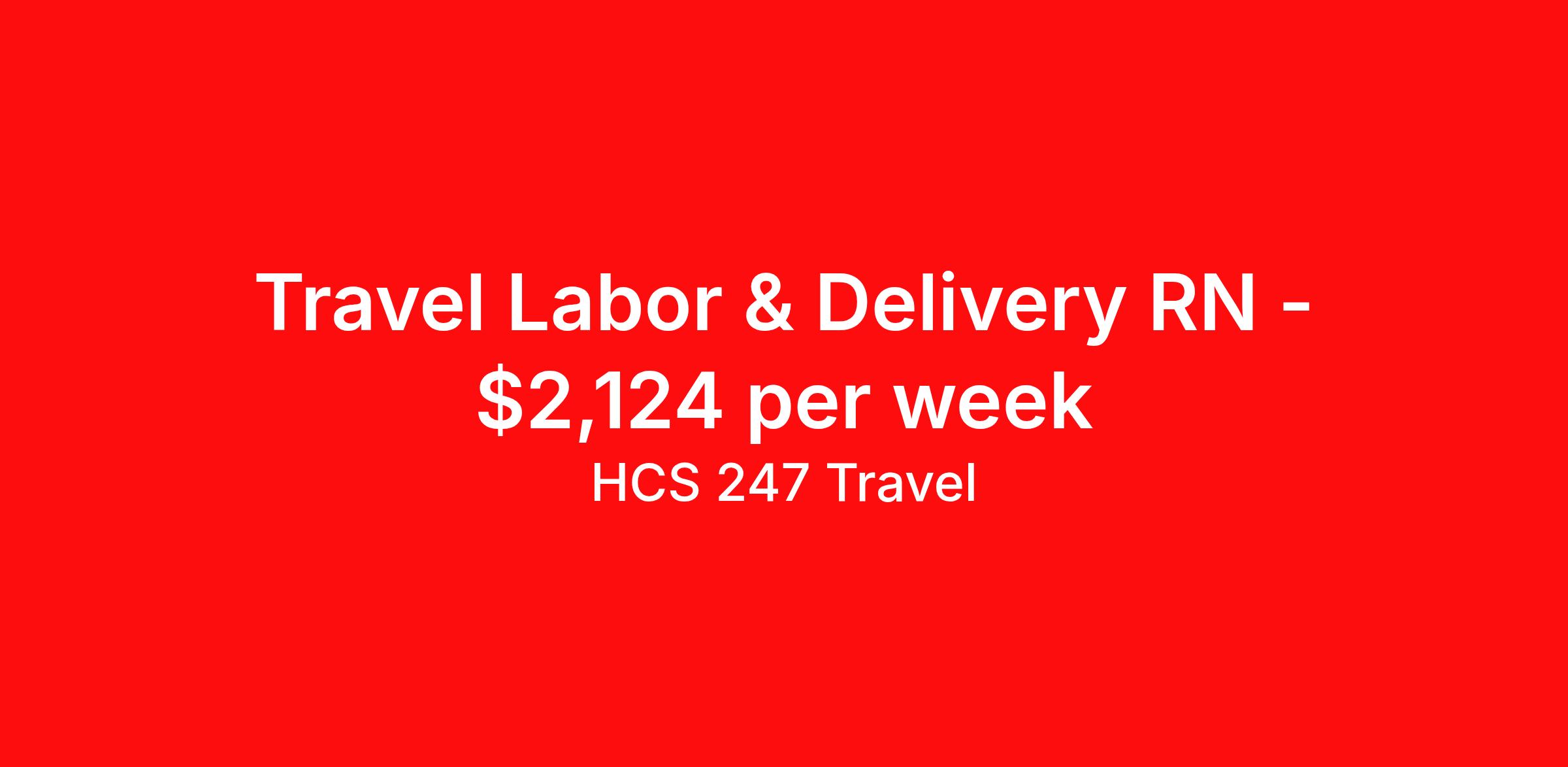 HCS 247 Travel is seeking a travel nurse RN Labor and Delivery for a travel nursing job in Reston, Virginia. Job Description & Requirements Specialty: Labor and Delivery Discipline: RN Start Date: 04/06/2026 Duration: 13 weeks 36 hours per week Shift: 12 hours, nights Employment Type: Travel HCS 247 Travel Job ID 60599718. Pay package is based on 12 hour shifts and 36 hours per week (subject to confirmation) with tax-free stipend amount to be determined. About HCS 247 Travel HCS 24/7 is a national healthcare staffing organization specializing in the placement of Registered Nurses and Allied health professionals across acute care and other clinical settings. We support travel assignments, local short- and long-term contracts, per diem, temp-to-perm, and direct hire opportunities nationwide. Our clinical coverage includes Registered Nurse specialties such as ER, ICU, Med-Surg, Telemetry, Step-Down, OR, PACU, L&D, Mother/Baby, NICU, Cath Lab, Endoscopy, and more along with a full range of allied and imaging professionals, including Respiratory Therapists, Surgical Technicians, X-Ray Techs, CT Techs, MRI Techs, Interventional Radiology (IR) Techs, Cath Lab Techs, Ultrasound/Sonographers, Mammography Techs, and Nuclear Medicine Techs. With competitive compensation and benefits, consistent opportunities, and a clinician-first approach backed by top-rated customer service, HCS 24/7 delivers a seamless experience from initial application through assignment completion. Benefits Holiday Pay Guaranteed Hours Continuing Education Mileage reimbursement Referral bonus Medical benefits Dental benefits Vision benefits License and certification reimbursement Life insurance Benefits start day 1 Weekly pay