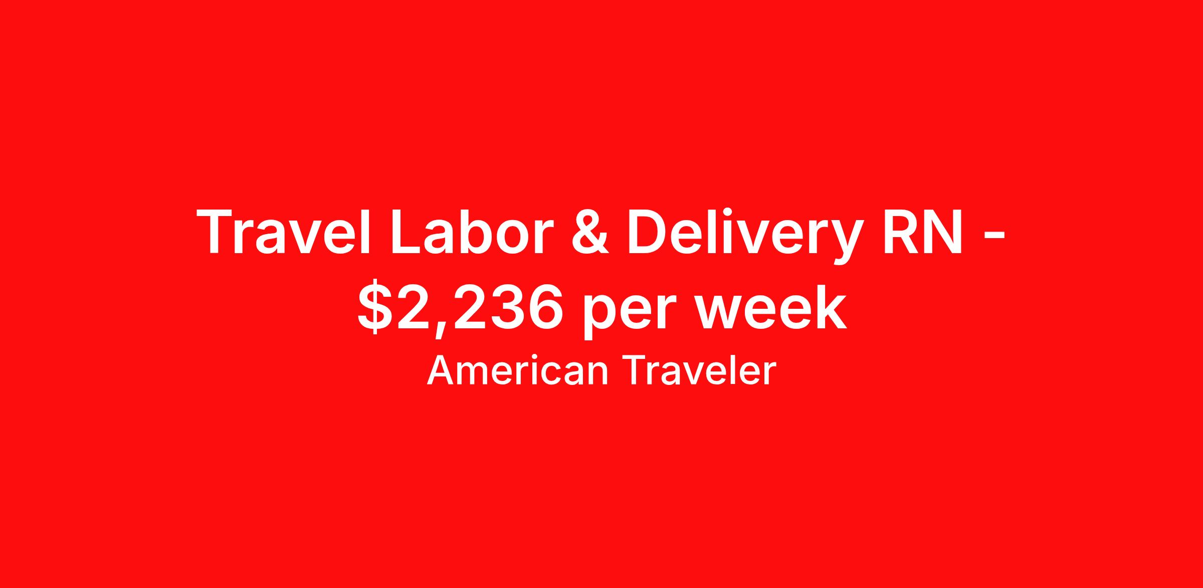 American Traveler is seeking a travel nurse RN Labor and Delivery for a travel nursing job in Rockford, Illinois. Job Description & Requirements Specialty: Labor and Delivery Discipline: RN Start Date: 04/06/2026 Duration: 13 weeks 36 hours per week Shift: 12 hours, nights Employment Type: Travel Assignment Overview Shift: Nights, 3x12hrs Hours: 36 hrs/wk Start Date: Apr 6, 2026 Length: 13 weeks Openings: 2 Description American Traveler is seeking an experienced RN for a Labor & Delivery position at a mid-to-large hospital setting in Illinois, requiring a minimum of 2 years of L&D experience and night shift availability. Details Labor & Delivery unit at a mid-to-large hospital Unit includes 14 labor rooms, 3 triage/overnight observation rooms, 2 ORs, 3 PACUs, and a 4-bed OBED off the unit High-volume unit averaging approximately 230 deliveries per month 12-hour night shifts, 7:00 PM – 7:30 AM, 3 shifts per week Every other weekend and holiday coverage required No on-call responsibilities Requirements Active Illinois (IL) RN license required Current BLS certification required Minimum 2 years of Labor & Delivery RN experience required Experience in a mid-to-large hospital setting required Additional Information 13-week contract assignment American Traveler Job ID P-687336. Pay package is based on 12 hour shifts and 36 hours per week (subject to confirmation) with tax-free stipend amount to be determined. Posted job title: Travel RN - Labor & Delivery About American Traveler With over 25 years of experience, American Traveler has established a reputation for outstanding customer service. Our team ensures a smooth, worry-free experience for those starting on or expanding their travel nursing and allied careers. With thousands of travel nursing and allied jobs nationwide, our attentive and approachable recruiters find positions that align perfectly with your career aspirations and personal requirements. American Traveler offers exceptional benefits, including premium medical, dental, vision and life insurance beginning day one of your assignment, generous 401(k) match, substantial housing stipends, and more. Additionally, with 24/7 support and access to our in-house clinicians, you are assured confidence and comfort throughout your assignment. With our team behind you, you can relax and enjoy a rewarding travel career.