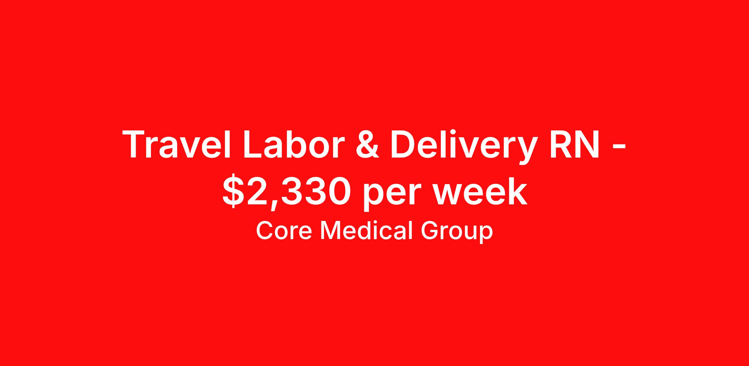Core Medical Group is seeking a travel nurse RN Labor and Delivery for a travel nursing job in Omaha, Nebraska. Job Description & Requirements Specialty: Labor and Delivery Discipline: RN Start Date: 03/30/2026 Duration: 13 weeks 36 hours per week Shift: 12 hours Employment Type: Travel Client in NE seeking Registered Nurse: Labor & Delivery for the following shift(s): Nights We are looking for a healthcare professional who is ready to provide exceptional patient care in this contract/travel role. Contract/travel assignments are typically 13 weeks, with potential to extend. Help us continue our mission to connect people, improve lives, and give back to the community by joining the CoreMedical Group team. When you work with CoreMedical Group, we put you first and treat you like family, supporting you every step of the way. CoreMedical Group is one of the largest healthcare staffing agencies in the country, with travel and contract positions located across the United States. Our recruiters will help you find the perfect job, whether it's across the country or across the street. In addition to dedicated, personalized support from your recruiter, when you work with CoreMedical Group you'll receive: Access to an extensive benefits package, including day 1 health, dental, and vision insurance, employer paid life insurance, a health reimbursement account, and more! Weekly paychecks with competitive pay packages Matching 401(k) benefits to help you save for retirement Licensure assistance and reimbursement to set you up for success on your contract Travel reimbursement and dedicated housing support while on assignment Referral cash bonuses when you connect us with other clinicians CoreMedical Group also offers you a free, all-inclusive vacation each year as our way of saying "thank you" for your hard work. Join other healthcare professionals on the annual Club CoreMed retreat and you'll see why our contract and travel professionals come back to us year after year! Your career is too valuable to tackle on your own. Let CoreMedical Group help you with your healthcare journey! *Estimate of weekly payments is intended for informational purposes and includes hourly wages, as well as reimbursements for meal & incidental expenses, and housing expenses incurred on behalf of the Company. Any benefits (medical/dental/vision) are in addition to the weekly pay. Please speak with your Recruiter for additional details. Estimated payments are subject to change until formal offer of assignment is made and accepted. Core Medical Group Job ID 1362141. Pay package is based on 12 hour shifts and 36 hours per week (subject to confirmation) with tax-free stipend amount to be determined. Posted job title: RN About Core Medical Group CoreMedical Group is one of the largest healthcare staffing agencies in the country. We have jobs nationwide in travel nursing, travel allied health, interim, locum tenens, and permanent placements! Join the staffing agency with Club CoreMed, the best perk in the industry - an all inclusive paid trip to a tropical resort! Benefits Weekly pay Holiday Pay Guaranteed Hours Continuing Education 401k retirement plan Pet insurance Company provided housing options Sick pay Wellness and fitness programs Mileage reimbursement Referral bonus Employee assistance programs Medical benefits Dental benefits Vision benefits Benefits start day 1 License and certification reimbursement Life insurance Discount program