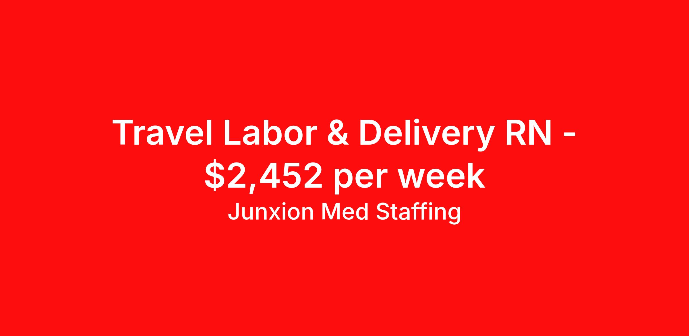 Junxion Med Staffing is seeking a travel nurse RN Labor and Delivery for a travel nursing job in Show Low, Arizona. Job Description & Requirements Specialty: Labor and Delivery Discipline: RN Start Date: 03/23/2026 Duration: 13 weeks 36 hours per week Shift: 12 hours, nights Employment Type: Travel Summary: Junxion Med Staffing is looking for a L&D RN to take an assignment in Show Low, Arizona. This assignment lasts 13.14 WEEKS and is scheduled to start on March 23, 2026. If you don't like the start date, pay, or shift, then let’s talk. Give us a call opt 1 Job Details: Shift: 12H Nights Total Weekly Hours: 36 Certifications: BLS, ACLS, BLS, NRP, Intermediate or advanced Fetal Monitoring, AWHONN Intermediate Fetal Monitoring, NIHSS Trauma Level: Benefits: Day 1 Insurance Additional bonus potential for every contract Additional vacation incentives Medical insurance with no more than $175 monthly premium for employee Employee Assistance Program (EAP) Referral bonus up to $1,000 401K and access to financial advisors for financial wellness and education A dedicated recruiter and support team that will help you every step of the way to sure you start on time and have an exceptional experience An agency ran by a traveler for travelers Click here for licensing requirements About the Company: Junxion Med Staffing is an award-winning healthcare staffing company with a mission to provide quality healthcare to our communities. Apply today to speak with a recruiter! Awards: RNVIP- Top 10 Travel Nursing Agencies of 2024 BluePipes – The Best Travel Nursing Companies 2023 *Estimated weekly pay includes projected hourly wages and weekly meal and lodging per diems for eligible clinicians based on nationally published GSA rates. Actual weekly pay and per diems may differ from the amount shown and may be subject to change during an assignment. For all employees and employee applicants, Junxion Med Staffing is an Equal Employment Opportunity ("EEO") Employer, including Disability/Vets, and welcomes all to apply. Junxion Med Staffing Job ID 1361987. Pay package is based on 12 hour shifts and 36 hours per week (subject to confirmation) with tax-free stipend amount to be determined. About Junxion Med Staffing Junxion Med Staffing was founded by a former healthcare traveler who understands the challenges healthcare professionals face - because we’ve been there. We specialize in placing travel nurses, allied health professionals, physicians, physician assistants, and nurse practitioners in both short-term and permanent roles across a wide range of specialties. Whether you're looking for a travel contract or a long-term fit, we work to ensure the right match between each healthcare professional and facility. At Junxion, we keep it simple: ● Transparent communication. No surprises, no hidden details, just honest conversations so you always know what to expect. ● Dedicated support. From job search to contract negotiations and throughout your assignment, you’ll have a recruiter who’s with you every step of the way. ● Competitive pay and benefits. We advocate for you to be fairly compensated and supported in your goals. ● A focus on your success. When healthcare professionals feel valued and empowered, patient care improves and that’s what it’s all about. You’re not just a number here. You’re part of a team that actually cares. Let’s find your next great opportunity together. Benefits Weekly pay Referral bonus Dental benefits Vision benefits 401k retirement plan Medical benefits Mileage reimbursement