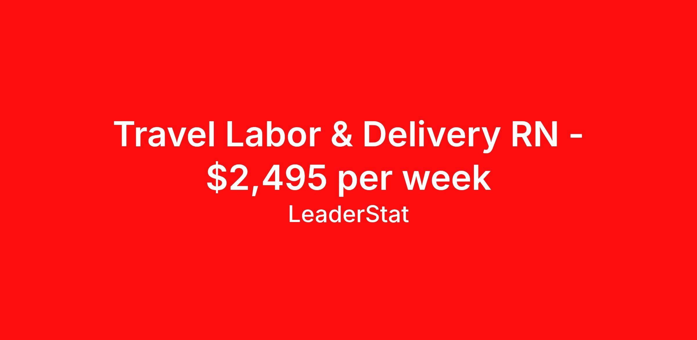 LeaderStat is seeking a travel nurse RN Labor and Delivery for a travel nursing job in Columbus, Ohio. Job Description & Requirements Specialty: Labor and Delivery Discipline: RN Start Date: 06/01/2026 Duration: 13 weeks 36 hours per week Shift: 12 hours Employment Type: Travel Estimated Pay Package : Up to $ 2495.44 per week *The above pay package is an estimate, please contact our team to put together your personalized pay package, as a variety of factors can influence your total pay.* Labor and Delivery Registered Nurse in Columbus, OH LeaderStat is currently seeking a Labor and Delivery Registered Nurse for a(n) 13 week contract in OH. Start Date: 6/1/2026 End Date: 8/31/2026 Shift: Day 3x12-Hour (07:00 - 19:30) 1 year of experience working as a full-time Registered Nurse Clinical experience within the last 2 years Current State Licensure Current Relevant Certifications (BLS, ACLS, etc) The LeaderStat Difference Our LeaderStat recruiters are experts in Travel Nursing! We work hard to find the best travel nurse jobs for each candidate. However, our service doesn’t end at placement. We set you up for success by providing support throughout your contract… from start to finish! Our goal is to find the best travel nurse assignments to fit your individual needs. While you focus on providing top-notch care to your patients, we’ll handle the rest. LeaderStat Perks & Benefits As a Traveling Nurse with LeaderStat you receive excellent benefits: Weekly Pay & Direct Deposit W2 Employee Status 401(k) Retirement Plan Medical, Dental and Vision Insurance Referral Bonuses Dedicated Support Team To learn more about LeaderStat visit www.leaderstat.com/travel-nursing Equal Employment Opportunity: LeaderStat, Ltd. prohibits discrimination with respect to the hiring or promotion of individuals, conditions of employment, disciplinary and discharge practices or any other aspect of employment on the basis of sex, race, color, age, national origin, religion, disability, marital status, sexual orientation, gender identity, pregnancy or veteran status. LeaderStat Job ID 301081. Pay package is based on 12 hour shifts and 36 hours per week (subject to confirmation) with tax-free stipend amount to be determined. Posted job title: Labor and Delivery Registered Nurse About LeaderStat LeaderStat is a National staffing, recruiting, and consulting firm dedicated to the healthcare industry. For 20 years, LeaderStat has been dedicated to partnering with exceptional healthcare providers to find them the very best assignments throughout the country. Specializing in Travel Nursing, Interim Leadership, Executive Search, and Consulting. When you work with the LeaderStat team, you work with a recruiter who is dedicated to finding you the perfect assignment. Why would you settle for less? Benefits Referral bonus License and certification reimbursement Medical benefits Holiday Pay Weekly pay 401k retirement plan