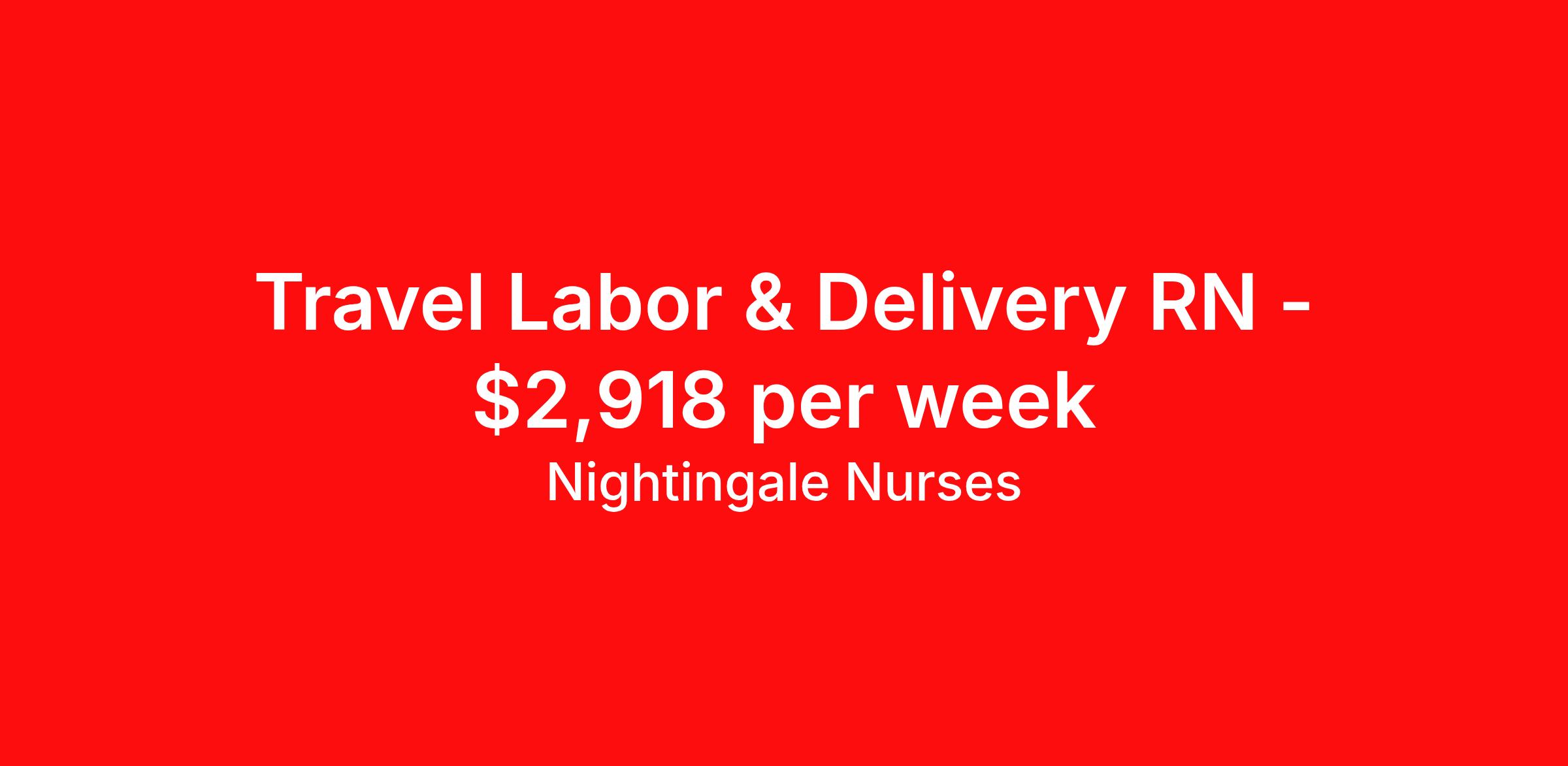Nightingale Nurses is seeking a travel nurse RN Labor and Delivery for a travel nursing job in Lamar, Colorado. Job Description & Requirements Specialty: Labor and Delivery Discipline: RN Start Date: 04/06/2026 Duration: 13 weeks 36 hours per week Shift: 12 hours, nights Employment Type: Travel About Nightingale Nurses the first name in travel nursing You may not realize it, but as an RN with real world hospital experience, you are legendary. To the lives you’ve helped save, the patients you’ve cared for, and to the hospitals where you’ve done it. And you’re just getting started. Legendary is where Nightingale begins. We’re the first name in travel nursing, representing only the very best RNs. That’s why hospitals prefer us, allowing us to offer exceptional travel nursing assignments all over the US, as well as the highest pay rates and most extensive benefits in the industry. Nightingale facilitates every aspect of your travel nursing assignment, so you can focus on doing what you do best. We want you to grow, explore, and enjoy unrivaled liberty, the freedom to nurse.