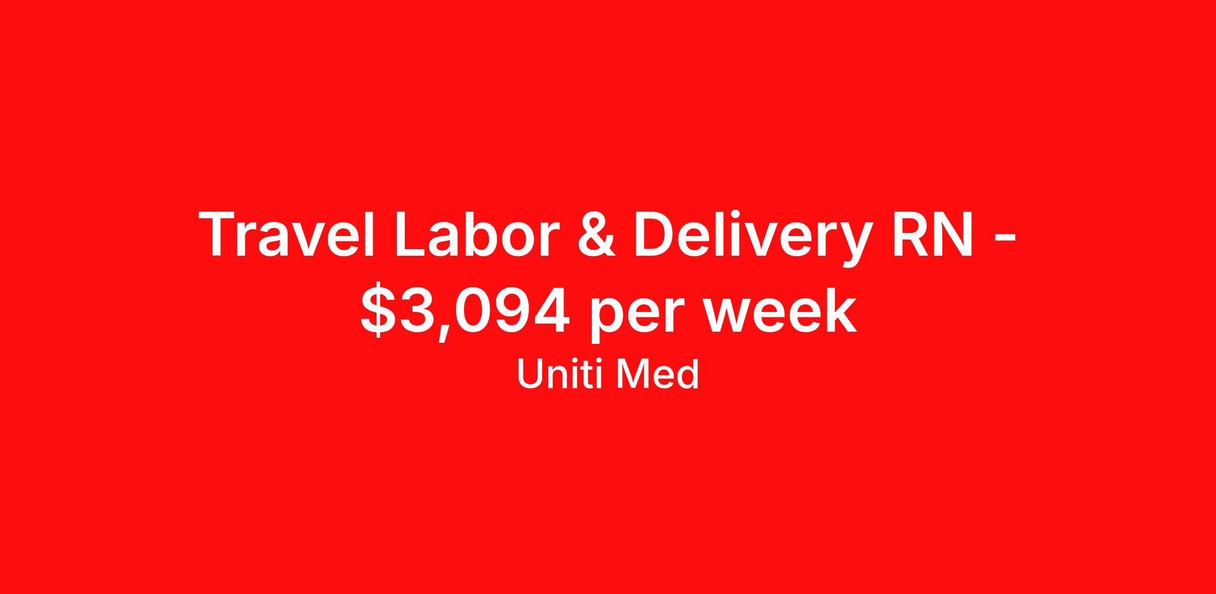 Uniti Med is seeking a travel nurse RN Labor and Delivery for a travel nursing job in Lamar, Colorado. Job Description & Requirements Specialty: Labor and Delivery Discipline: RN Start Date: 04/06/2026 Duration: 13 weeks 36 hours per week Shift: 12 hours, nights Employment Type: Travel Benefits: Day 1 Insurance Cigna medical, MetLife dental and vision insurance License reimbursement for new licenses needed for each assignment Discounts with hotels and rental cars A dedicated recruiter and support team that will help you every step of the way to sure you start on time and have an exceptional experience Referral bonus up to $700 About the Company: Finding the right role is about more than just matching skills to a job—it’s about aligning with your goals, values, and the way you want to work. As an award-winning talent partner, we support healthcare professionals through every step of that process, offering meaningful opportunities, clear guidance, and long-term partnership. From our first conversation to your first day on the job (and beyond!), we’re here to help you move forward with confidence. UnitiMed Job ID 786167. Pay package is based on 12 hour shifts and 36 hours per week (subject to confirmation) with tax-free stipend amount to be determined. Posted job title: Registered Nurse (RN) About Uniti Med Uniti Med meticulously matches your talents to our open needs to ensure the ultimate travel experience. Tell us where you want to go and let our experienced staff lead the way! Benefits Referral bonus Benefits start day 1 Employee assistance programs