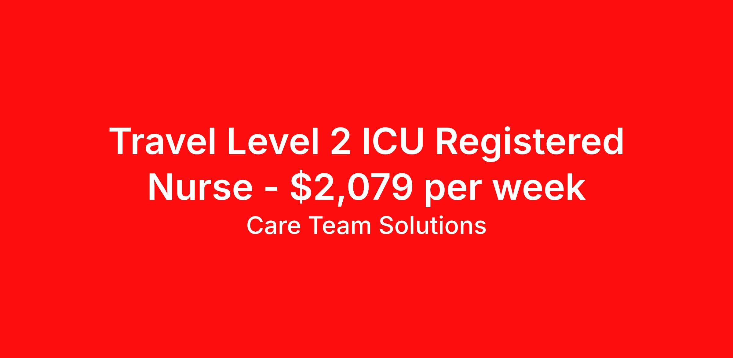 Care Team Solutions is seeking a travel nurse RN ICU - Intensive Care Unit for a travel nursing job in Geneva, New York. Job Description & Requirements Specialty: ICU - Intensive Care Unit Discipline: RN Start Date: 04/13/2026 Duration: 13 weeks 36 hours per week Shift: 12 hours Employment Type: Travel Registered Nurse must have 2 years of recent experience in particular specialty Details: Must Have 2 Years of recent Intensive Care Unit experience. Specialty: Intensive Care Unit Discipline: Registered Nurse Start Date: 2026-04-13 Duration: 14 Weeks Shift: 12 Hours Day shift Hours Per Week: 36 Hours Employment Type: Contract Gross Weekly Pay: $2079.11 Six things that won’t happen if you apply to this job: You won’t have to guess what the downsides are. We’ll tell you up front. You won’t show up on day 1 and find out this is not what you signed up for. We won't leave your phone call ringing when it's inconvenient. Business hours for you are business hours for us. You won’t get shuffled to some customer service rep when a problem pops up. If we screw up something in securing your placement, we'll own it. That means it's on us to make it right. You won’t figure out your credentials alone. Our credentialing experts will walk you through it step by step. We've talked to thousands of travel nurses like you. We know you want good pay. You want to choose when you work. But the one thing nurse after nurse has said they want and don't have is someone in their corner. There's a lot in this business that’s messed up. We’re trying to be the people that fix it. You and every nurse with the guts to travel deserve it. We've worked hard for you to enjoy some one-of-a-kind benefits you'll not likely find anywhere else, because they benefit you more than they benefit us: Our early pay program Student loan reimbursement Free well-being tele-visits with a psychologist Care Team Solutions Job ID 586510. Pay package is based on 12 hour shifts and 36 hours per week (subject to confirmation) with tax-free stipend amount to be determined. Posted job title: GGH Level 2 RN ICU - FT About Care Team Solutions Two brothers who give an enormous damn. We're Justin and Kyle. Neither of us are nurses. It doesn’t take a nurse to see that the way travel nurses are treated sucks. Nursing is already hard enough. Travel nursing takes serious guts. You get the toughest assignments in places you’ve never been. Which can be fun, but it’s also stressful. You’re in your element but outside of your hometown. You can be a stranger on the team. If anyone deserves someone in their corner, it’s you. But that’s not how most agencies operate. Which is why travel nurses hate working with them. We got into this business because we saw bucket-loads of nurses moving through the "churn and burn" travel machinery. We absolutely hate that. You'll do your best work when you have the placements you want and feel fully supported in your work. We pay our people well because we want them to treat you well. Our recruiters are amazing (we picked each of them ourselves), but if you've got a problem too big for them, they can come straight to us. We work like ten feet away. The "Churners and Burners" promise you the same benefits. They might as well copy/paste them from each other. We have them too: 401k, holiday pay, healthcare, dental, travel reimbursement, etc But we've worked hard for you to enjoy some one-of-a-kind benefits you'll not likely find anywhere else, because they benefit you more than they benefit us: Our early pay program Student loan reimbursement Free well-being tele-visits with a psychologist Benefits Weekly pay Holiday Pay Guaranteed Hours 401k retirement plan Wellness and fitness programs Referral bonus Medical benefits Dental benefits Vision benefits School loan reimbursement