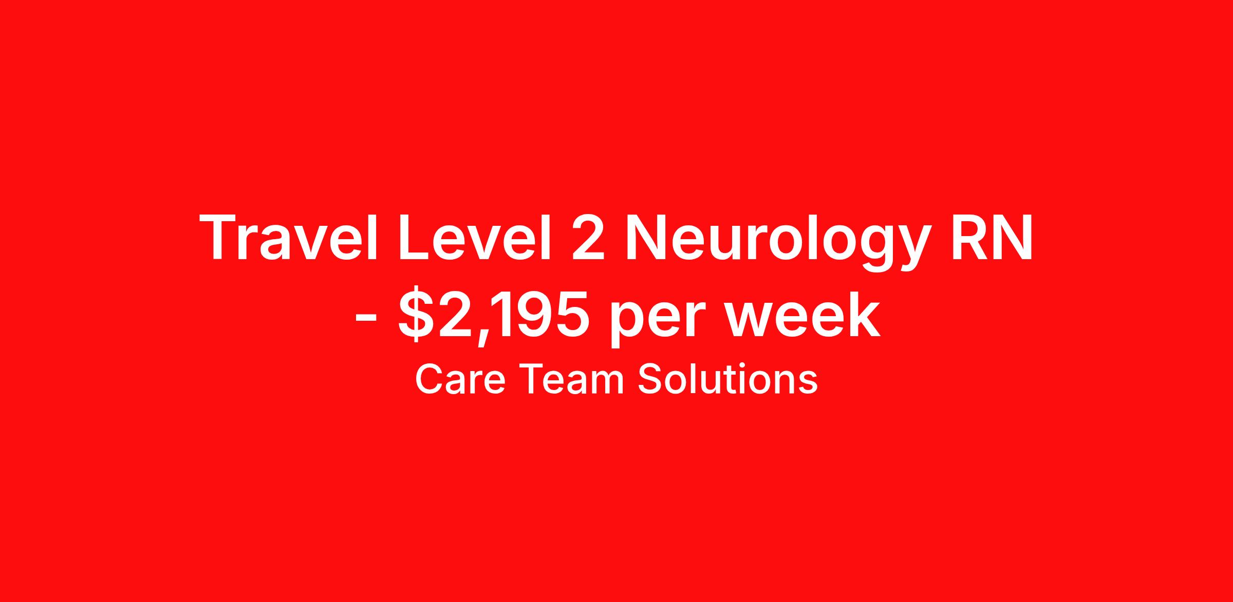 Care Team Solutions is seeking a travel nurse RN Neurology for a travel nursing job in Rochester, New York. Job Description & Requirements Specialty: Neurology Discipline: RN Start Date: 04/13/2026 Duration: 13 weeks 36 hours per week Shift: 12 hours Employment Type: Travel Registered Nurse must have 2 years of recent experience in particular specialty Details: Must Have 2 Years of recent Neurology experience. Specialty: Neurology Discipline: Registered Nurse Start Date: 2026-04-13 Duration: 13 Weeks Shift: 12 Hours Day shift Hours Per Week: 36 Hours Employment Type: Contract Gross Weekly Pay: $2194.61 Six things that won’t happen if you apply to this job: You won’t have to guess what the downsides are. We’ll tell you up front. You won’t show up on day 1 and find out this is not what you signed up for. We won't leave your phone call ringing when it's inconvenient. Business hours for you are business hours for us. You won’t get shuffled to some customer service rep when a problem pops up. If we screw up something in securing your placement, we'll own it. That means it's on us to make it right. You won’t figure out your credentials alone. Our credentialing experts will walk you through it step by step. We've talked to thousands of travel nurses like you. We know you want good pay. You want to choose when you work. But the one thing nurse after nurse has said they want and don't have is someone in their corner. There's a lot in this business that’s messed up. We’re trying to be the people that fix it. You and every nurse with the guts to travel deserve it. We've worked hard for you to enjoy some one-of-a-kind benefits you'll not likely find anywhere else, because they benefit you more than they benefit us: Our early pay program Student loan reimbursement Free well-being tele-visits with a psychologist Care Team Solutions Job ID 587251. Pay package is based on 12 hour shifts and 36 hours per week (subject to confirmation) with tax-free stipend amount to be determined. Posted job title: SMH Level 2 RN 516 Neurology About Care Team Solutions Two brothers who give an enormous damn. We're Justin and Kyle. Neither of us are nurses. It doesn’t take a nurse to see that the way travel nurses are treated sucks. Nursing is already hard enough. Travel nursing takes serious guts. You get the toughest assignments in places you’ve never been. Which can be fun, but it’s also stressful. You’re in your element but outside of your hometown. You can be a stranger on the team. If anyone deserves someone in their corner, it’s you. But that’s not how most agencies operate. Which is why travel nurses hate working with them. We got into this business because we saw bucket-loads of nurses moving through the "churn and burn" travel machinery. We absolutely hate that. You'll do your best work when you have the placements you want and feel fully supported in your work. We pay our people well because we want them to treat you well. Our recruiters are amazing (we picked each of them ourselves), but if you've got a problem too big for them, they can come straight to us. We work like ten feet away. The "Churners and Burners" promise you the same benefits. They might as well copy/paste them from each other. We have them too: 401k, holiday pay, healthcare, dental, travel reimbursement, etc But we've worked hard for you to enjoy some one-of-a-kind benefits you'll not likely find anywhere else, because they benefit you more than they benefit us: Our early pay program Student loan reimbursement Free well-being tele-visits with a psychologist Benefits Weekly pay Holiday Pay Guaranteed Hours 401k retirement plan Wellness and fitness programs Referral bonus Medical benefits Dental benefits Vision benefits School loan reimbursement