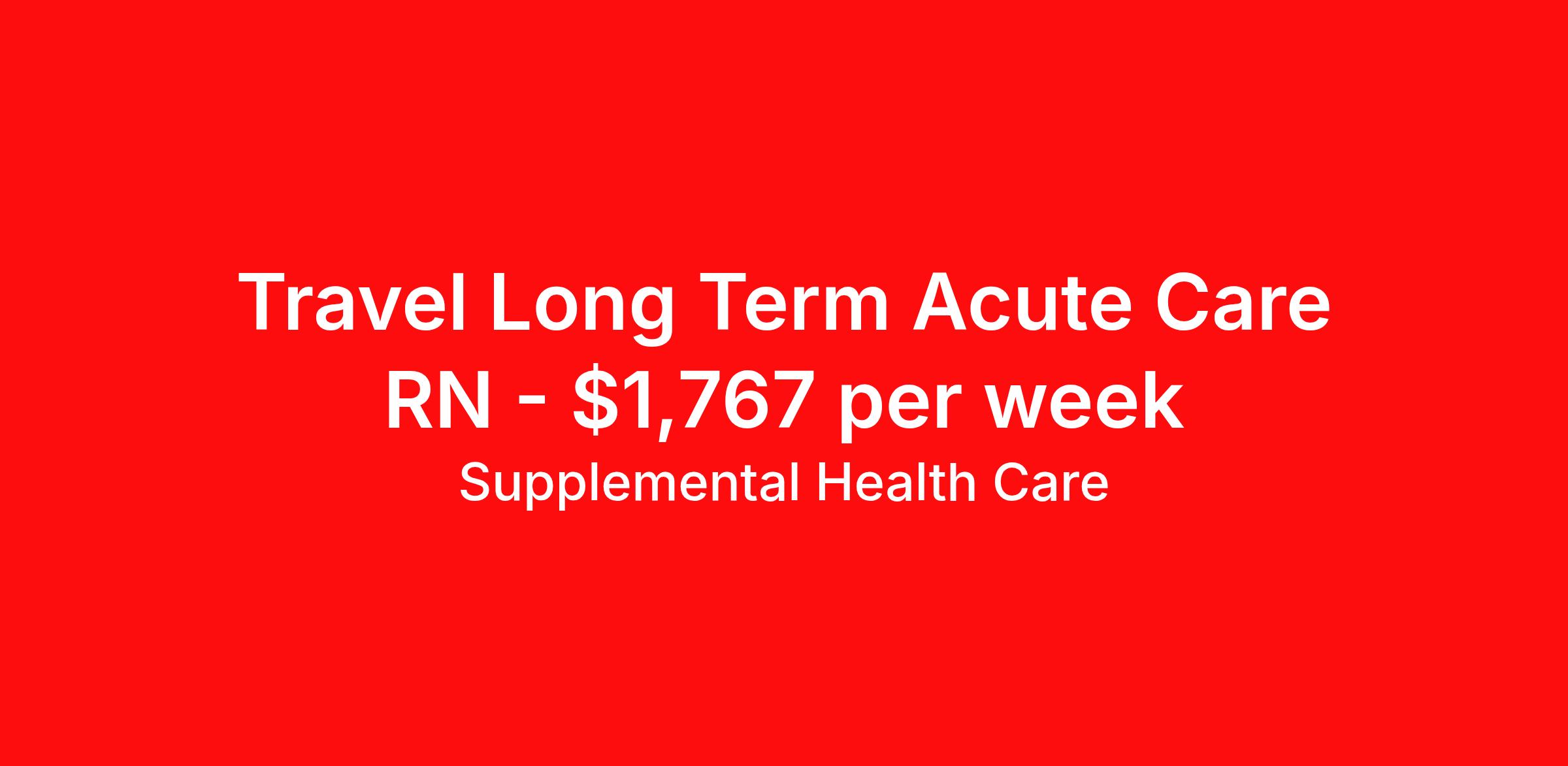 Supplemental Health Care is seeking a travel nurse RN Long Term Acute Care for a travel nursing job in Kansas City, Missouri. Job Description & Requirements Specialty: Long Term Acute Care Discipline: RN Start Date: ASAP Duration: 13 weeks 36 hours per week Shift: 12 hours, nights Employment Type: Travel Job Description: Supplemental Health Care is hiring Registered Nurses for contract assignments at a partnering Long Term Acute Care Facility in Kansas City, Missouri. Whether you’re looking to travel or stay local, we’re committed to helping LTAC RNs find the right fit with top hospitals across the country. With more than 40 years of experience in healthcare staffing, Supplemental Health Care offers reliable support, competitive pay, and great benefits every step of the way. Qualifications: Active Missouri RN License or Compact State Nursing License 2 years of recent clinical nursing experience Previous LTAC experience preferred American Heart Association BLS ACLS preferred LTAC RN Contract Details $1,602 - $1,767 per week* NOC shift available 6-week contract with possibility of extension RN will provide nursing care within their scope of practice and in accordance with the standards of the facility *Estimated weekly payment may include both taxable wages and tax-free reimbursements for meals, housing, and incidentals. Please speak with a recruiter for details. The average stay at an LTAC facility is 25 days and RNs working there often care for their patients from admission to discharge. We understand that you make important connections with your patients and offer the support you need while on assignment to provide the best care possible. Apply today to get started with this Registered Nurse contract opportunity, or talk to our team about the full range of RN opportunities available. What We Offer: Full medical, dental, vision, life, and even pet insurance! Round the clock support. No matter where you are or what time it is, Supplemental Health Care is standing by. SHC's Share the Care referral program is the most dynamic, profitable referral program in the industry. 401(k) Retirement Savings Program with a wide range of investment options. Discounted and free online access to CEU courses through Supplemental University. Supplemental Health Care is an Equal Opportunity Employer. All candidates, including veterans and those with disabilities, are encouraged to apply. SHC will consider for employment qualified applicants with criminal histories in a manner consistent with the requirements of applicable local, state, or federal law. To learn more, visit www.shccares.com/eeo Supplemental Health Care Job ID 1468192. Pay package is based on 12 hour shifts and 36 hours per week (subject to confirmation) with tax-free stipend amount to be determined. Posted job title: LTAC RN - Registered Nurse About Supplemental Health Care At Supplemental Health Care, a simple belief in the power of caring guides a unique commitment to world-class service in healthcare staffing. For 40 years, we’ve supported talented professionals pursuing their life calling in hospitals, schools, home health, corrections, behavioral health, and other settings. At SHC, we inspire vital connections and enrich lives and inspire better outcomes. As recipients of the Best in Staffing Awards for both Client and Talent, Supplemental Health Care is proud to be among only 2% of staffing companies singled out for the distinction based on the real feedback of our employees and the clients we serve. SHC has also earned The Joint Commission’s Gold Seal of Approval and is named among the Largest Health Care Staffing companies in the United States by Staffing Industry Analysts. We are also thrilled to recognize our very own SLP, Dr. Kelly Byrd as the American Staffing Association 2024 National Staffing Employee of the Year and Health Care Sector All-Star. We’re honored to connect Dr. Byrd to employment, share her incredible story, and support her family literacy nonprofit. For everyone that we serve, SHC is the place where caring hearts thrive. Benefits Referral bonus Benefits start day 1 401k retirement plan Continuing Education Discount program Health savings account