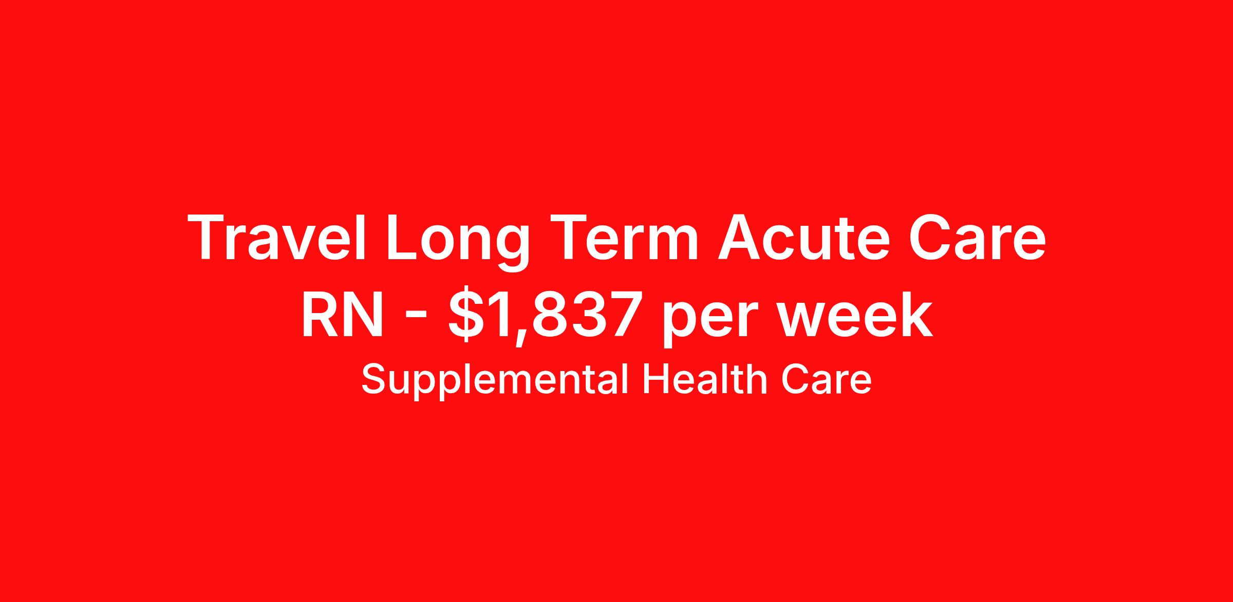 Supplemental Health Care is seeking a travel nurse RN Long Term Acute Care for a travel nursing job in Greensboro, North Carolina. Job Description & Requirements Specialty: Long Term Acute Care Discipline: RN Start Date: ASAP Duration: 13 weeks 36 hours per week Shift: 12 hours, nights Employment Type: Travel Job Description: Supplemental Health Care is hiring Registered Nurses for contract assignments at a partnering Long Term Acute Care Facility in Greensboro, North Carolina. Whether you’re looking to travel or stay local, we’re committed to helping LTAC RNs find the right fit with top hospitals across the country. With more than 40 years of experience in healthcare staffing, Supplemental Health Care offers reliable support, competitive pay, and great benefits every step of the way. Qualifications: Active North Carolina RN License or Compact State Nursing License 2 years of recent clinical nursing experience Previous LTAC experience preferred American Heart Association BLS ACLS preferred LTAC RN Contract Details $1,674 - $1,837 per week* NOC shift available 12-week contract with possibility of extension RN will provide nursing care within their scope of practice and in accordance with the standards of the facility *Estimated weekly payment may include both taxable wages and tax-free reimbursements for meals, housing, and incidentals. Please speak with a recruiter for details. The average stay at an LTAC facility is 25 days and RNs working there often care for their patients from admission to discharge. We understand that you make important connections with your patients and offer the support you need while on assignment to provide the best care possible. Apply today to get started with this Registered Nurse contract opportunity, or talk to our team about the full range of RN opportunities available. What We Offer: Full medical, dental, vision, life, and even pet insurance! Round the clock support. No matter where you are or what time it is, Supplemental Health Care is standing by. SHC's Share the Care referral program is the most dynamic, profitable referral program in the industry. 401(k) Retirement Savings Program with a wide range of investment options. Discounted and free online access to CEU courses through Supplemental University. Supplemental Health Care is an Equal Opportunity Employer. All candidates, including veterans and those with disabilities, are encouraged to apply. SHC will consider for employment qualified applicants with criminal histories in a manner consistent with the requirements of applicable local, state, or federal law. To learn more, visit www.shccares.com/eeo Supplemental Health Care Job ID 1463783. Pay package is based on 12 hour shifts and 36 hours per week (subject to confirmation) with tax-free stipend amount to be determined. Posted job title: LTAC RN - Registered Nurse About Supplemental Health Care At Supplemental Health Care, a simple belief in the power of caring guides a unique commitment to world-class service in healthcare staffing. For 40 years, we’ve supported talented professionals pursuing their life calling in hospitals, schools, home health, corrections, behavioral health, and other settings. At SHC, we inspire vital connections and enrich lives and inspire better outcomes. As recipients of the Best in Staffing Awards for both Client and Talent, Supplemental Health Care is proud to be among only 2% of staffing companies singled out for the distinction based on the real feedback of our employees and the clients we serve. SHC has also earned The Joint Commission’s Gold Seal of Approval and is named among the Largest Health Care Staffing companies in the United States by Staffing Industry Analysts. We are also thrilled to recognize our very own SLP, Dr. Kelly Byrd as the American Staffing Association 2024 National Staffing Employee of the Year and Health Care Sector All-Star. We’re honored to connect Dr. Byrd to employment, share her incredible story, and support her family literacy nonprofit. For everyone that we serve, SHC is the place where caring hearts thrive. Benefits Referral bonus Benefits start day 1 401k retirement plan Continuing Education Discount program Health savings account