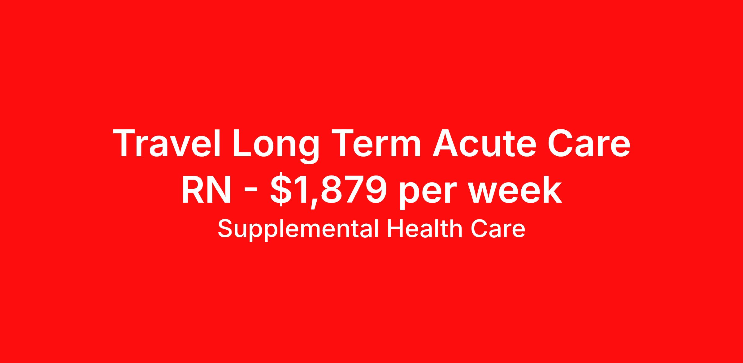 Supplemental Health Care is seeking a travel nurse RN Long Term Acute Care for a travel nursing job in Madison, Wisconsin. Job Description & Requirements Specialty: Long Term Acute Care Discipline: RN Start Date: ASAP Duration: 13 weeks 36 hours per week Shift: 12 hours, nights Employment Type: Travel Job Description: Supplemental Health Care is hiring Registered Nurses for contract assignments at a partnering Long Term Acute Care Facility in Madison, Wisconsin. Whether you’re looking to travel or stay local, we’re committed to helping LTAC RNs find the right fit with top hospitals across the country. With more than 40 years of experience in healthcare staffing, Supplemental Health Care offers reliable support, competitive pay, and great benefits every step of the way. Qualifications: Active Wisconsin RN License or Compact State Nursing License 2 years of recent clinical nursing experience Previous LTAC experience preferred American Heart Association BLS ACLS preferred LTAC RN Contract Details $1,710 - $1,879 per week* NOC shift available 13-week contract with possibility of extension RN will provide nursing care within their scope of practice and in accordance with the standards of the facility *Estimated weekly payment may include both taxable wages and tax-free reimbursements for meals, housing, and incidentals. Please speak with a recruiter for details. The average stay at an LTAC facility is 25 days and RNs working there often care for their patients from admission to discharge. We understand that you make important connections with your patients and offer the support you need while on assignment to provide the best care possible. Apply today to get started with this Registered Nurse contract opportunity, or talk to our team about the full range of RN opportunities available. What We Offer: Full medical, dental, vision, life, and even pet insurance! Round the clock support. No matter where you are or what time it is, Supplemental Health Care is standing by. SHC's Share the Care referral program is the most dynamic, profitable referral program in the industry. 401(k) Retirement Savings Program with a wide range of investment options. Discounted and free online access to CEU courses through Supplemental University. Supplemental Health Care is an Equal Opportunity Employer. All candidates, including veterans and those with disabilities, are encouraged to apply. SHC will consider for employment qualified applicants with criminal histories in a manner consistent with the requirements of applicable local, state, or federal law. To learn more, visit www.shccares.com/eeo Supplemental Health Care Job ID 1470520. Pay package is based on 12 hour shifts and 36 hours per week (subject to confirmation) with tax-free stipend amount to be determined. Posted job title: LTAC RN - Registered Nurse About Supplemental Health Care At Supplemental Health Care, a simple belief in the power of caring guides a unique commitment to world-class service in healthcare staffing. For 40 years, we’ve supported talented professionals pursuing their life calling in hospitals, schools, home health, corrections, behavioral health, and other settings. At SHC, we inspire vital connections and enrich lives and inspire better outcomes. As recipients of the Best in Staffing Awards for both Client and Talent, Supplemental Health Care is proud to be among only 2% of staffing companies singled out for the distinction based on the real feedback of our employees and the clients we serve. SHC has also earned The Joint Commission’s Gold Seal of Approval and is named among the Largest Health Care Staffing companies in the United States by Staffing Industry Analysts. We are also thrilled to recognize our very own SLP, Dr. Kelly Byrd as the American Staffing Association 2024 National Staffing Employee of the Year and Health Care Sector All-Star. We’re honored to connect Dr. Byrd to employment, share her incredible story, and support her family literacy nonprofit. For everyone that we serve, SHC is the place where caring hearts thrive. Benefits Referral bonus Benefits start day 1 401k retirement plan Continuing Education Discount program Health savings account