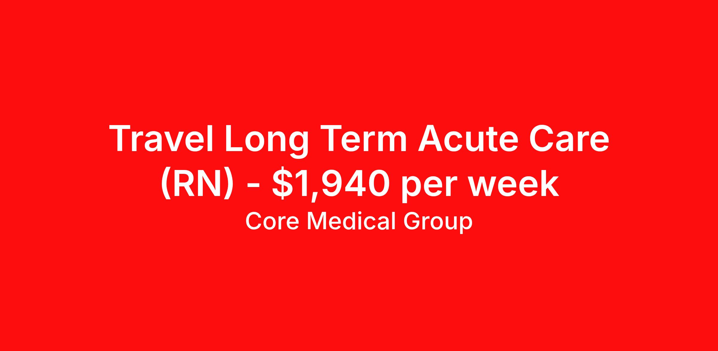 Core Medical Group is seeking a travel nurse RN Long Term Acute Care for a travel nursing job in Madison, Wisconsin. Job Description & Requirements Specialty: Long Term Acute Care Discipline: RN Start Date: ASAP Duration: 13 weeks 36 hours per week Shift: 12 hours Employment Type: Travel Client in WI seeking Registered Nurse: LTAC / Long-Term Acute Care for the following shift(s): Nights We are looking for a healthcare professional who is ready to provide exceptional patient care in this contract/travel role. Contract/travel assignments are typically 13 weeks, with potential to extend. Help us continue our mission to connect people, improve lives, and give back to the community by joining the CoreMedical Group team. When you work with CoreMedical Group, we put you first and treat you like family, supporting you every step of the way. CoreMedical Group is one of the largest healthcare staffing agencies in the country, with travel and contract positions located across the United States. Our recruiters will help you find the perfect job, whether it's across the country or across the street. In addition to dedicated, personalized support from your recruiter, when you work with CoreMedical Group you'll receive: Access to an extensive benefits package, including day 1 health, dental, and vision insurance, employer paid life insurance, a health reimbursement account, and more! Weekly paychecks with competitive pay packages Matching 401(k) benefits to help you save for retirement Licensure assistance and reimbursement to set you up for success on your contract Travel reimbursement and dedicated housing support while on assignment Referral cash bonuses when you connect us with other clinicians CoreMedical Group also offers you a free, all-inclusive vacation each year as our way of saying "thank you" for your hard work. Join other healthcare professionals on the annual Club CoreMed retreat and you'll see why our contract and travel professionals come back to us year after year! Your career is too valuable to tackle on your own. Let CoreMedical Group help you with your healthcare journey! *Estimate of weekly payments is intended for informational purposes and includes hourly wages, as well as reimbursements for meal & incidental expenses, and housing expenses incurred on behalf of the Company. Any benefits (medical/dental/vision) are in addition to the weekly pay. Please speak with your Recruiter for additional details. Estimated payments are subject to change until formal offer of assignment is made and accepted. Core Medical Group Job ID 1359019. Pay package is based on 12 hour shifts and 36 hours per week (subject to confirmation) with tax-free stipend amount to be determined. Posted job title: RN About Core Medical Group CoreMedical Group is one of the largest healthcare staffing agencies in the country. We have jobs nationwide in travel nursing, travel allied health, interim, locum tenens, and permanent placements! Join the staffing agency with Club CoreMed, the best perk in the industry - an all inclusive paid trip to a tropical resort! Benefits Weekly pay Holiday Pay Guaranteed Hours Continuing Education 401k retirement plan Pet insurance Company provided housing options Sick pay Wellness and fitness programs Mileage reimbursement Referral bonus Employee assistance programs Medical benefits Dental benefits Vision benefits Benefits start day 1 License and certification reimbursement Life insurance Discount program