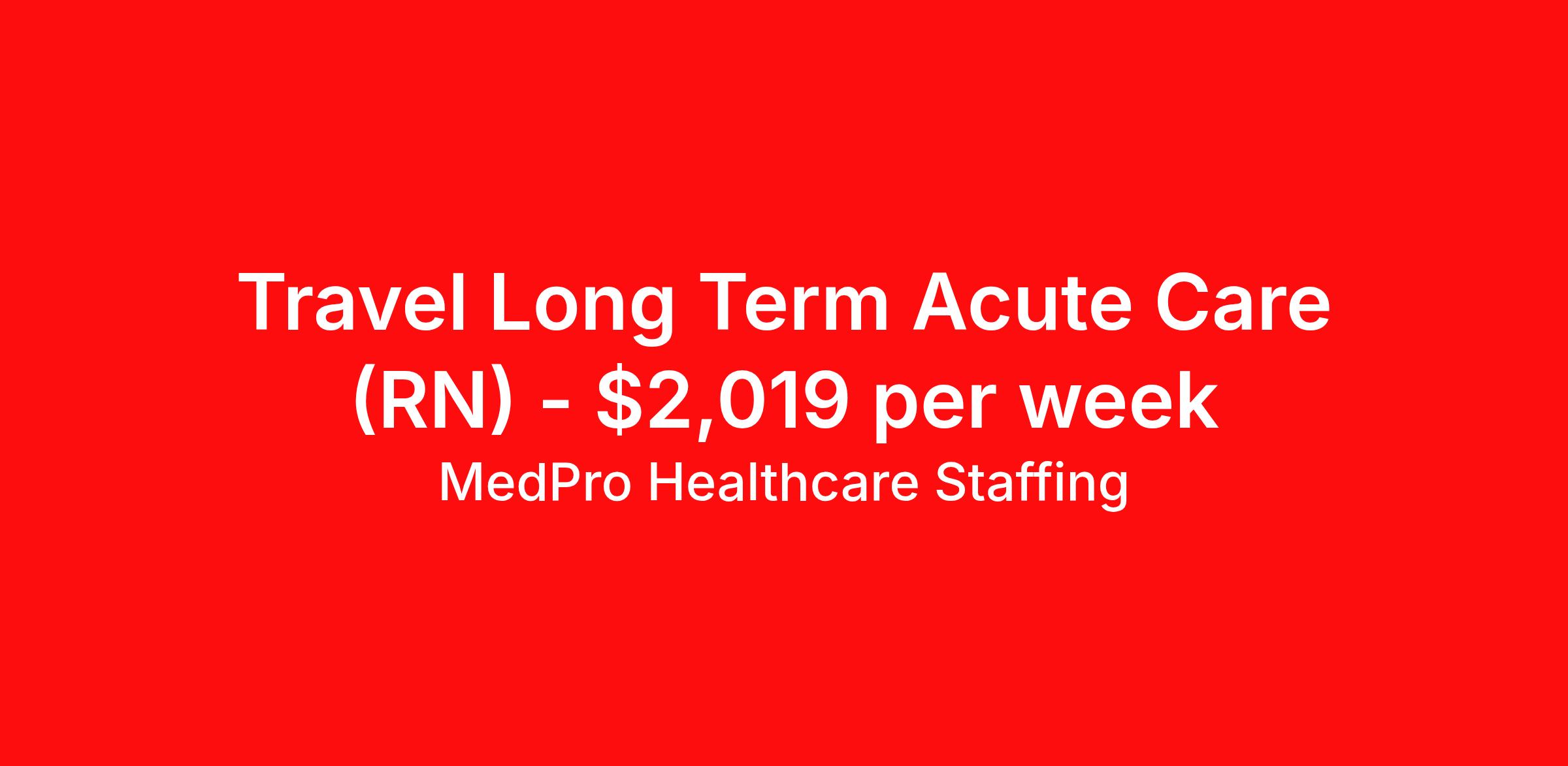 MedPro Healthcare Staffing is seeking a travel nurse RN Long Term Acute Care for a travel nursing job in Memphis, Tennessee. Job Description & Requirements Specialty: Long Term Acute Care Discipline: RN Start Date: 04/06/2026 Duration: 13 weeks 36 hours per week Shift: 12 hours, nights Employment Type: Travel MedPro Healthcare Staffing , a Joint Commission-certified staffing agency, is seeking a quality Long Term Acute Care registered nurse for a travel assignment with one of our top healthcare clients. Requirements Active RN License Degree from accredited nursing program BLS & ACLS Certifications Eighteen months of recent experience in an Long Term Acute Care setting Experience with Vents, Trachs, Drips, EG Tubes and able to read Tele-strips Other requirements to be determined by our client facility Benefits Weekly pay and direct deposit Full coverage of all credentialing fees Private housing or housing allowance Group Health insurance for you and your family Company-paid life and disability insurance Travel reimbursement 401(k) matching Unlimited Referral Bonuses up to $1,000 Duties Responsibilities As part of the LTAC unit, Long Term Acute Care Nurses (RN) are responsible for caring for patients who require extended medical care. Provide care for 5-6 patients. Adjust and perform in fast paced environment Keep up with many admissions and discharges Be able to monitor and administer medications (orally, subcutaneously, and through an IV) Educate patients and family on surgical processes and how to manage their illness/injury Monitor and adjust specialized equipment used on patients, and record and interpret electronic displays Interpret and understand telemetry readings, notifying appropriate medical team members of any irregularities Perform the duties required of a registered nurse at all times Care for patients with pulmonary HTN, respiratory failure, COPD, CHF, and A-Fib Use computer equipment to monitor cardiac and other vital information Start IV’s, draw blood, see the patient from start to finish About Agency MedPro Healthcare Staffing is a Joint Commission certified provider of contract staffing services. Since 1983, we have placed nursing and allied travelers in top healthcare facilities nationwide. Join us today for your very own MedPro Experience®. If qualified and interested, please call for immediate consideration. MedPro Staffing is an Equal Opportunity Employer. All applicants will be considered for employment without attention to race, color, religion, national origin, age, sex, disability, marital status or veteran status. Key Words: Long Term Acute Care Nurse, RN-LTAC, Long Term Acute Care Nursing positions, Travel Nurse, Contract Nurse, Agency Nurse, LTAC, LTAC Contracts, Registered Nurse, LTAC Nurse, RN, Travel Nursing *Weekly payment estimates are intended for informational purposes only and include a gross estimate of hourly wages and reimbursements for meal, incidental, and housing expenses. Your recruiter will confirm your eligibility and provide additional details. MedPro Job ID a0Fcx00000EOZsbEAH. Pay package is based on 12 hour shifts and 36 hours per week (subject to confirmation) with tax-free stipend amount to be determined. Posted job title: Long Term Acute Care Registered Nurse Nursing: LTAC - Long Term Acute Care. About MedPro Healthcare Staffing At MedPro Healthcare Staffing , we believe no one cares more for caregivers than we do. Our mission is simple: you focus on your patients, and we’ll take care of the rest. As a Joint Commission-certified leader in temporary and contract healthcare staffing since 1983, MedPro has proudly connected nursing and allied travelers with top healthcare facilities across the nation. With thousands of job opportunities available nationwide, we make it easy to find assignments that align with your goals and lifestyle. Our on-staff clinical support team—alongside a compassionate group of experienced recruiters—provides hands-on guidance every step of the way. From Day 1 medical benefits and a 401(k) plan to personalized career support, we’re committed to ensuring every professional we serve feels valued, cared for, and empowered to succeed. Guided by a CEO who is a Registered Nurse, MedPro is built on a foundation of clinical insight and genuine compassion for the caregiving community. Through The MedPro Experience® , we deliver travel assignments that are rewarding, memorable, and designed to help you DREAM big, EXPLORE often, and ACHIEVE greatness. Benefits Day 1 medical, dental, and vision benefits for you and your family Weekly pay and direct deposit Unlimited Referral Bonuses starting at $500 On Staff Clinical Support Team Access to nationwide travel assignments MPX Mobile app -24/7 real-time access to jobs, credentials, assignment details, and more Full coverage of all credentialing fees Private housing or housing allowance Tax Free Per Diems, Housing Stipends and Travel Reimbursements Company-paid life and disability insurance Travel reimbursement 401(k) matching Benefits Weekly pay Referral bonus Employee assistance programs