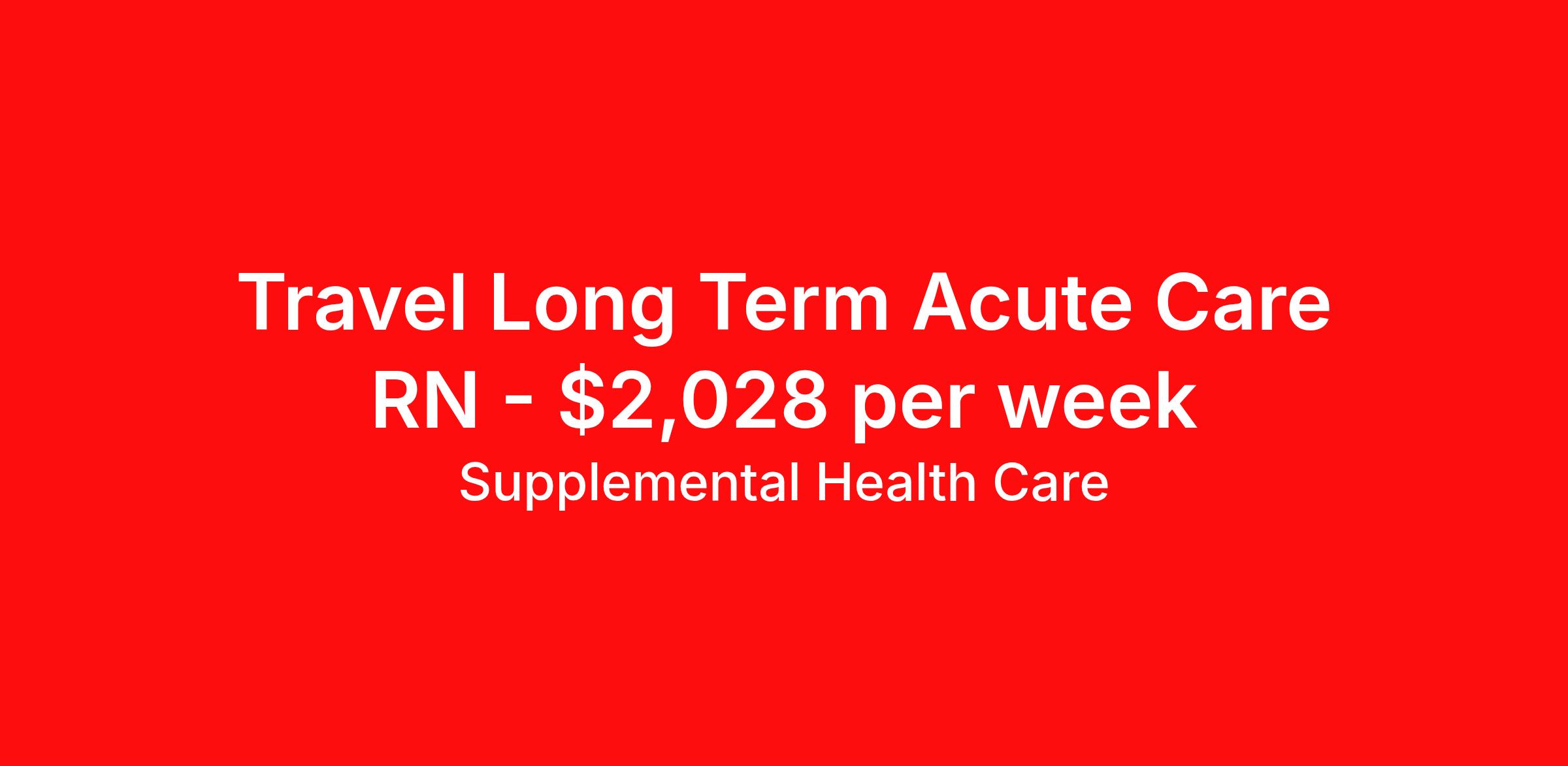 Supplemental Health Care is seeking a travel nurse RN Long Term Acute Care for a travel nursing job in Willingboro, New Jersey. Job Description & Requirements Specialty: Long Term Acute Care Discipline: RN Start Date: ASAP Duration: 13 weeks 36 hours per week Shift: 12 hours, nights Employment Type: Travel Job Description: Supplemental Health Care is hiring Registered Nurses for contract assignments at a partnering Long Term Acute Care Facility in Willingboro, New Jersey. Whether you’re looking to travel or stay local, we’re committed to helping LTAC RNs find the right fit with top hospitals across the country. With more than 40 years of experience in healthcare staffing, Supplemental Health Care offers reliable support, competitive pay, and great benefits every step of the way. Qualifications: Active New Jersey RN License or Compact State Nursing License 2 years of recent clinical nursing experience Previous LTAC experience preferred American Heart Association BLS ACLS preferred LTAC RN Contract Details $1,836 - $2,028 per week* NOC shift available 13-week contract with possibility of extension RN will provide nursing care within their scope of practice and in accordance with the standards of the facility *Estimated weekly payment may include both taxable wages and tax-free reimbursements for meals, housing, and incidentals. Please speak with a recruiter for details. The average stay at an LTAC facility is 25 days and RNs working there often care for their patients from admission to discharge. We understand that you make important connections with your patients and offer the support you need while on assignment to provide the best care possible. Apply today to get started with this Registered Nurse contract opportunity, or talk to our team about the full range of RN opportunities available. What We Offer: Full medical, dental, vision, life, and even pet insurance! Round the clock support. No matter where you are or what time it is, Supplemental Health Care is standing by. SHC's Share the Care referral program is the most dynamic, profitable referral program in the industry. 401(k) Retirement Savings Program with a wide range of investment options. Discounted and free online access to CEU courses through Supplemental University. Supplemental Health Care is an Equal Opportunity Employer. All candidates, including veterans and those with disabilities, are encouraged to apply. SHC will consider for employment qualified applicants with criminal histories in a manner consistent with the requirements of applicable local, state, or federal law. To learn more, visit www.shccares.com/eeo Supplemental Health Care Job ID 1467272. Pay package is based on 12 hour shifts and 36 hours per week (subject to confirmation) with tax-free stipend amount to be determined. Posted job title: LTAC RN - Registered Nurse About Supplemental Health Care At Supplemental Health Care, a simple belief in the power of caring guides a unique commitment to world-class service in healthcare staffing. For 40 years, we’ve supported talented professionals pursuing their life calling in hospitals, schools, home health, corrections, behavioral health, and other settings. At SHC, we inspire vital connections and enrich lives and inspire better outcomes. As recipients of the Best in Staffing Awards for both Client and Talent, Supplemental Health Care is proud to be among only 2% of staffing companies singled out for the distinction based on the real feedback of our employees and the clients we serve. SHC has also earned The Joint Commission’s Gold Seal of Approval and is named among the Largest Health Care Staffing companies in the United States by Staffing Industry Analysts. We are also thrilled to recognize our very own SLP, Dr. Kelly Byrd as the American Staffing Association 2024 National Staffing Employee of the Year and Health Care Sector All-Star. We’re honored to connect Dr. Byrd to employment, share her incredible story, and support her family literacy nonprofit. For everyone that we serve, SHC is the place where caring hearts thrive. Benefits Referral bonus Benefits start day 1 401k retirement plan Continuing Education Discount program Health savings account
