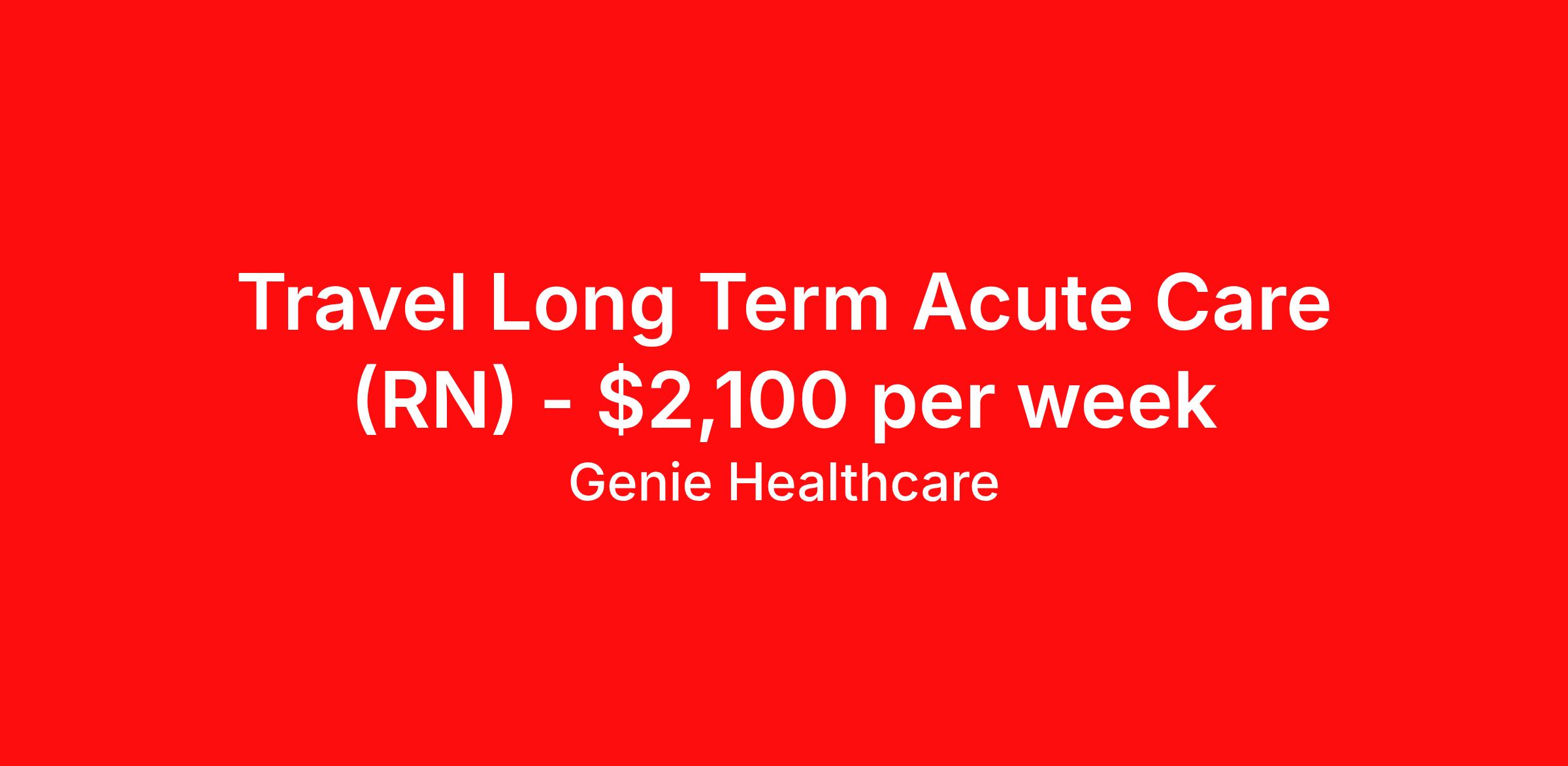 Genie Healthcare is seeking a travel nurse RN Long Term Acute Care for a travel nursing job in Saginaw, Michigan. Job Description & Requirements Specialty: Long Term Acute Care Discipline: RN Start Date: ASAP Duration: 13 weeks 36 hours per week Shift: 12 hours, nights Employment Type: Travel Genie Healthcare is looking for a RN to work in Long Term Acute Care (LTAC) for a 13 weeks travel assignment located in , MI for the Shift (3x12 nights, 19:00:00-07:00:00, 12.00-3). Pay and benefits packages are estimated based on client bill rate at time the job was posted. These rates are subject to change. Exact pay and benefits vary based on several things, including, but not limited to, guaranteed hours, client changes in bill rate, experience, etc. Benefits: Medical Insurance, Dental Insurance, Vision Insurance, 401(k) with company matching (50% up to 6% of what you contribute) Genie Healthcare Job ID 17921454. Pay package is based on 12 hour shifts and 36.0 hours per week (subject to confirmation) with tax-free stipend amount to be determined. Posted job title: RN:Long Term Acute Care (LTAC),19:00:00-07:00:00 About Genie Healthcare Genie Healthcare is one of the fastest growing Nurse Travel Agencies in the USA. Genie serves hundreds of facilities and has over 4000 current travel RN contracts open at any given time. Genie provides travel RN’s flexibility, support, top pay scale, housing and the 1 rated, multi-state health insurance coverage. Genie Healthcare carries with it a commitment to providing a comprehensive level of service and quality care. Growing from a small team of eager recruiters to a company with satisfied clients in nearly every corner of the nation, delivering excellence in patient and customer care is the key to Genie’s success. The management team has 20 years of experience in workforce solutions and staffing in medical and non-medical fields, roles ranging from Clerical job to Cardiologist to software developer to CEO.