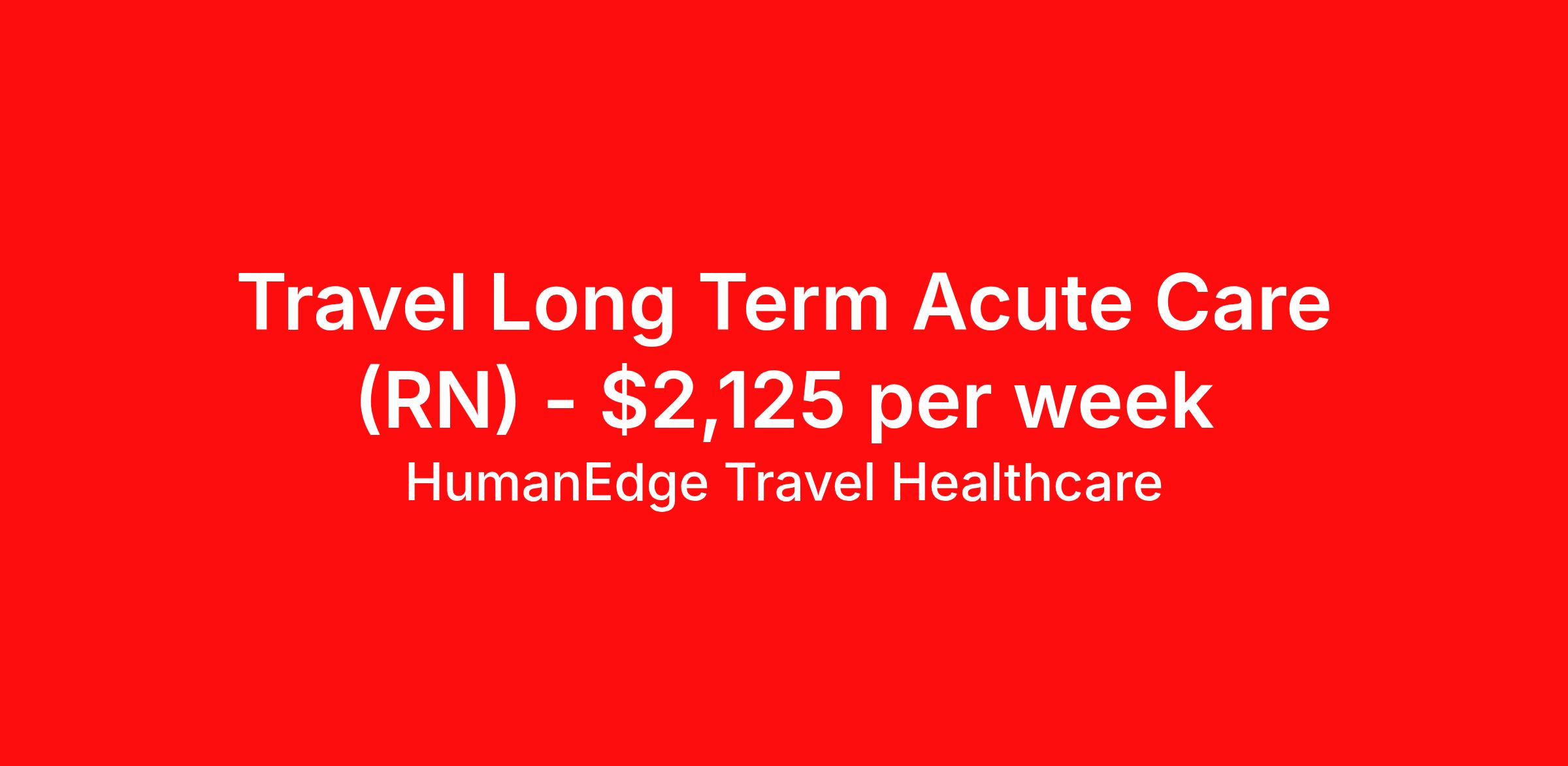 HumanEdge Travel Healthcare is seeking a travel nurse RN Long Term Acute Care for a travel nursing job in Bridgeton, Missouri. Job Description & Requirements Specialty: Long Term Acute Care Discipline: RN Duration: 13 weeks 36 hours per week Shift: 12 hours, nights Employment Type: Travel HumanEdge Travel Healthcare Job ID 17-796724. Pay package is based on 12 hour shifts and 36 hours per week (subject to confirmation) with tax-free stipend amount to be determined. About HumanEdge Travel Healthcare HumanEdge Allied Health is a full-service nursing and allied health staffing agency that has lived and breathed staffing for more than 30 years, making us one of the most trusted in the industry!
