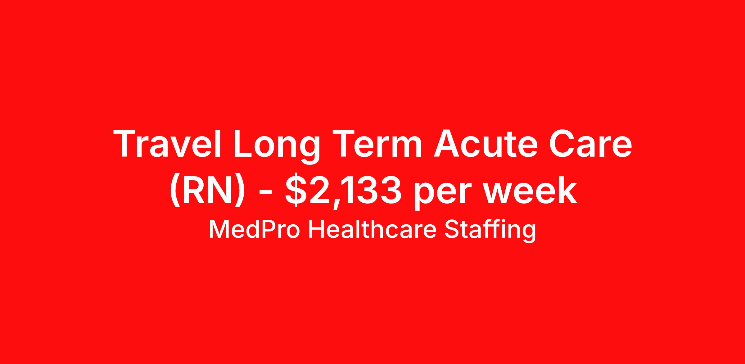 MedPro Healthcare Staffing is seeking a travel nurse RN Long Term Acute Care for a travel nursing job in Oklahoma City, Oklahoma. Job Description & Requirements Specialty: Long Term Acute Care Discipline: RN Start Date: 04/06/2026 Duration: 13 weeks 36 hours per week Shift: 12 hours, nights Employment Type: Travel MedPro Healthcare Staffing , a Joint Commission-certified staffing agency, is seeking a quality Long Term Acute Care registered nurse for a travel assignment with one of our top healthcare clients. Requirements Active RN License Degree from accredited nursing program BLS & ACLS Certifications Eighteen months of recent experience in an Long Term Acute Care setting Experience with Vents, Trachs, Drips, EG Tubes and able to read Tele-strips Other requirements to be determined by our client facility Benefits Weekly pay and direct deposit Full coverage of all credentialing fees Private housing or housing allowance Group Health insurance for you and your family Company-paid life and disability insurance Travel reimbursement 401(k) matching Unlimited Referral Bonuses up to $1,000 Duties Responsibilities As part of the LTAC unit, Long Term Acute Care Nurses (RN) are responsible for caring for patients who require extended medical care. Provide care for 5-6 patients. Adjust and perform in fast paced environment Keep up with many admissions and discharges Be able to monitor and administer medications (orally, subcutaneously, and through an IV) Educate patients and family on surgical processes and how to manage their illness/injury Monitor and adjust specialized equipment used on patients, and record and interpret electronic displays Interpret and understand telemetry readings, notifying appropriate medical team members of any irregularities Perform the duties required of a registered nurse at all times Care for patients with pulmonary HTN, respiratory failure, COPD, CHF, and A-Fib Use computer equipment to monitor cardiac and other vital information Start IV’s, draw blood, see the patient from start to finish About Agency MedPro Healthcare Staffing is a Joint Commission certified provider of contract staffing services. Since 1983, we have placed nursing and allied travelers in top healthcare facilities nationwide. Join us today for your very own MedPro Experience®. If qualified and interested, please call for immediate consideration. MedPro Staffing is an Equal Opportunity Employer. All applicants will be considered for employment without attention to race, color, religion, national origin, age, sex, disability, marital status or veteran status. Key Words: Long Term Acute Care Nurse, RN-LTAC, Long Term Acute Care Nursing positions, Travel Nurse, Contract Nurse, Agency Nurse, LTAC, LTAC Contracts, Registered Nurse, LTAC Nurse, RN, Travel Nursing *Weekly payment estimates are intended for informational purposes only and include a gross estimate of hourly wages and reimbursements for meal, incidental, and housing expenses. Your recruiter will confirm your eligibility and provide additional details. MedPro Job ID a0Fcx00000HVM2TEAX. Pay package is based on 12 hour shifts and 36 hours per week (subject to confirmation) with tax-free stipend amount to be determined. Posted job title: Long Term Acute Care Registered Nurse Nursing: LTAC - Long Term Acute Care. About MedPro Healthcare Staffing At MedPro Healthcare Staffing , we believe no one cares more for caregivers than we do. Our mission is simple: you focus on your patients, and we’ll take care of the rest. As a Joint Commission-certified leader in temporary and contract healthcare staffing since 1983, MedPro has proudly connected nursing and allied travelers with top healthcare facilities across the nation. With thousands of job opportunities available nationwide, we make it easy to find assignments that align with your goals and lifestyle. Our on-staff clinical support team—alongside a compassionate group of experienced recruiters—provides hands-on guidance every step of the way. From Day 1 medical benefits and a 401(k) plan to personalized career support, we’re committed to ensuring every professional we serve feels valued, cared for, and empowered to succeed. Guided by a CEO who is a Registered Nurse, MedPro is built on a foundation of clinical insight and genuine compassion for the caregiving community. Through The MedPro Experience® , we deliver travel assignments that are rewarding, memorable, and designed to help you DREAM big, EXPLORE often, and ACHIEVE greatness. Benefits Day 1 medical, dental, and vision benefits for you and your family Weekly pay and direct deposit Unlimited Referral Bonuses starting at $500 On Staff Clinical Support Team Access to nationwide travel assignments MPX Mobile app -24/7 real-time access to jobs, credentials, assignment details, and more Full coverage of all credentialing fees Private housing or housing allowance Tax Free Per Diems, Housing Stipends and Travel Reimbursements Company-paid life and disability insurance Travel reimbursement 401(k) matching Benefits Weekly pay Referral bonus Employee assistance programs