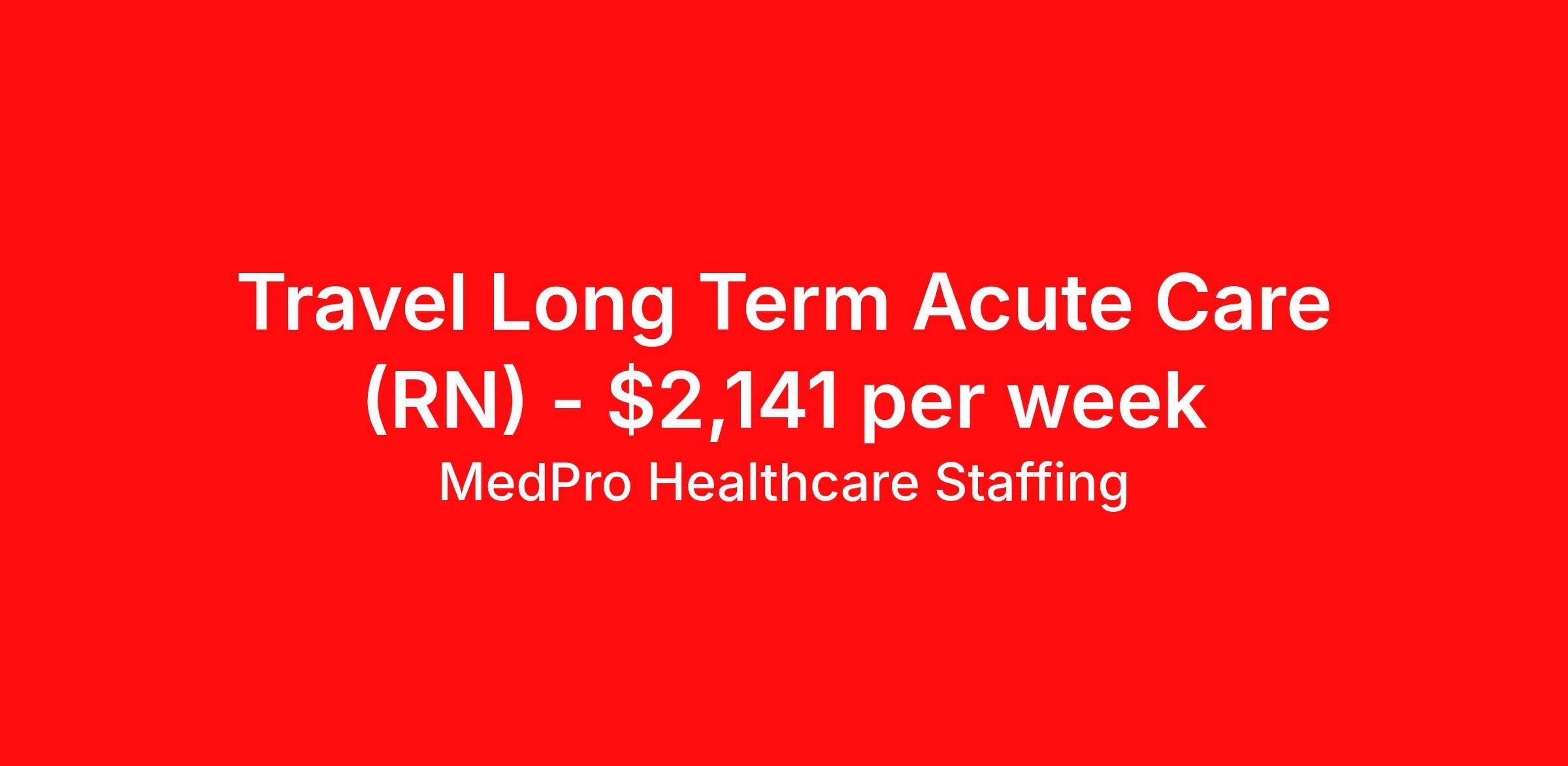 MedPro Healthcare Staffing is seeking a travel nurse RN Long Term Acute Care for a travel nursing job in West Allis, Wisconsin. Job Description & Requirements Specialty: Long Term Acute Care Discipline: RN Start Date: ASAP Duration: 13 weeks 36 hours per week Shift: 12 hours, nights Employment Type: Travel MedPro Healthcare Staffing , a Joint Commission-certified staffing agency, is seeking a quality Long Term Acute Care registered nurse for a travel assignment with one of our top healthcare clients. Requirements Active RN License Degree from accredited nursing program BLS & ACLS Certifications Eighteen months of recent experience in an Long Term Acute Care setting Experience with Vents, Trachs, Drips, EG Tubes and able to read Tele-strips Other requirements to be determined by our client facility Benefits Weekly pay and direct deposit Full coverage of all credentialing fees Private housing or housing allowance Group Health insurance for you and your family Company-paid life and disability insurance Travel reimbursement 401(k) matching Unlimited Referral Bonuses up to $1,000 Duties Responsibilities As part of the LTAC unit, Long Term Acute Care Nurses (RN) are responsible for caring for patients who require extended medical care. Provide care for 5-6 patients. Adjust and perform in fast paced environment Keep up with many admissions and discharges Be able to monitor and administer medications (orally, subcutaneously, and through an IV) Educate patients and family on surgical processes and how to manage their illness/injury Monitor and adjust specialized equipment used on patients, and record and interpret electronic displays Interpret and understand telemetry readings, notifying appropriate medical team members of any irregularities Perform the duties required of a registered nurse at all times Care for patients with pulmonary HTN, respiratory failure, COPD, CHF, and A-Fib Use computer equipment to monitor cardiac and other vital information Start IV’s, draw blood, see the patient from start to finish About Agency MedPro Healthcare Staffing is a Joint Commission certified provider of contract staffing services. Since 1983, we have placed nursing and allied travelers in top healthcare facilities nationwide. Join us today for your very own MedPro Experience®. If qualified and interested, please call for immediate consideration. MedPro Staffing is an Equal Opportunity Employer. All applicants will be considered for employment without attention to race, color, religion, national origin, age, sex, disability, marital status or veteran status. Key Words: Long Term Acute Care Nurse, RN-LTAC, Long Term Acute Care Nursing positions, Travel Nurse, Contract Nurse, Agency Nurse, LTAC, LTAC Contracts, Registered Nurse, LTAC Nurse, RN, Travel Nursing *Weekly payment estimates are intended for informational purposes only and include a gross estimate of hourly wages and reimbursements for meal, incidental, and housing expenses. Your recruiter will confirm your eligibility and provide additional details. MedPro Job ID a0Fcx000008vsblEAA. Pay package is based on 12 hour shifts and 36 hours per week (subject to confirmation) with tax-free stipend amount to be determined. Posted job title: Long Term Acute Care Registered Nurse Nursing: LTAC - Long Term Acute Care. About MedPro Healthcare Staffing At MedPro Healthcare Staffing , we believe no one cares more for caregivers than we do. Our mission is simple: you focus on your patients, and we’ll take care of the rest. As a Joint Commission-certified leader in temporary and contract healthcare staffing since 1983, MedPro has proudly connected nursing and allied travelers with top healthcare facilities across the nation. With thousands of job opportunities available nationwide, we make it easy to find assignments that align with your goals and lifestyle. Our on-staff clinical support team—alongside a compassionate group of experienced recruiters—provides hands-on guidance every step of the way. From Day 1 medical benefits and a 401(k) plan to personalized career support, we’re committed to ensuring every professional we serve feels valued, cared for, and empowered to succeed. Guided by a CEO who is a Registered Nurse, MedPro is built on a foundation of clinical insight and genuine compassion for the caregiving community. Through The MedPro Experience® , we deliver travel assignments that are rewarding, memorable, and designed to help you DREAM big, EXPLORE often, and ACHIEVE greatness. Benefits Day 1 medical, dental, and vision benefits for you and your family Weekly pay and direct deposit Unlimited Referral Bonuses starting at $500 On Staff Clinical Support Team Access to nationwide travel assignments MPX Mobile app -24/7 real-time access to jobs, credentials, assignment details, and more Full coverage of all credentialing fees Private housing or housing allowance Tax Free Per Diems, Housing Stipends and Travel Reimbursements Company-paid life and disability insurance Travel reimbursement 401(k) matching Benefits Weekly pay Referral bonus Employee assistance programs