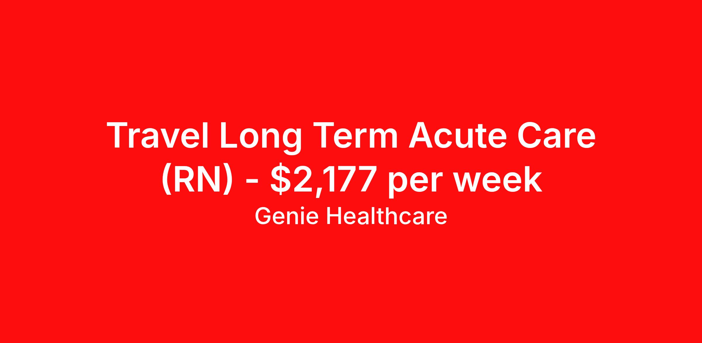 Genie Healthcare is seeking a travel nurse RN Long Term Acute Care for a travel nursing job in Madison, Wisconsin. Job Description & Requirements Specialty: Long Term Acute Care Discipline: RN Start Date: ASAP Duration: 13 weeks 36 hours per week Shift: 12 hours, nights Employment Type: Travel Genie Healthcare is looking for a RN to work in Long Term Acute Care (LTAC) for a 13 weeks travel assignment located in Select Specialty Hospital - Madison, WI for the Shift (3x12 nights, 19:00:00-07:00:00, 12.00-3). Pay and benefits packages are estimated based on client bill rate at time the job was posted. These rates are subject to change. Exact pay and benefits vary based on several things, including, but not limited to, guaranteed hours, client changes in bill rate, experience, etc. Benefits: Medical Insurance, Dental Insurance, Vision Insurance, 401(k) with company matching (50% up to 6% of what you contribute) Genie Healthcare Job ID 17965286. Pay package is based on 12 hour shifts and 36.0 hours per week (subject to confirmation) with tax-free stipend amount to be determined. Posted job title: RN:Long Term Acute Care (LTAC),19:00:00-07:00:00 About Genie Healthcare Genie Healthcare is one of the fastest growing Nurse Travel Agencies in the USA. Genie serves hundreds of facilities and has over 4000 current travel RN contracts open at any given time. Genie provides travel RN’s flexibility, support, top pay scale, housing and the 1 rated, multi-state health insurance coverage. Genie Healthcare carries with it a commitment to providing a comprehensive level of service and quality care. Growing from a small team of eager recruiters to a company with satisfied clients in nearly every corner of the nation, delivering excellence in patient and customer care is the key to Genie’s success. The management team has 20 years of experience in workforce solutions and staffing in medical and non-medical fields, roles ranging from Clerical job to Cardiologist to software developer to CEO.