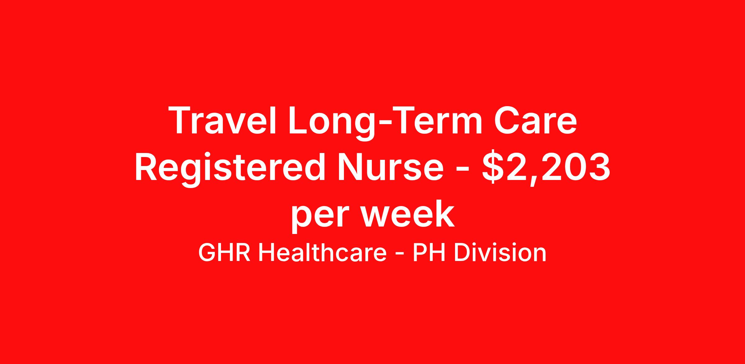 GHR Healthcare - PH Division is seeking a travel nurse RN Long Term Care (LTC) Long Term Care for a travel nursing job in Middlebury, Vermont. Job Description & Requirements Specialty: Long Term Care Discipline: RN Start Date: 03/26/2026 Duration: 4 weeks 36 hours per week Shift: 12 hours Employment Type: Travel Planet Healthcare Job ID 76046871. Pay package is based on 12 hour shifts and 36 hours per week (subject to confirmation) with tax-free stipend amount to be determined. About GHR Healthcare - PH Division For over 30 years, GHR Healthcare has been the bridge between healthcare professionals and the facilities that need them nationwide. We're committed to uncovering your ideal fit, supported by GHR's dedication to competitive compensation, transparent communication, and a devoted team that genuinely cares about your career journey. You can trust us to stand by your side as your advocate, confidante, and partner in advancing your career. At GHR, care and consideration are at the heart of everything we do. Visit ghrhealthcare.com to learn more.