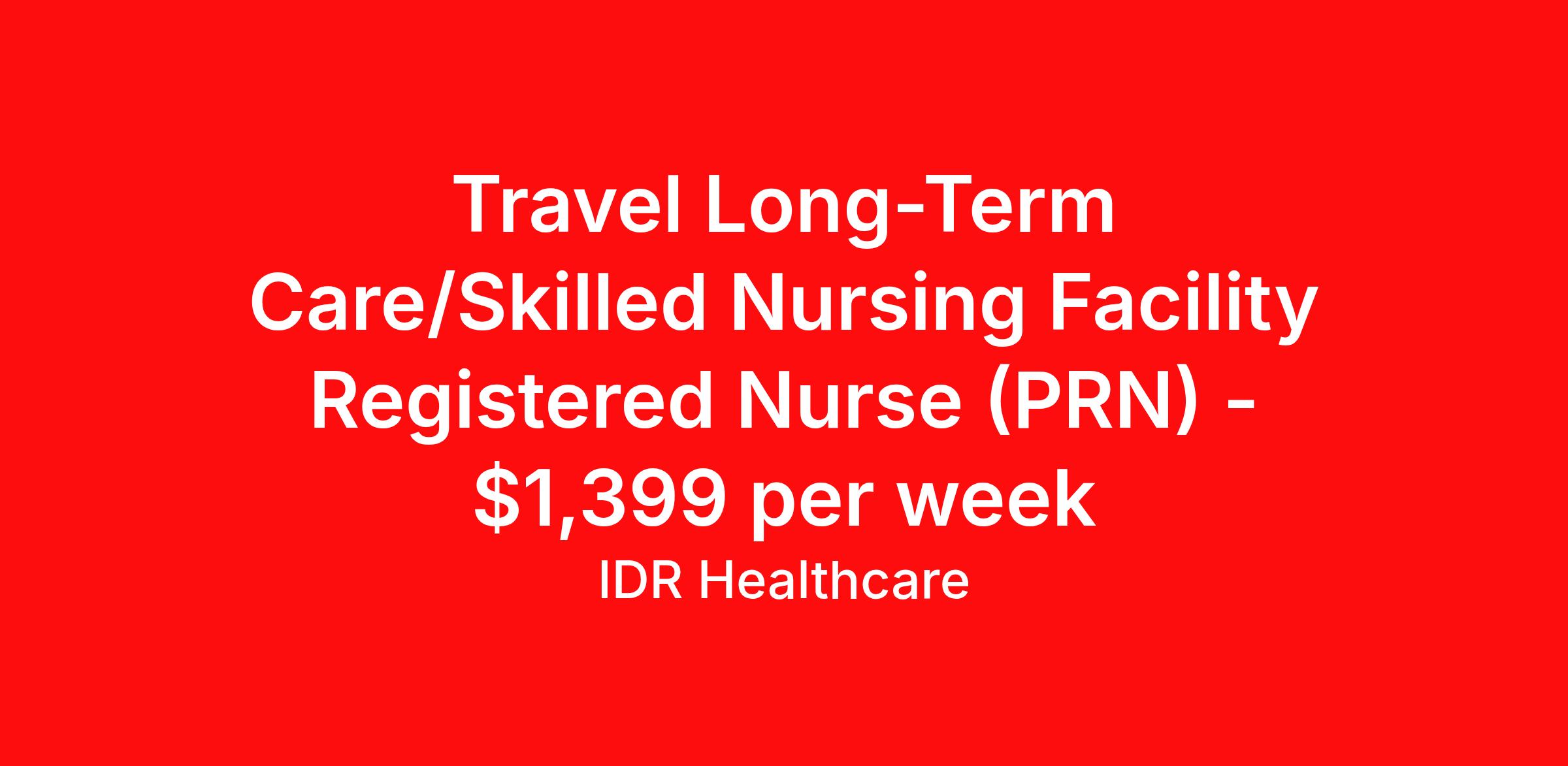 Travel Long-Term Care/Skilled Nursing Facility Registered Nurse (PRN) - $1,399 per week
