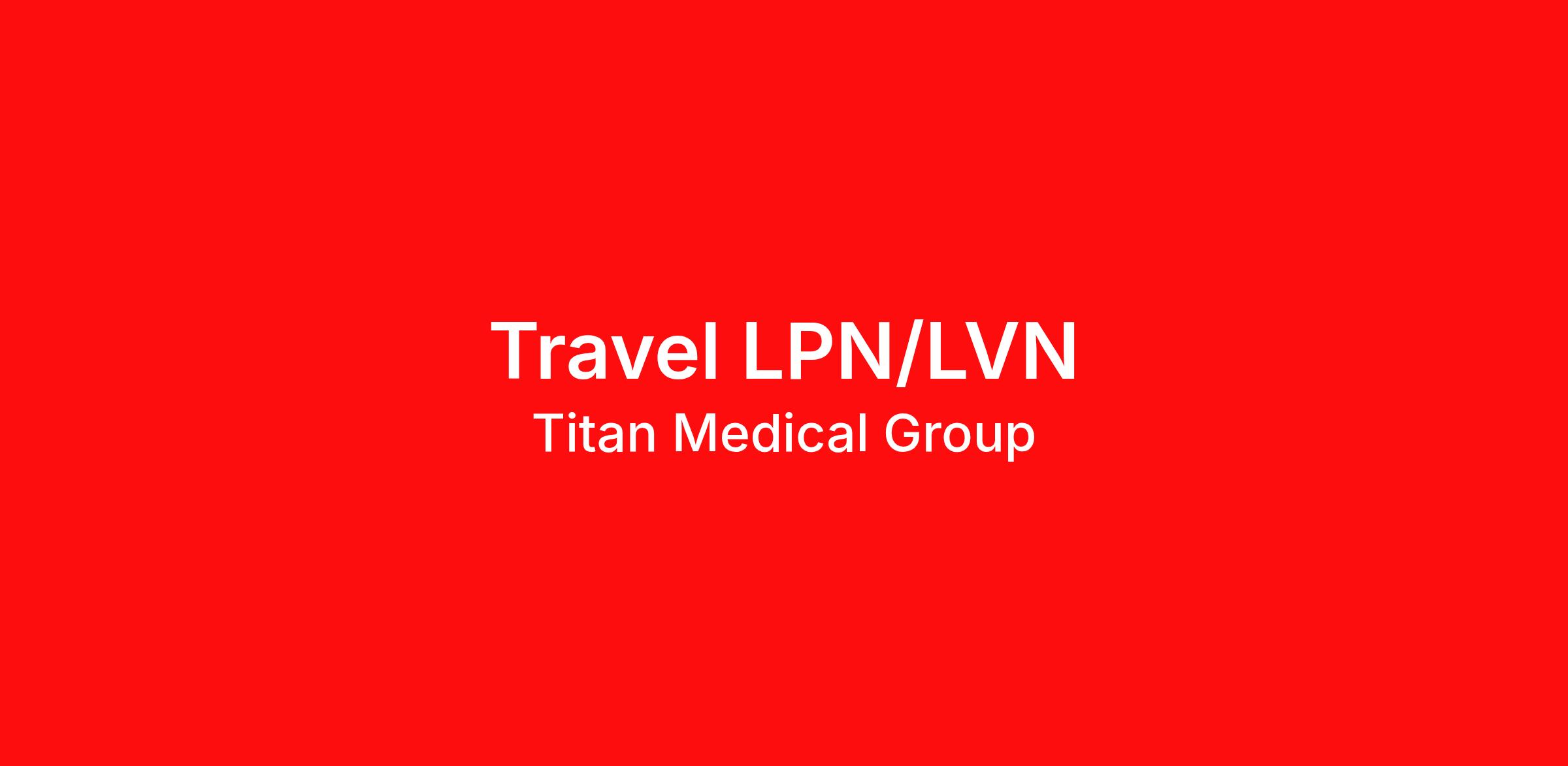 “WHEN YOU WORK FOR US, WE WORK FOR YOU.” Travel LPN/LVN Weekly Gross Pay: $1350.00 - $1550.00 Location: Lusk, WY, United States Start date: 4/15/2026 Assignment length: 13 Weeks Minimum years of relevant experience in healthcare: 2 years Job type: Traveler Shift: Night Certifications: BCLS/BLS Position Highlights 13-week travel contract Competitive weekly pay package Work with an experienced clinical and recruiting team Quick start options available (inquire for details) For more info please call 866-332-9600, Benefits Day-one medical, dental & vision insurance Loyalty bonus after 2,080 hours Life and short-term disability 401(k) with employer match Referral bonus up to $1,500 24/7 recruiter support Licensure and CEU reimbursement Experienced clinical team available to support you throughout your assignment Titan Medical App available on the Apple Store & Google Play Why Travel with Titan Medical Titan Medical provides access to thousands of travel nursing and allied health jobs nationwide. Your dedicated recruiter will help you: Build a strong traveler profile by improving your résumé and showcasing your skills Increase your chances of landing the assignment you want Travel with a top healthcare staffing company in the industry Ready to apply or want more information? Call (866) 332-9600 to connect with Titan Medical today!
