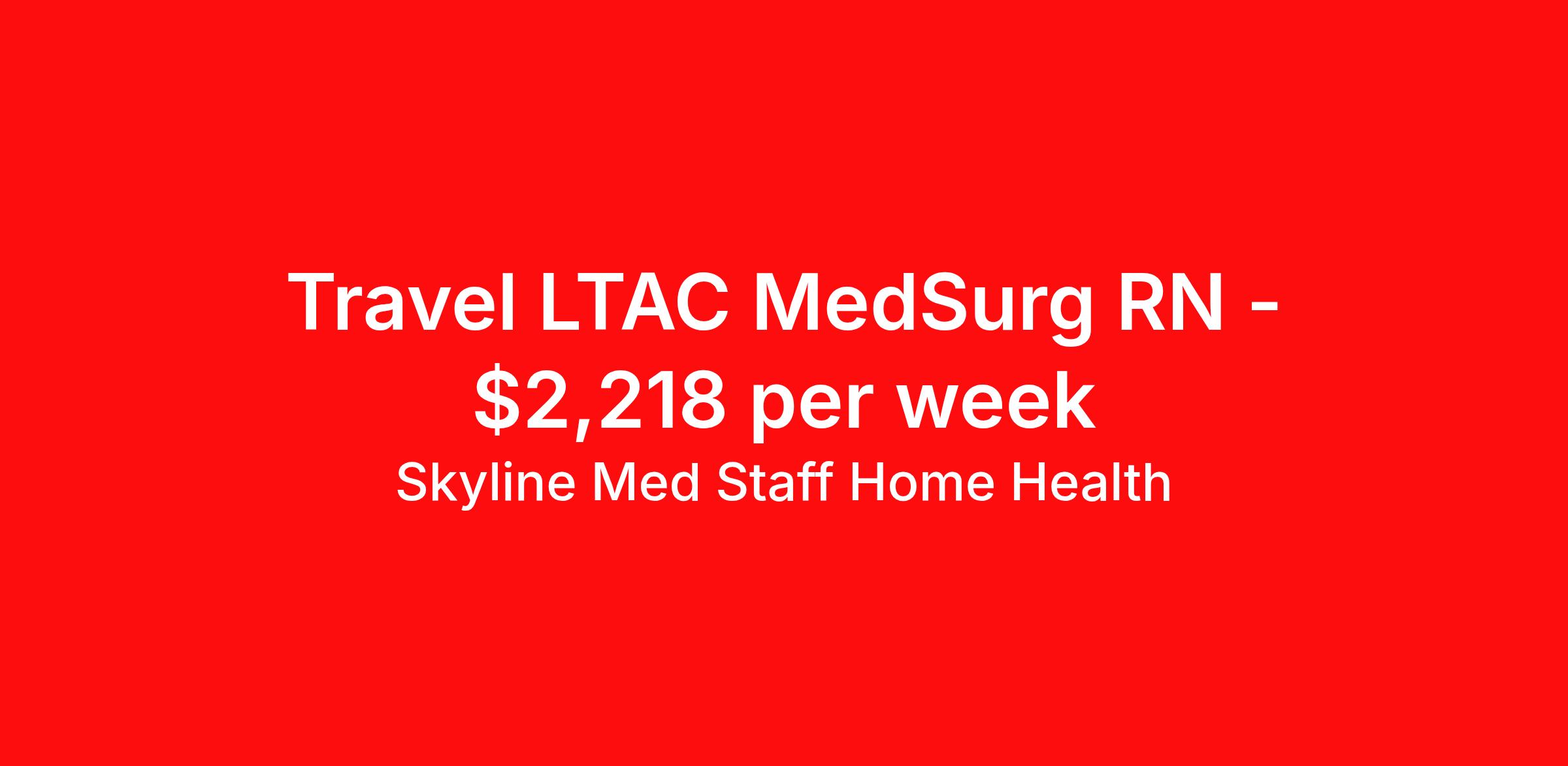 Skyline Med Staff Home Health is seeking a travel nurse RN Long Term Acute Care Med Surg for a travel nursing job in Peoria, Illinois. Job Description & Requirements Specialty: Long Term Acute Care Discipline: RN Start Date: ASAP Duration: 13 weeks 36 hours per week Shift: 12 hours, nights Employment Type: Travel Weekly amount stated in the job postings is estimated based on estimated hourly wages and potential stipends available for the location of the assignment. Pay package is calculated on bill rate at the time job was posted, but can change or vary without notice. Exact pay packages might vary as this is an estimate. Our recruiter would be happy to build an exact pay package for you for each job. Join the Best in Travel Nursing! Skyline Med Staff was honored as the 1 Best Travel Nursing Company in 2025 by BluePipes, a recognition driven by glowing reviews from travel healthcare professionals. Our recruiters are consistently praised on Google for their responsiveness, dedication, accessibility, and industry knowledge. Ready to experience the difference? Apply for a job today and see why travel nurses choose Skyline! As a traveler with Skyline Med Staff, you'll have a dedicated recruiter supporting you every step of the way and available whenever you need them. We are a Woman Owned Agency providing clinicians with Health Insurance through Blue Cross Blue Shield, along with Dental and Vision coverage, plus $500 referral bonuses! We’re seeking committed Nursing professionals who excel in delivering quality patient care and can adapt to diverse work environments. Required for Submission: 1. Minimum of 1 year recent work experience in the specialty of the job applying for 2. A current BLS/CPR certification through American Heart Association 3. Active License in the state of the job location We look forward to connecting and working with you to find your next job opportunity! Skyline Med Staff Home Health Job ID 36017975. Pay package is based on 12 hour shifts and 36.0 hours per week (subject to confirmation) with tax-free stipend amount to be determined. Posted job title: RN:LTAC,19:00:00-07:00:00 About Skyline Med Staff Home Health Join the Top- Rated Travel Healthcare Team! Skyline Med Staff was named as the 1 Best Travel Healthcare Company in 2025 by BluePipes, a recognition driven by glowing reviews from travel healthcare professionals. Our recruiters are consistently praised on Google for their responsiveness, dedication, accessibility, and industry knowledge. Ready to experience the difference? Apply for a job today and see why healthcare professionals choose Skyline! Certified Women Owned Business We believe that travel is good for the soul. We want to be on your journey with you and find the right job that fits you Skyline Med Staff is committed to one vision treating others the way that THEY want to be treated. The executive team at Skyline Med Staff focuses on a commitment to quality, consistency, and the highest level of service. Our team members continually strive to build long term relationships that center on you and helping you achieve your goals. Some of the Benefits you will receive with Skyline Med Staff: Over 30 years of combined experience in the staffing industry Higher Take-Home Pay Rates Dedicated Personal Recruiter We are available to you 24/7 Health Insurance Plan Options Tax Free Per Diems, Housing Stipends and Travel Reimbursements Joint Commission Certified Contracts in all 50 states Referral and Loyalty Bonuses Benefits Medical benefits Referral bonus