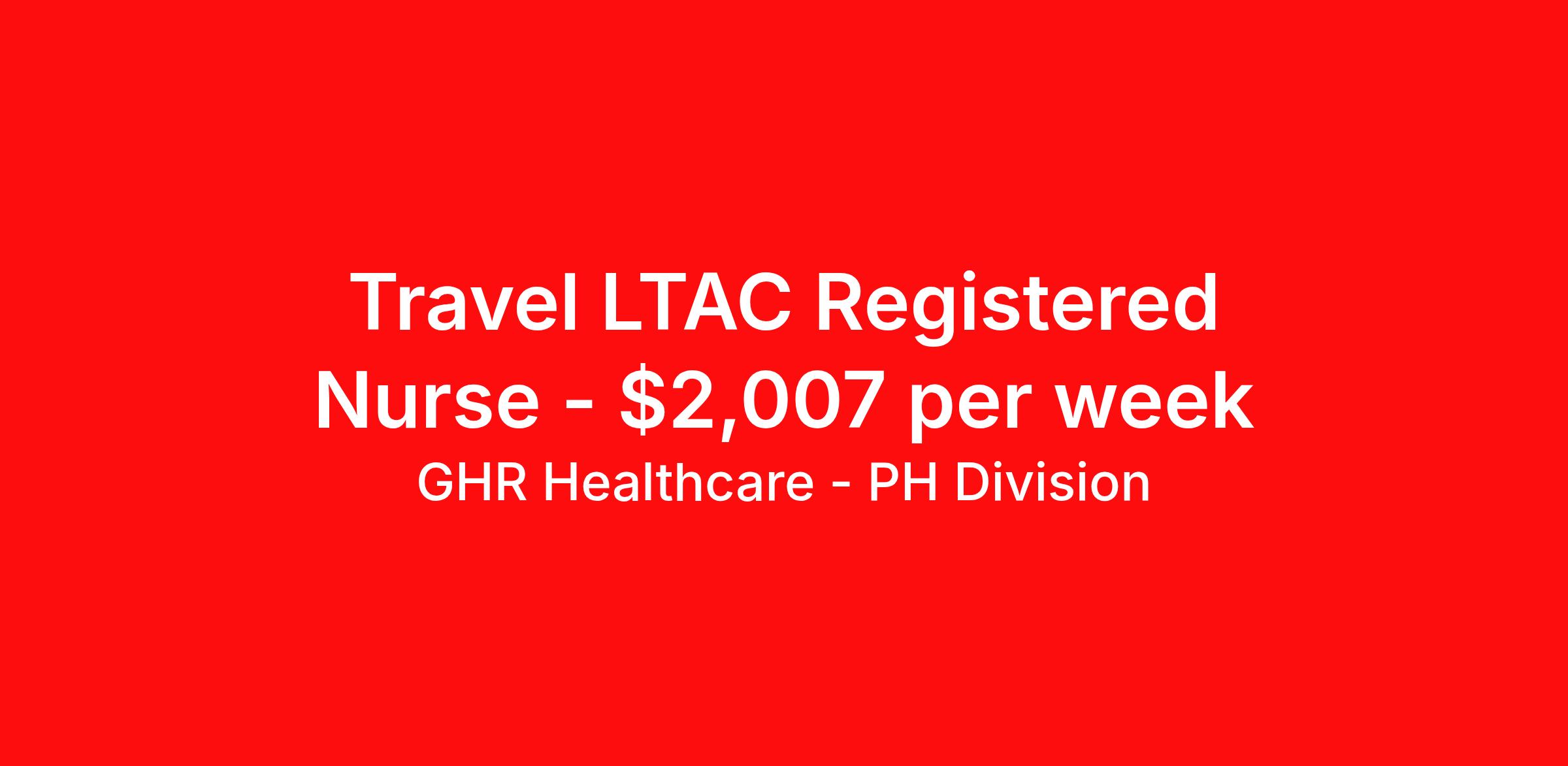 GHR Healthcare - PH Division is seeking a travel nurse RN Long Term Acute Care for a travel nursing job in York, Pennsylvania. Job Description & Requirements Specialty: Long Term Acute Care Discipline: RN Start Date: 04/06/2026 Duration: 13 weeks 36 hours per week Shift: 12 hours Employment Type: Travel Planet Healthcare Job ID 76119337. Pay package is based on 12 hour shifts and 36 hours per week (subject to confirmation) with tax-free stipend amount to be determined. About GHR Healthcare - PH Division For over 30 years, GHR Healthcare has been the bridge between healthcare professionals and the facilities that need them nationwide. We're committed to uncovering your ideal fit, supported by GHR's dedication to competitive compensation, transparent communication, and a devoted team that genuinely cares about your career journey. You can trust us to stand by your side as your advocate, confidante, and partner in advancing your career. At GHR, care and consideration are at the heart of everything we do. Visit ghrhealthcare.com to learn more.