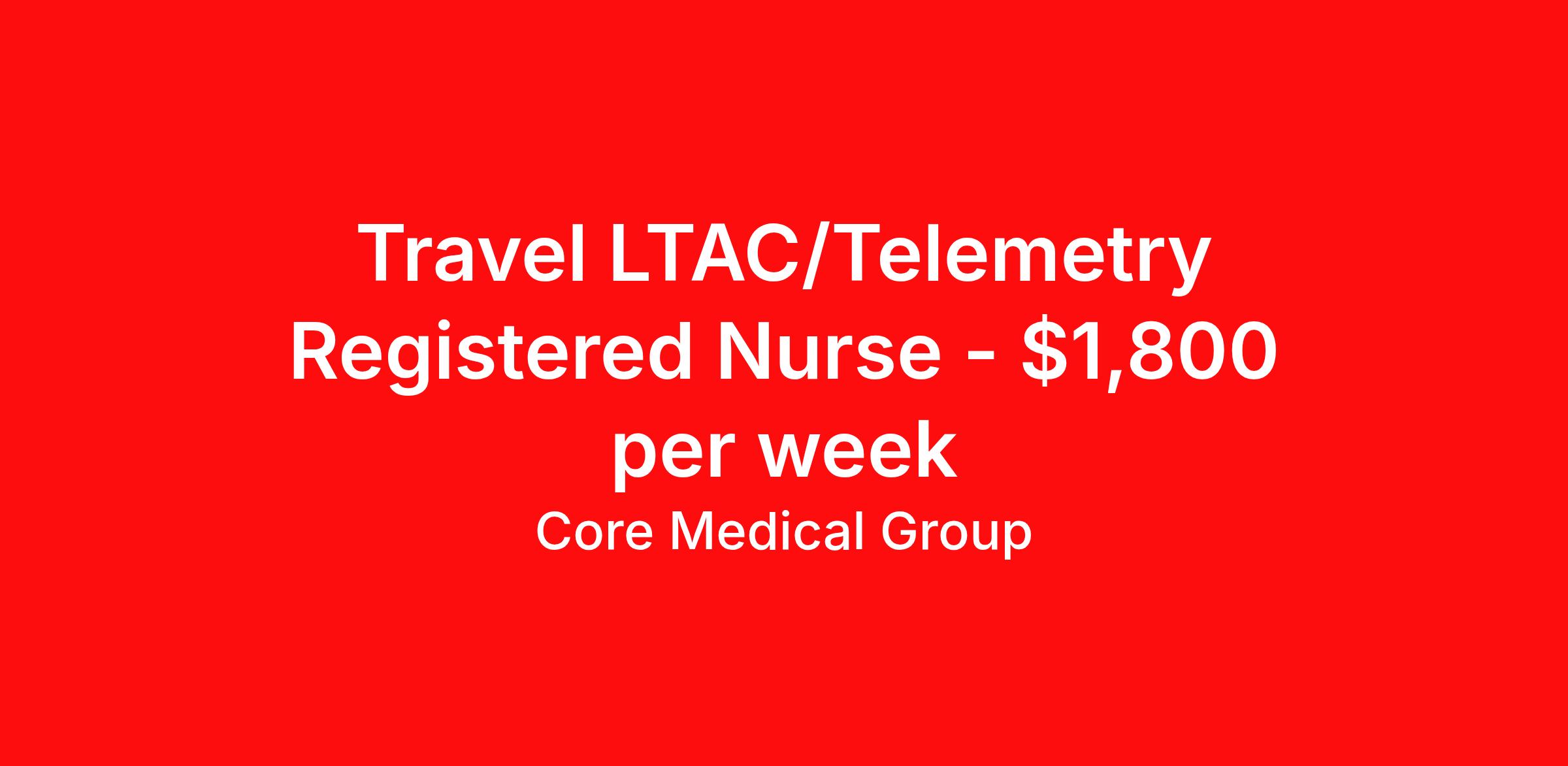 Core Medical Group is seeking a travel nurse RN Long Term Acute Care for a travel nursing job in Indianapolis, Indiana. Job Description & Requirements Specialty: Long Term Acute Care Discipline: RN Start Date: 04/13/2026 Duration: 13 weeks 36 hours per week Shift: 12 hours Employment Type: Travel Client in IN seeking Registered Nurse: LTAC / Long-Term Acute Care for the following shift(s): Nights We are looking for a healthcare professional who is ready to provide exceptional patient care in this contract/travel role. Contract/travel assignments are typically 13 weeks, with potential to extend. Help us continue our mission to connect people, improve lives, and give back to the community by joining the CoreMedical Group team. When you work with CoreMedical Group, we put you first and treat you like family, supporting you every step of the way. CoreMedical Group is one of the largest healthcare staffing agencies in the country, with travel and contract positions located across the United States. Our recruiters will help you find the perfect job, whether it's across the country or across the street. In addition to dedicated, personalized support from your recruiter, when you work with CoreMedical Group you'll receive: Access to an extensive benefits package, including day 1 health, dental, and vision insurance, employer paid life insurance, a health reimbursement account, and more! Weekly paychecks with competitive pay packages Matching 401(k) benefits to help you save for retirement Licensure assistance and reimbursement to set you up for success on your contract Travel reimbursement and dedicated housing support while on assignment Referral cash bonuses when you connect us with other clinicians CoreMedical Group also offers you a free, all-inclusive vacation each year as our way of saying "thank you" for your hard work. Join other healthcare professionals on the annual Club CoreMed retreat and you'll see why our contract and travel professionals come back to us year after year! Your career is too valuable to tackle on your own. Let CoreMedical Group help you with your healthcare journey! *Estimate of weekly payments is intended for informational purposes and includes hourly wages, as well as reimbursements for meal & incidental expenses, and housing expenses incurred on behalf of the Company. Any benefits (medical/dental/vision) are in addition to the weekly pay. Please speak with your Recruiter for additional details. Estimated payments are subject to change until formal offer of assignment is made and accepted. Core Medical Group Job ID 1365845. Pay package is based on 12 hour shifts and 36 hours per week (subject to confirmation) with tax-free stipend amount to be determined. Posted job title: RN About Core Medical Group CoreMedical Group is one of the largest healthcare staffing agencies in the country. We have jobs nationwide in travel nursing, travel allied health, interim, locum tenens, and permanent placements! Join the staffing agency with Club CoreMed, the best perk in the industry - an all inclusive paid trip to a tropical resort! Benefits Weekly pay Holiday Pay Guaranteed Hours Continuing Education 401k retirement plan Pet insurance Company provided housing options Sick pay Wellness and fitness programs Mileage reimbursement Referral bonus Employee assistance programs Medical benefits Dental benefits Vision benefits Benefits start day 1 License and certification reimbursement Life insurance Discount program