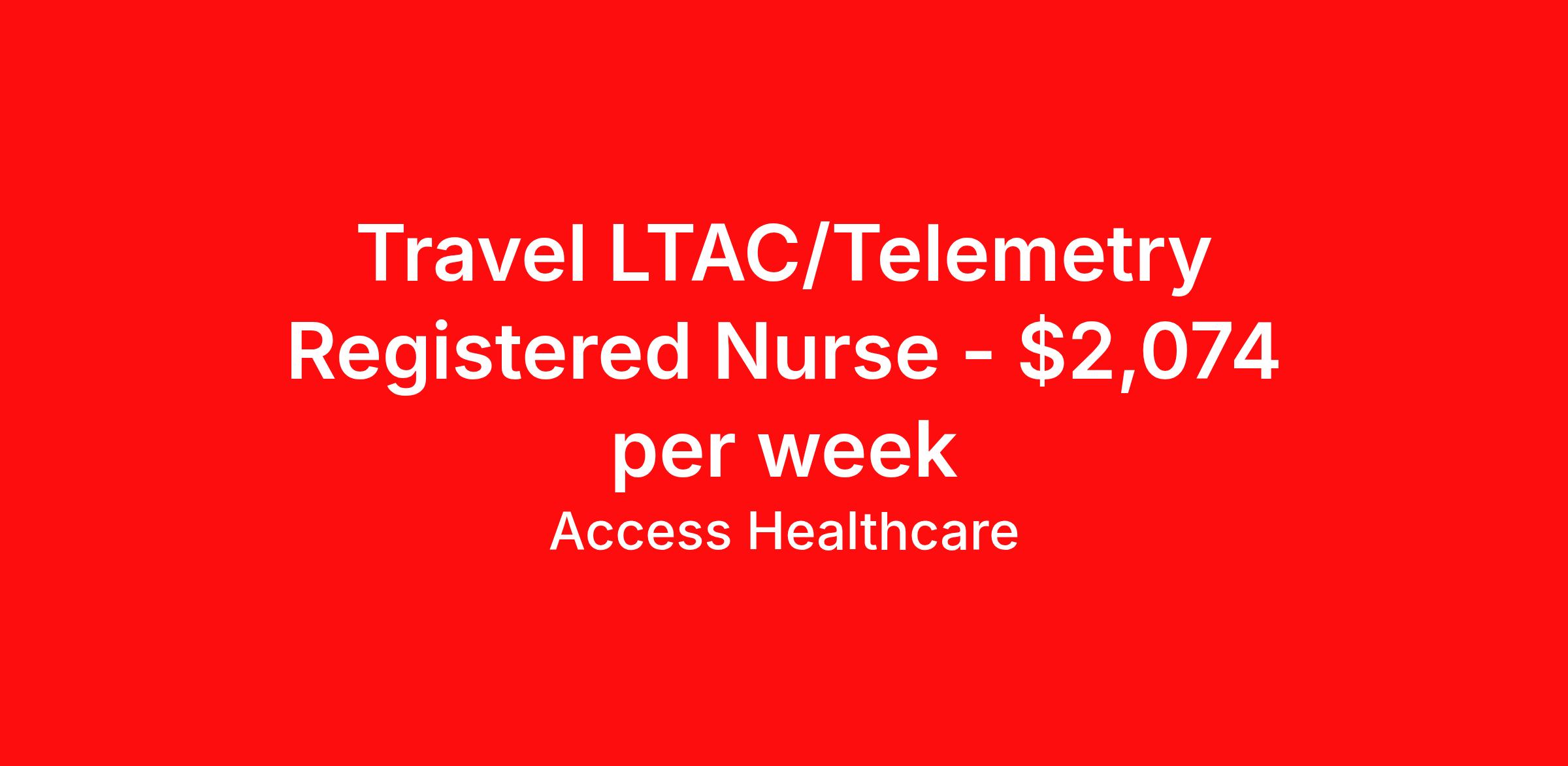 Access Healthcare is seeking a travel nurse RN Long Term Acute Care for a travel nursing job in Indianapolis, Indiana. Job Description & Requirements Specialty: Long Term Acute Care Discipline: RN Start Date: 04/13/2026 Duration: 13 weeks 36 hours per week Shift: 12 hours, days Employment Type: Travel Access Healthcare Job ID 76327460. Pay package is based on 12 hour shifts and 36 hours per week (subject to confirmation) with tax-free stipend amount to be determined. About Access Healthcare Access Healthcare aims to provide superior service to our nursing family by providing around the clock support, competitive pay packages and an unmatched benefits package! Unlike other agencies, we offer a true family feel and work with you to find the placement that is right for you. We offer one of the top leading pay packages in the industry and we are ready to get you the money you deserve! Access Healthcare was founded by two travel nurses, Danielle and Diego, who had a dream and a shared vision of creating an agency which all nurses would want to work with. Our passion has led us to where we are today as one of the top 10 agencies in our home state of New Jersey, with access to contracts in all 50 states! We encourage you to join our team and we cannot wait to get to know you!