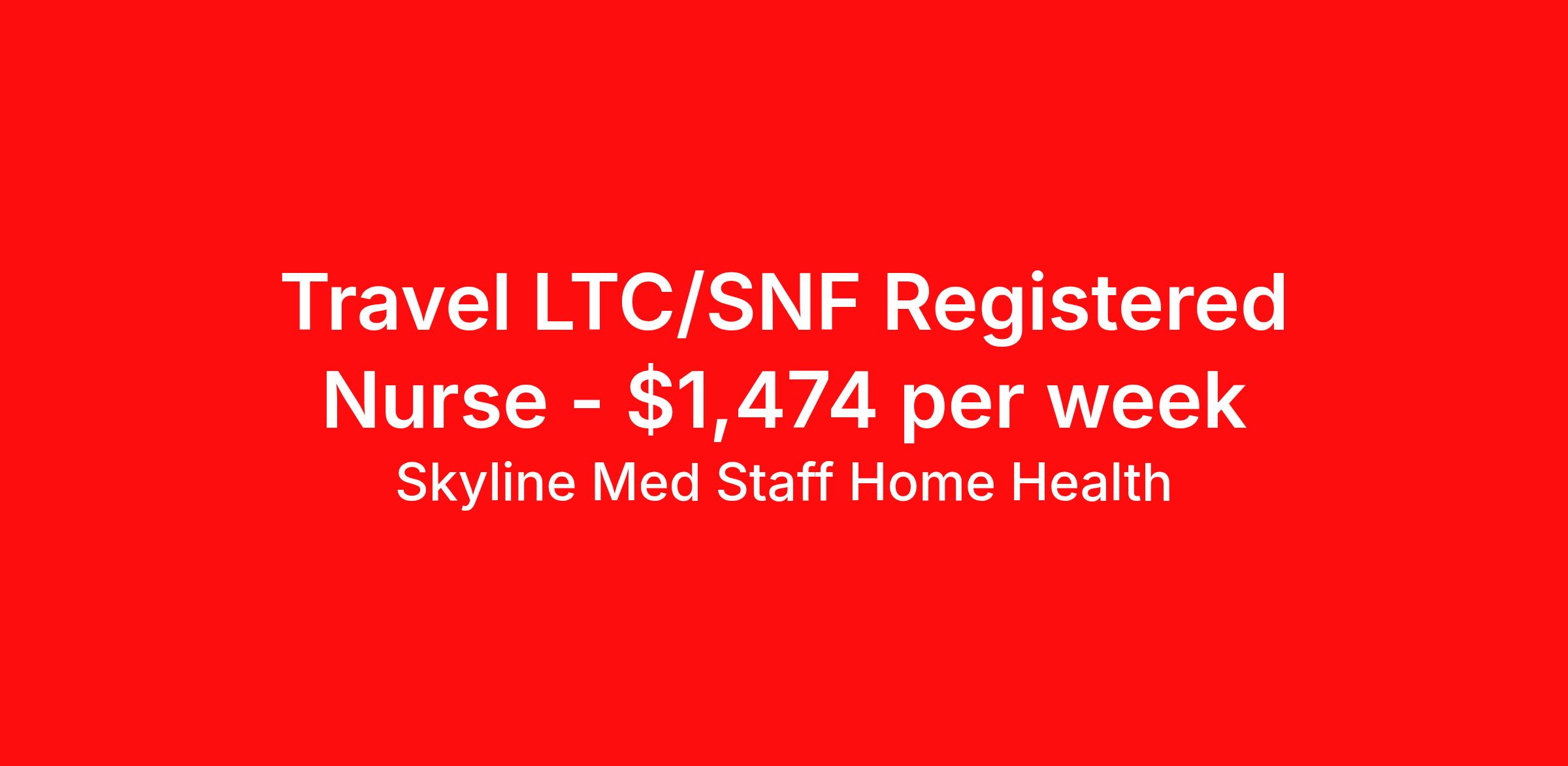 Skyline Med Staff Home Health is seeking a travel nurse RN Long Term Care (LTC) Long Term Care for a travel nursing job in Oakes, North Dakota. Job Description & Requirements Specialty: Long Term Care Discipline: RN Start Date: ASAP Duration: 14 weeks 36 hours per week Shift: 12 hours, evenings, rotating Employment Type: Travel Weekly amount stated in the job postings is estimated based on estimated hourly wages and potential stipends available for the location of the assignment. Pay package is calculated on bill rate at the time job was posted, but can change or vary without notice. Exact pay packages might vary as this is an estimate. Our recruiter would be happy to build an exact pay package for you for each job. Join the Best in Travel Nursing! Skyline Med Staff was honored as the 1 Best Travel Nursing Company in 2025 by BluePipes, a recognition driven by glowing reviews from travel healthcare professionals. Our recruiters are consistently praised on Google for their responsiveness, dedication, accessibility, and industry knowledge. Ready to experience the difference? Apply for a job today and see why travel nurses choose Skyline! As a traveler with Skyline Med Staff, you'll have a dedicated recruiter supporting you every step of the way and available whenever you need them. We are a Woman Owned Agency providing clinicians with Health Insurance through Blue Cross Blue Shield, along with Dental and Vision coverage, plus $500 referral bonuses! We’re seeking committed Nursing professionals who excel in delivering quality patient care and can adapt to diverse work environments. Required for Submission: 1. Minimum of 1 year recent work experience in the specialty of the job applying for 2. A current BLS/CPR certification through American Heart Association 3. Active License in the state of the job location We look forward to connecting and working with you to find your next job opportunity! Skyline Med Staff Home Health Job ID 35936316. Pay package is based on 12 hour shifts and 36.0 hours per week (subject to confirmation) with tax-free stipend amount to be determined. Posted job title: RN:LTC,12:00:00-12:00:00 About Skyline Med Staff Home Health Join the Top- Rated Travel Healthcare Team! Skyline Med Staff was named as the 1 Best Travel Healthcare Company in 2025 by BluePipes, a recognition driven by glowing reviews from travel healthcare professionals. Our recruiters are consistently praised on Google for their responsiveness, dedication, accessibility, and industry knowledge. Ready to experience the difference? Apply for a job today and see why healthcare professionals choose Skyline! Certified Women Owned Business We believe that travel is good for the soul. We want to be on your journey with you and find the right job that fits you Skyline Med Staff is committed to one vision treating others the way that THEY want to be treated. The executive team at Skyline Med Staff focuses on a commitment to quality, consistency, and the highest level of service. Our team members continually strive to build long term relationships that center on you and helping you achieve your goals. Some of the Benefits you will receive with Skyline Med Staff: Over 30 years of combined experience in the staffing industry Higher Take-Home Pay Rates Dedicated Personal Recruiter We are available to you 24/7 Health Insurance Plan Options Tax Free Per Diems, Housing Stipends and Travel Reimbursements Joint Commission Certified Contracts in all 50 states Referral and Loyalty Bonuses Benefits Medical benefits Referral bonus