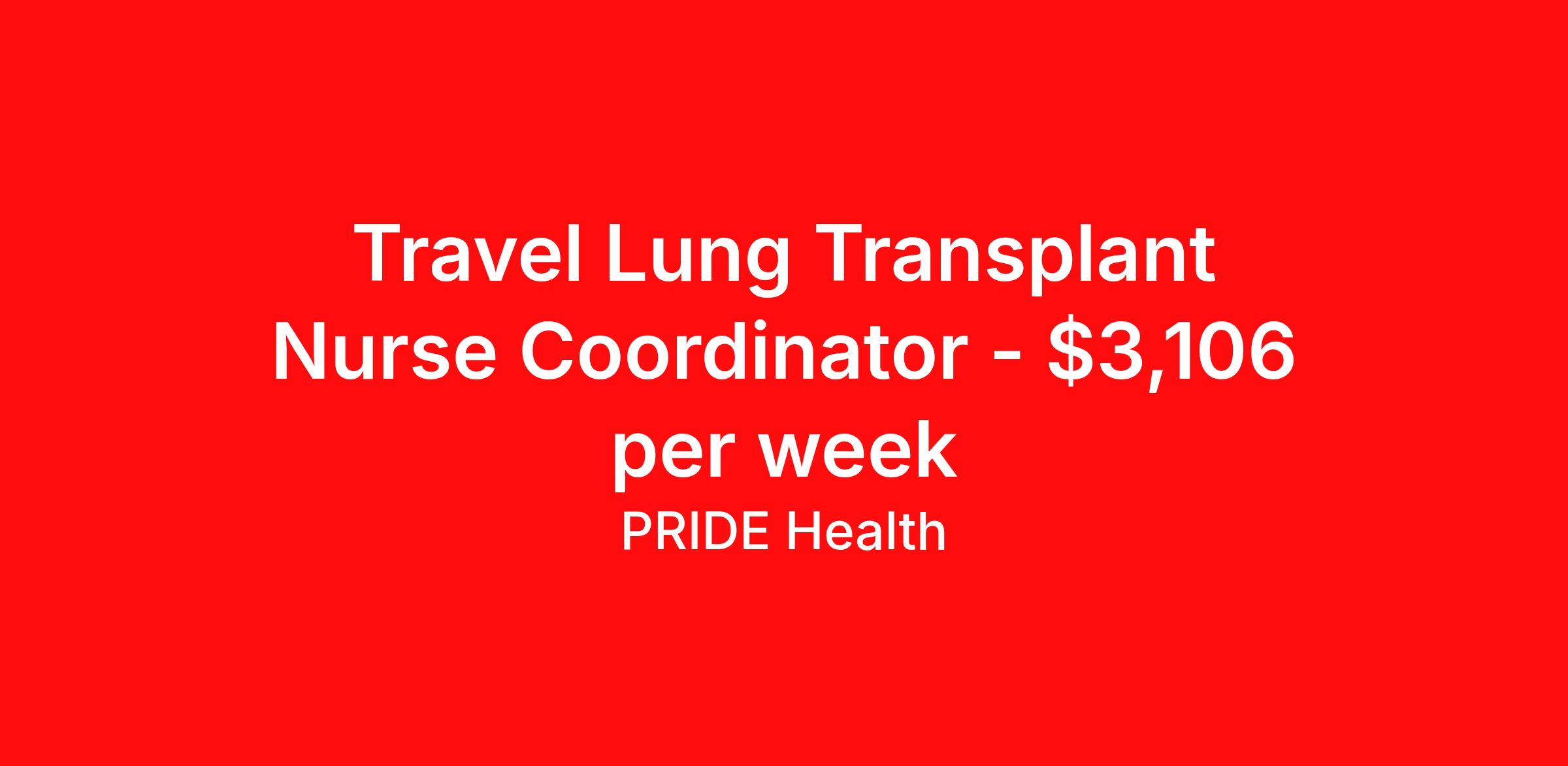 Travel Lung Transplant Nurse Coordinator - $3,106 per week