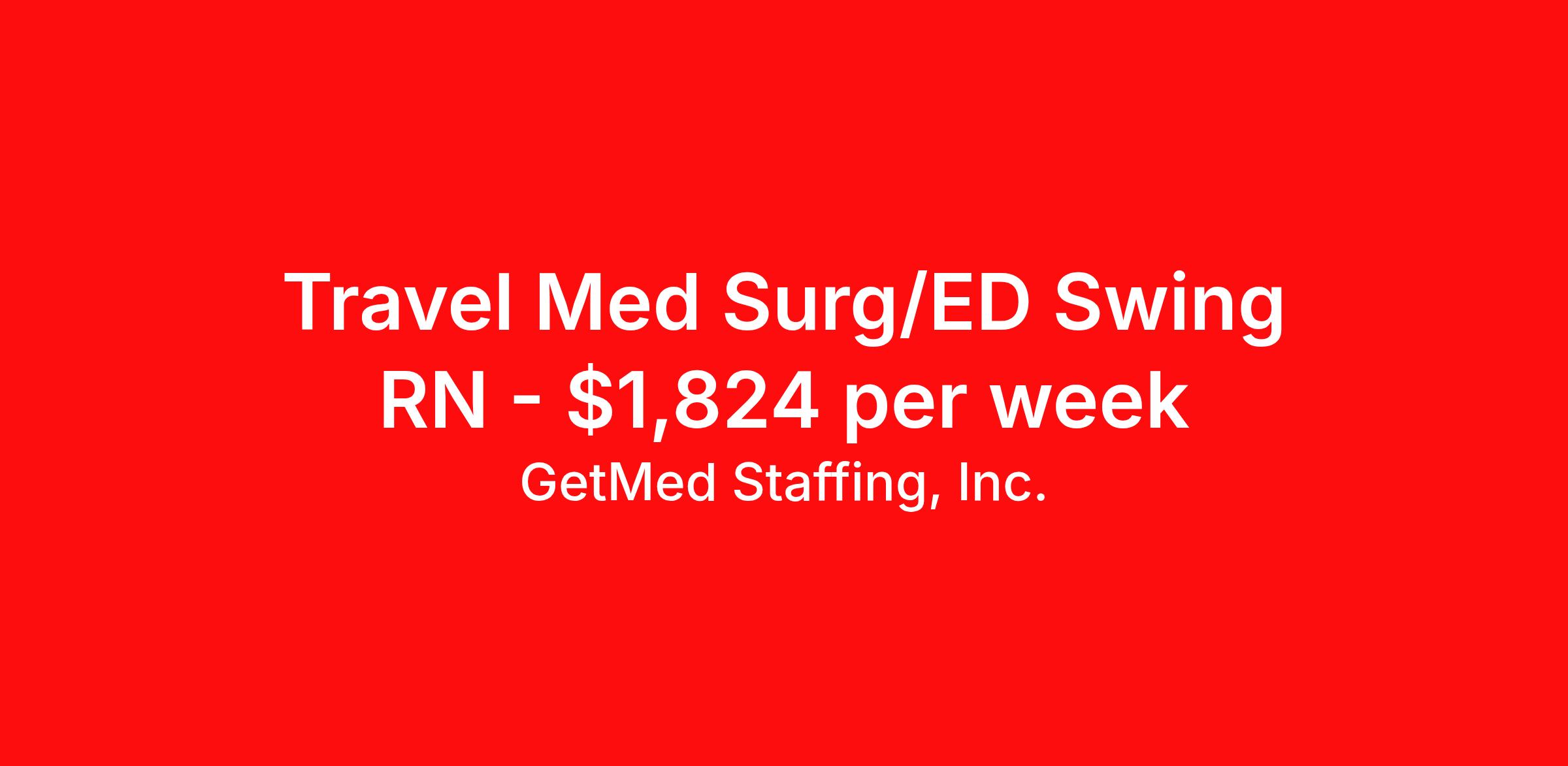GetMed Staffing, Inc. is seeking a travel nurse RN Med Surg for a travel nursing job in Turtle Lake, North Dakota. Job Description & Requirements Specialty: Med Surg Discipline: RN Start Date: 03/30/2026 Duration: 13 weeks 36 hours per week Shift: 12 hours, nights Employment Type: Travel GetMed Staffing is searching for a strong MedSurg RN to assist our traveler-friendly client. A minimum of 1-2 years of experience is required. Traveling with GetMed Staffing offers the unique opportunity to gain diverse experiences, both personally and professionally. Gain experience that matters. GetMed Staffing, Inc. Job ID 35947975. Pay package is based on 12 hour shifts and 36.0 hours per week (subject to confirmation) with tax-free stipend amount to be determined. Posted job title: RN:MedSurg,19:00:00-07:00:00 About GetMed Staffing, Inc. We are a diversity owned company, specializing in healthcare recruiting services. We truly understand how important a healthcare travelers' relationship is with their recruiter, as well as our relationship is with our healthcare facilities. We recognize that the needs of our healthcare travelers can vary, and therefore we provide the personalized touch necessary to ensure a successful travel assignment each and every time. Our healthcare facilities and clients benefit from us putting our healthcare travelers first. GetMed Staffing is excited to be a leader within the industry by focusing on providing healthcare travelers with more choices and possibilities as they plan for their next healthcare travel assignment. Benefits Life insurance Medical benefits Dental benefits Vision benefits 401k retirement plan