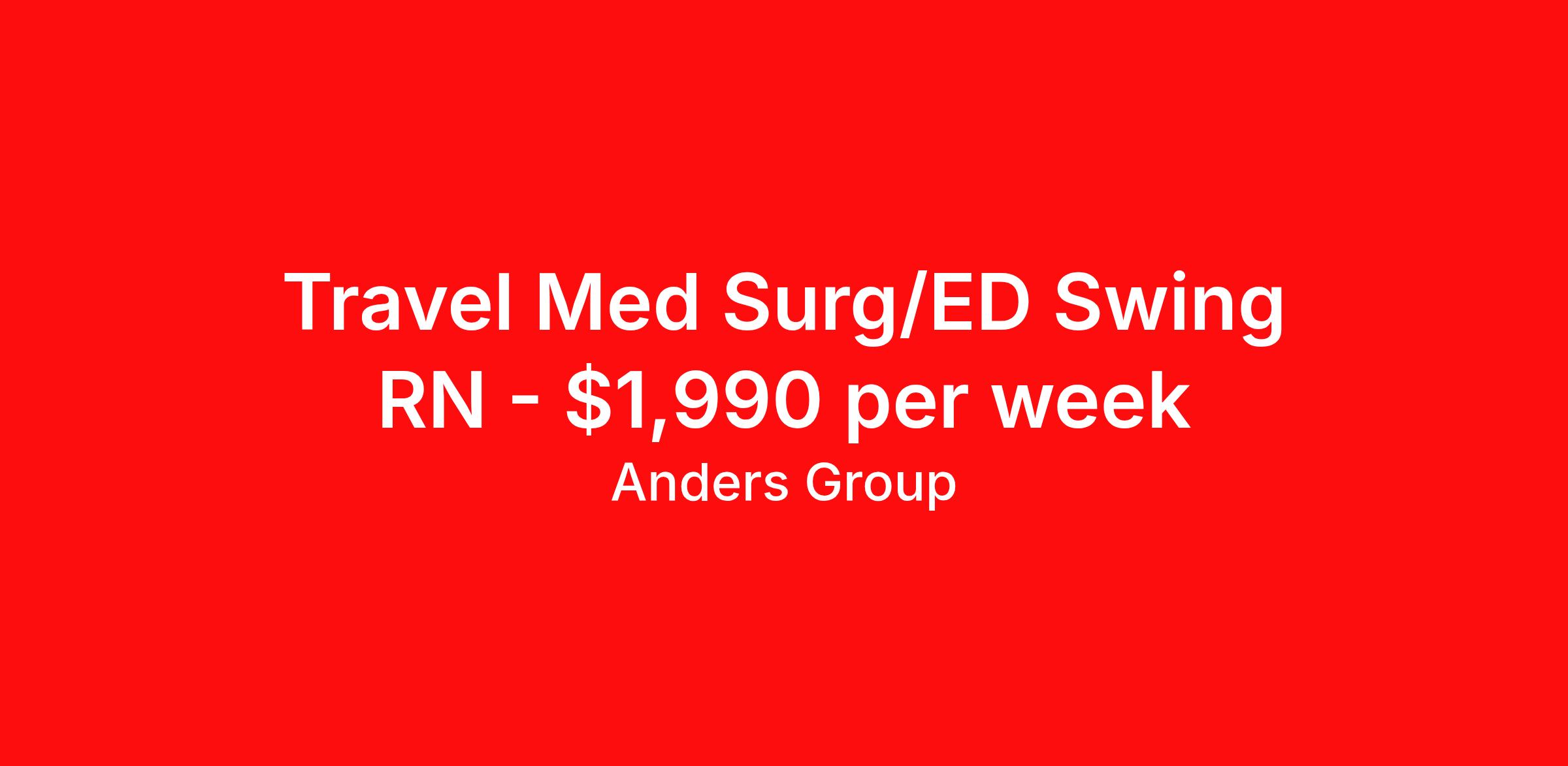 Anders Group is seeking a travel nurse RN Med Surg for a travel nursing job in Turtle Lake, North Dakota. Job Description & Requirements Specialty: Med Surg Discipline: RN Start Date: 03/30/2026 Duration: 13 weeks 36 hours per week Shift: 12 hours, nights Employment Type: Travel Anders Group Job ID 995775. Pay package is based on 12 hour shifts and 36 hours per week (subject to confirmation) with tax-free stipend amount to be determined. Posted job title: RN (Registered Nurse) About Anders Group WHY ANDERS? Anders Group is a Joint Commission accredited staffing agency and stands out from other agencies by our commitment to making sure our travelers are given the best customer service. Our team works hard to find the best jobs with the most aggressive rates! Anders Group offers rewarding assignments and competitive compensation packages, nationwide! We offer the following benefits from day one: Health Insurance, Including a Buy-up Option Dental Insurance Vision Insurance Life Insurance 401(k) Licensure Reimbursement Premium Pay Packages CEU Reimbursements Daily Per Diems Travel Reimbursements Rental Car Allowances Continuing Education Resources Referral Bonus And Many More! THE ANDERS DIFFERENCE You're committed to providing exceptional healthcare. We're committed to you. Anders Group was founded by a team of healthcare recruiters who had built strong relationships with healthcare facilities and professionals nationwide. As staffing firms shifted their focus to numbers and margins, these recruiters saw a need for a company to take a different approach to staffing. Anders Group was founded in 2010 to do just that. We focus on individual and facility goals to make quality placements. Great people working with great facilities make for the best placements. Through our focus on providing the best experience to Allied and Nursing health care professionals, Anders Group has grown to be a top staffing firm in Healthcare. We look forward to working with you! Benefits Medical benefits Dental benefits Vision benefits Life insurance 401k retirement plan License and certification reimbursement Continuing Education Referral bonus