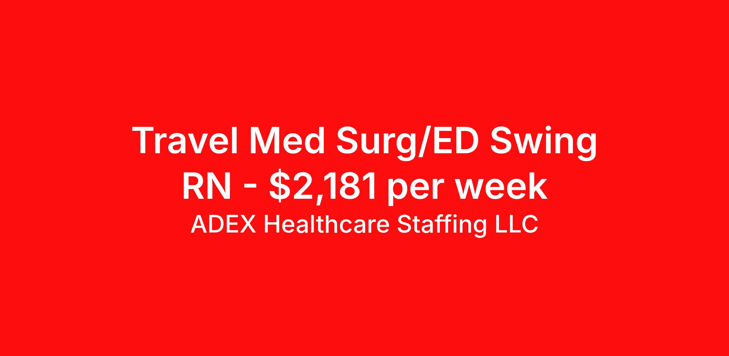 ADEX Healthcare Staffing LLC is seeking a travel nurse RN Med Surg for a travel nursing job in Turtle Lake, North Dakota. Job Description & Requirements Specialty: Med Surg Discipline: RN Start Date: 03/30/2026 Duration: 13 weeks 36 hours per week Shift: 12 hours, nights Employment Type: Travel RN Position Job Notes: Travel or Local Registered Nurse needed for ASAP start. A minimum of 2 years of recent hospital bedside experience is required. Candidates must be able to start within 5 weeks. Opportunity for extension upon successful completion of the initial assignment. $750 referral bonus available. Opportunity: RN - Med Surg Job Details: • Work 12-hour night shifts with every other weekend requirement • Team assignment model rather than individual patient assignments • 25-bed critical access hospital in rural location serving mostly geriatric population • 2 years of nursing experience required • ER experience preferred with understanding of dementia, stroke, skin care, and geriatric patient care • Required certifications: BLS (AHA) and ACLS (AHA) • Preferred certifications: PALS and TNCC • Work with EPIC electronic medical record system • May be floated to ER based on experience (first to float) • 3 shifts of department-specific orientation provided • Self-scheduling and block scheduling available • Holiday requirement on alternating schedule • No call or standby requirements • Scrubs required with no specific color requirement • Common patient types include general rehab post-surgery and geriatric population • Charge nurse present on each shift who also takes team assignment • Nurse aides/CNAs available on each shift • Telemonitor capacity available but no requirement to read strips • Patient-managed CPAP equipment only, no ventilator management required Facility: This critical access hospital serves as an essential healthcare resource for the rural community, providing acute care services with a focus on geriatric and post-surgical rehabilitation patients. The facility maintains a 25-bed capacity and emphasizes team-based nursing care with comprehensive support staff including charge nurses and certified nursing assistants on every shift. The hospital utilizes modern technology including EPIC electronic health records and telemonitoring capabilities while maintaining a patient-centered approach to care. Location: Turtle Lake, ND Turtle Lake offers a peaceful rural setting in North Dakota with a close-knit community atmosphere and outdoor recreational opportunities. The area provides an excellent opportunity for healthcare professionals seeking a quieter lifestyle while making a meaningful impact in a community-focused healthcare environment. Adex Job ID 1060877. Pay package is based on 12 hour shifts and 36 hours per week (subject to confirmation) with tax-free stipend amount to be determined. About ADEX Healthcare Staffing LLC ADEX has been placing healthcare professionals across the US since 2004. Originally founded in Atlanta, GA, the company's headquarters are now located in Tampa, FL. JCAHO certified since 2009. Benefits Referral bonus